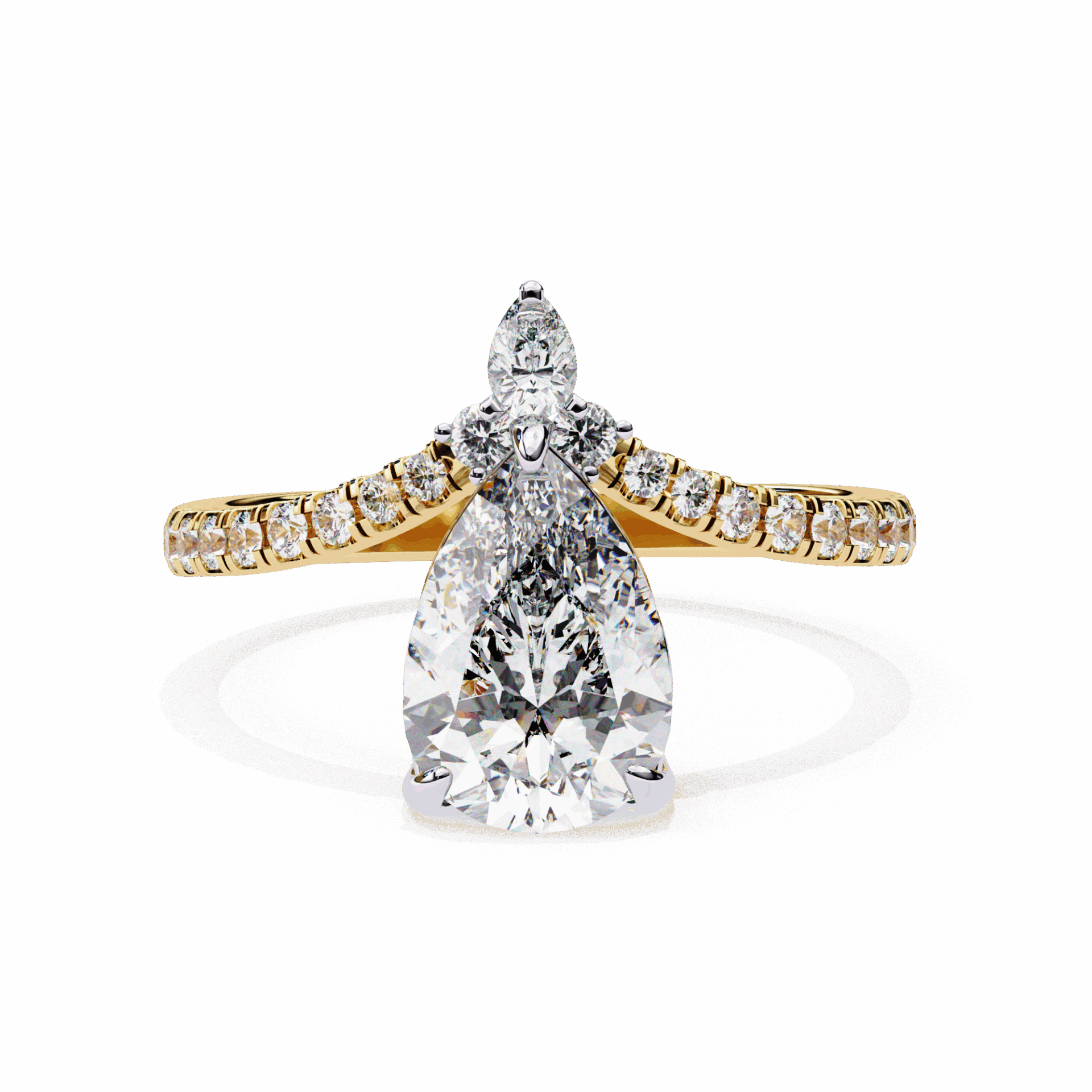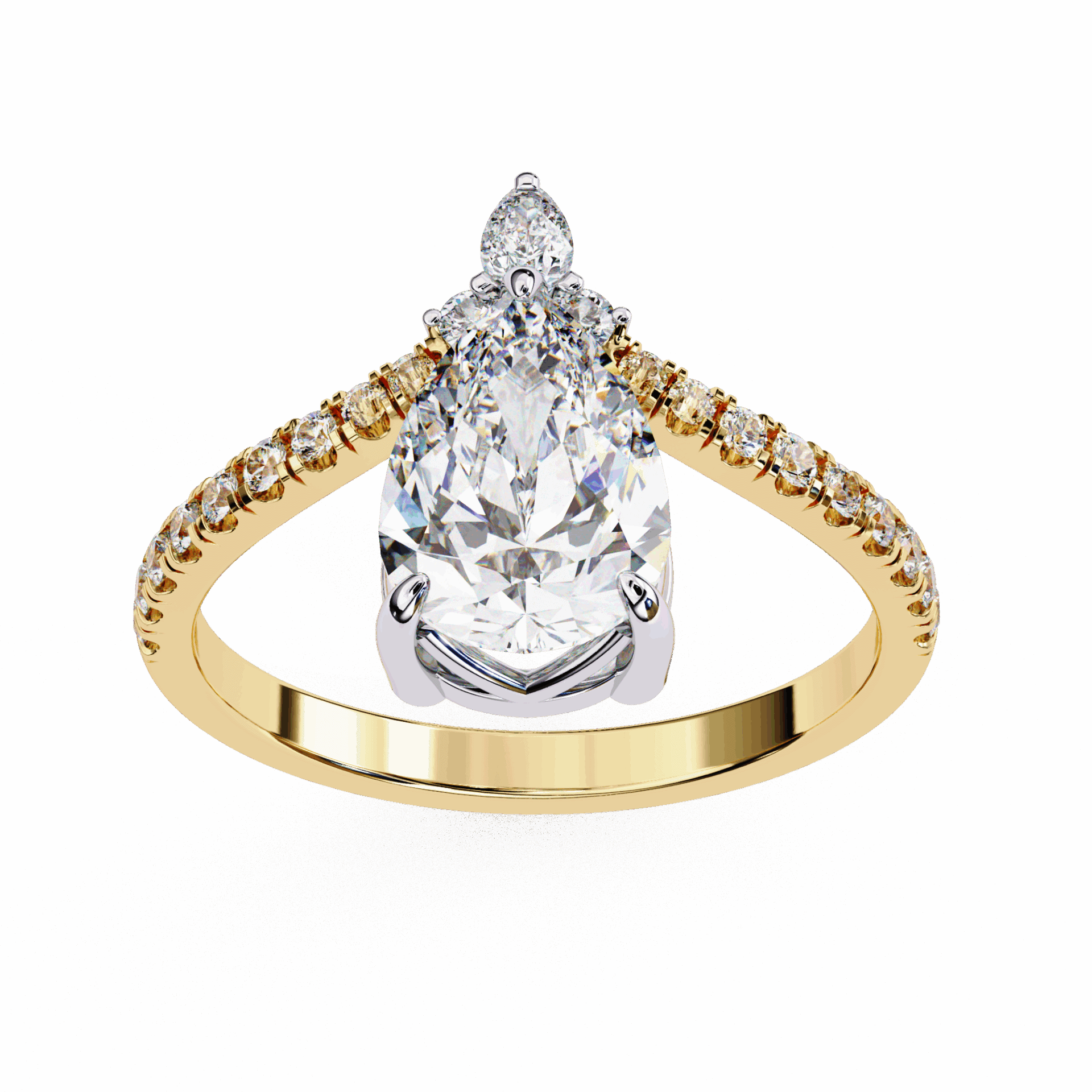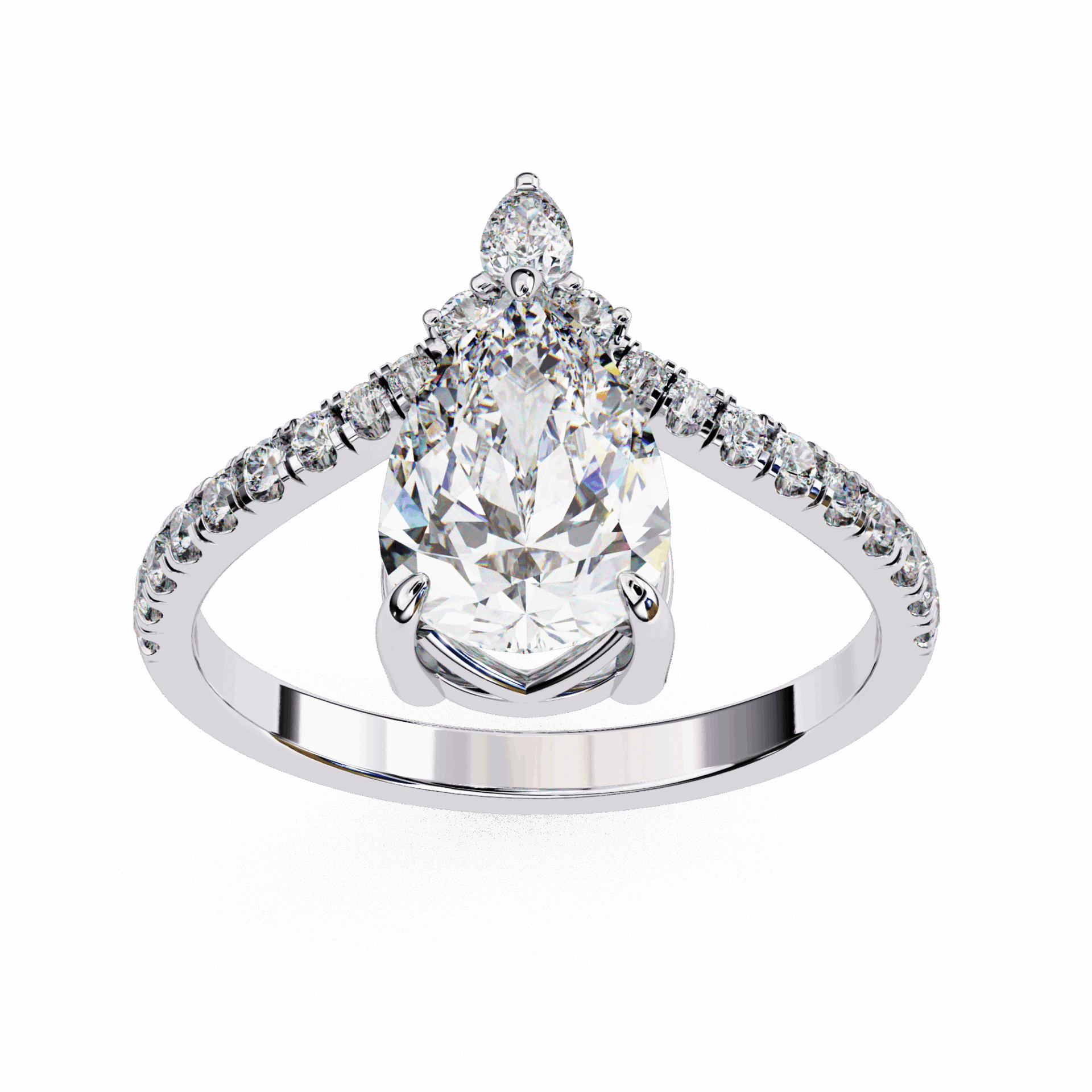 A pear-cut lab-grown diamond with 22 accent diamonds totaling 1.73 carats in a modern bezel setting. The bezel frames the teardrop with clean lines.