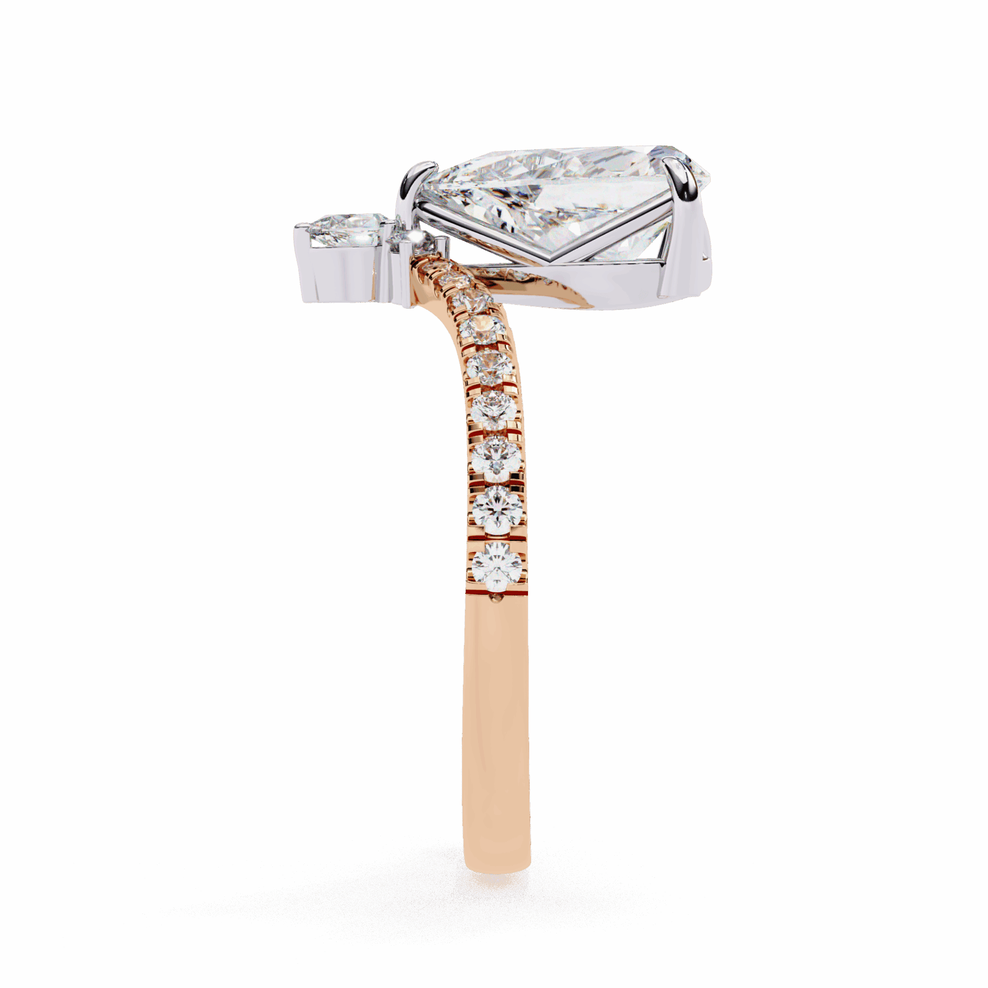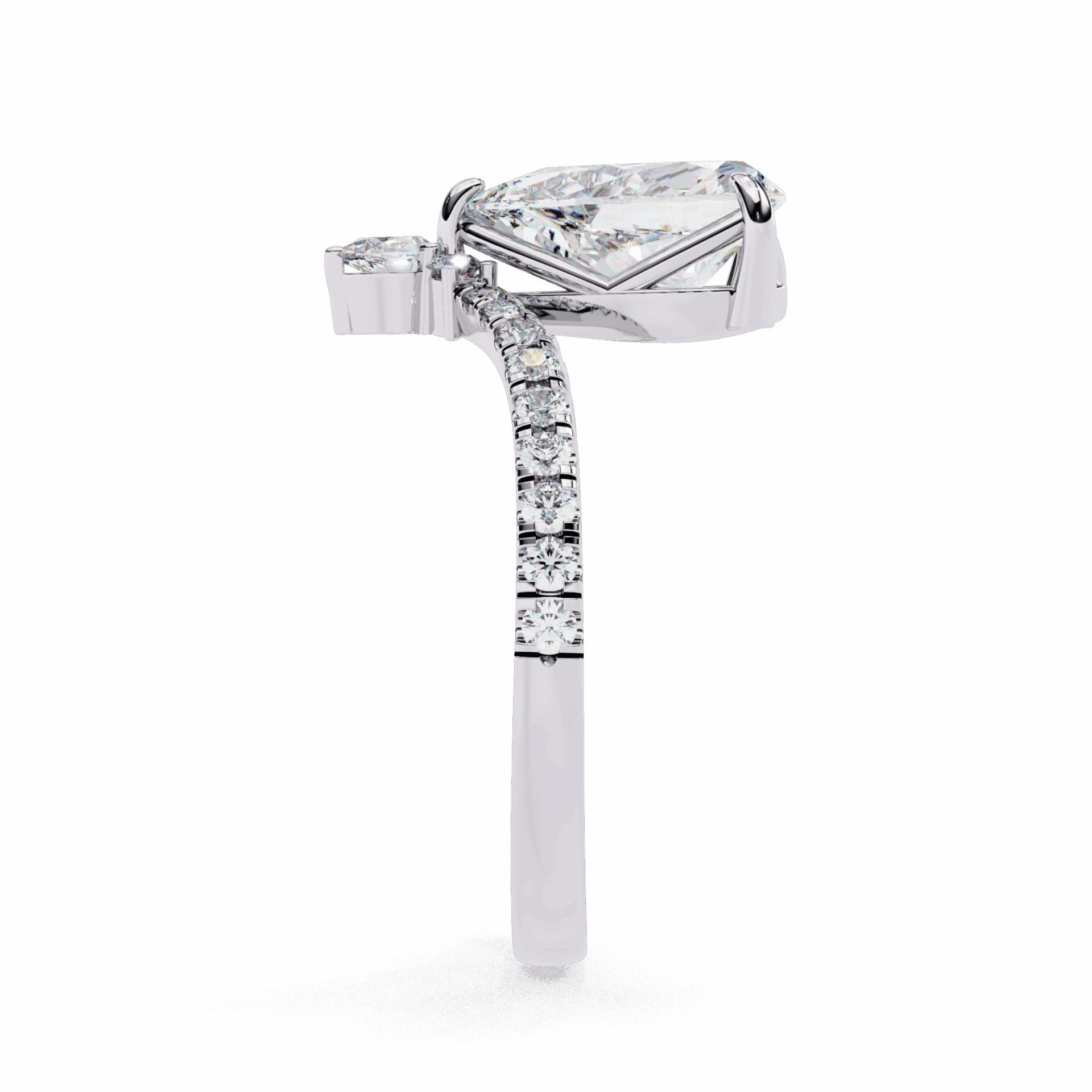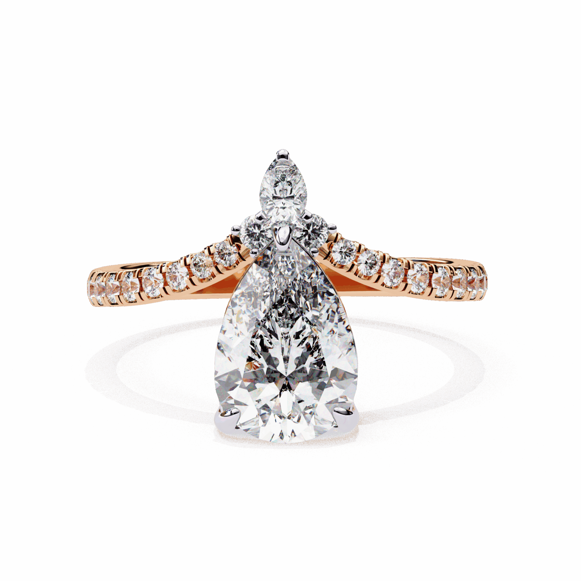 A pear-cut lab-grown diamond with 22 accent diamonds totaling 1.73 carats in a modern bezel setting. The bezel frames the teardrop with clean lines.