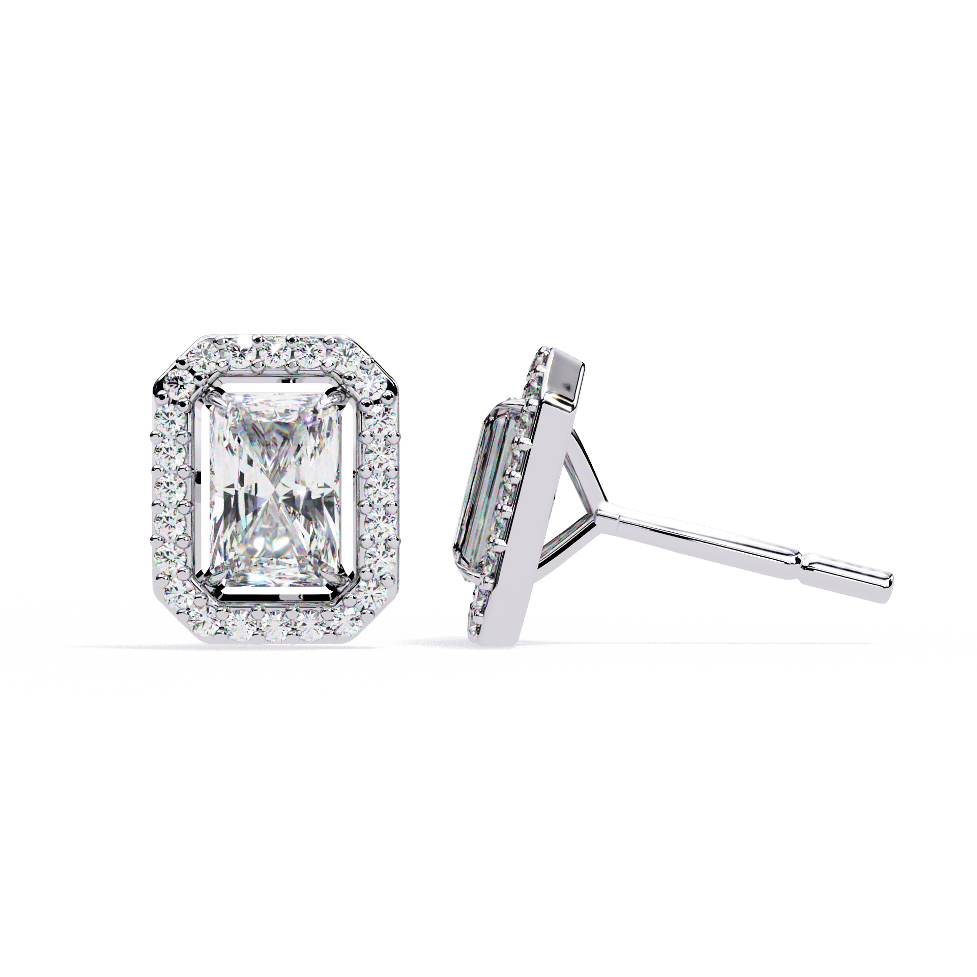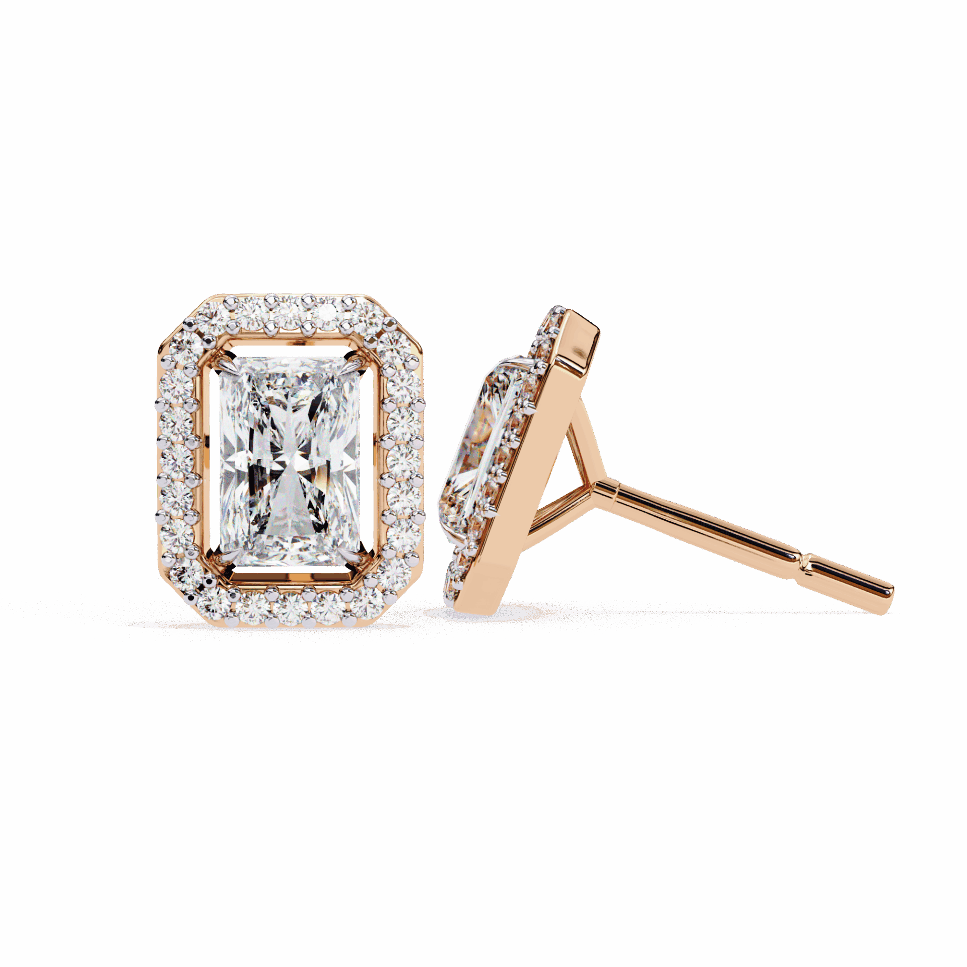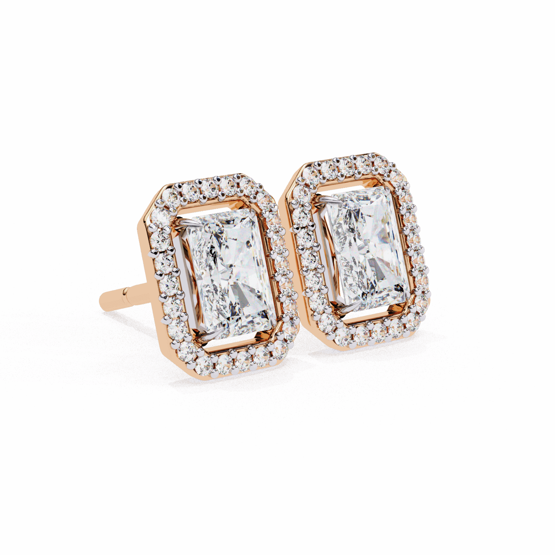 1 Carat Classic Radiant and Round Diamond Stud Earrings