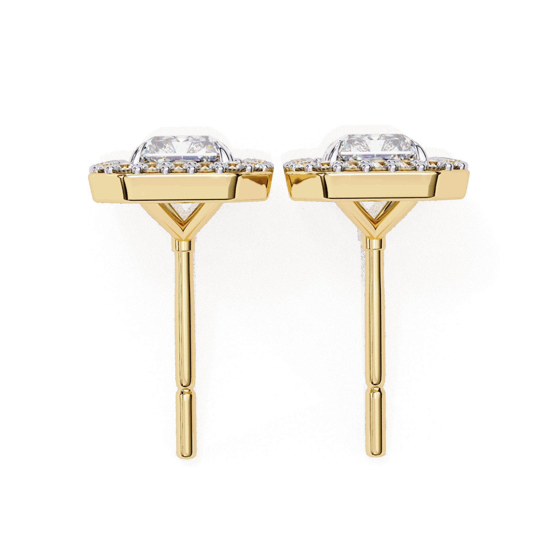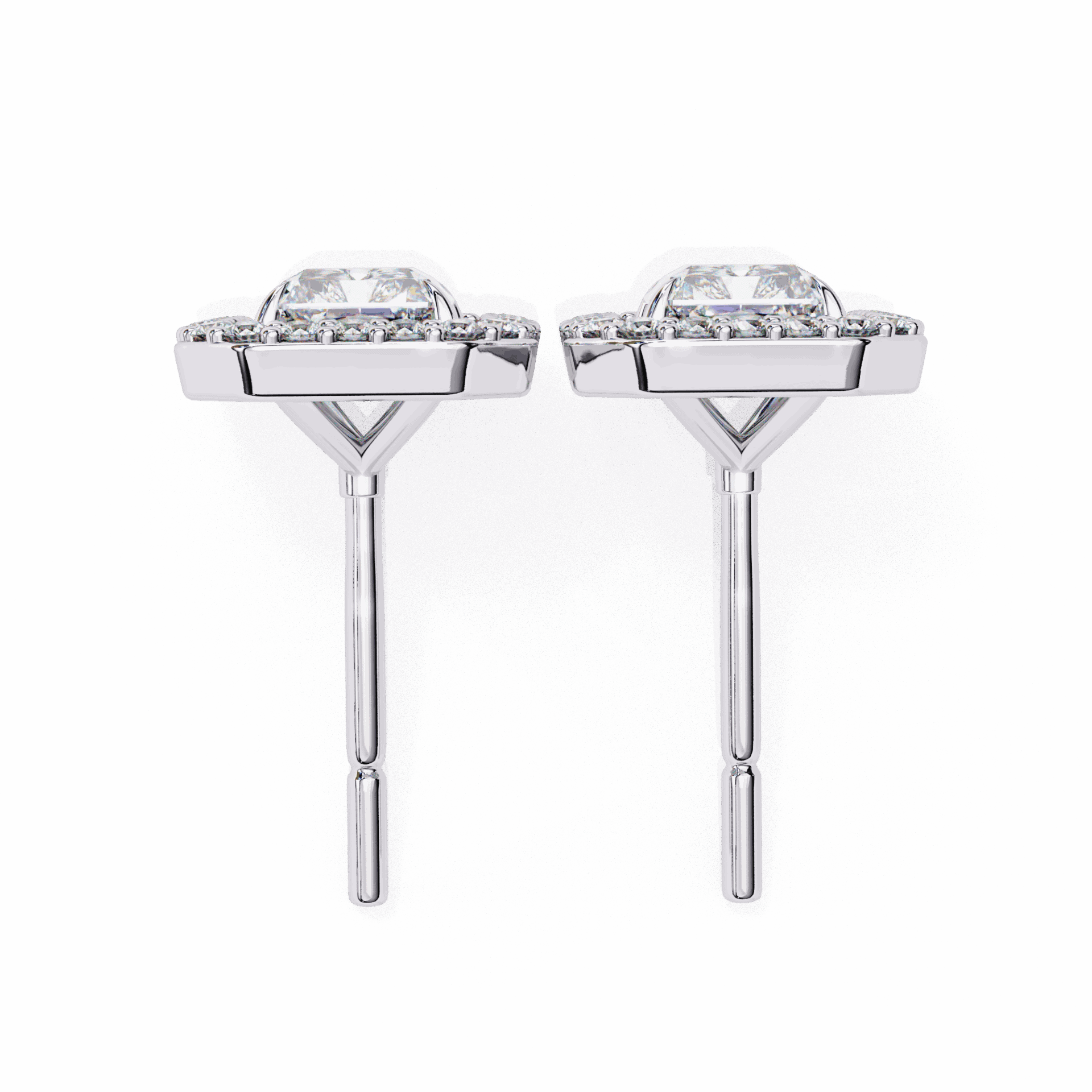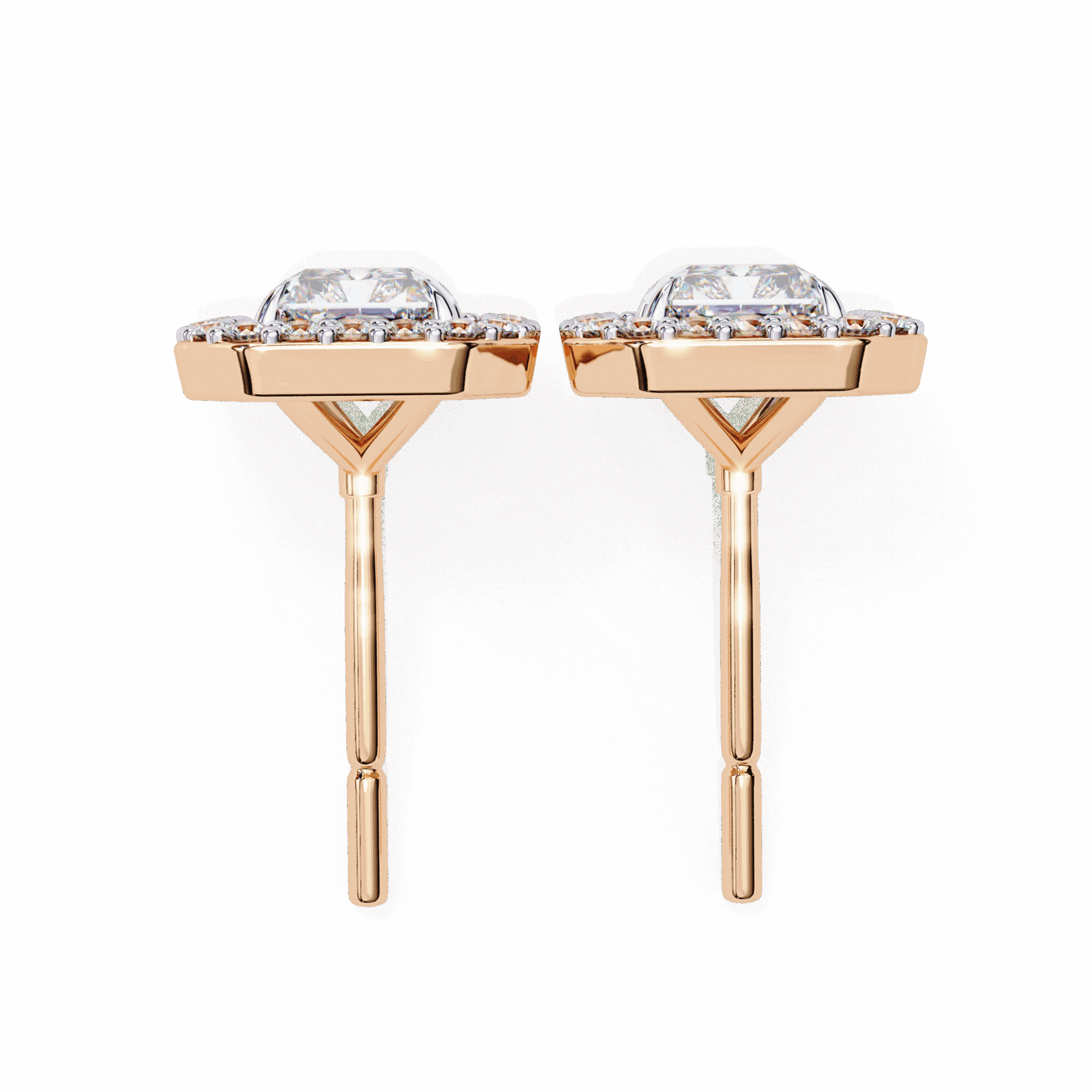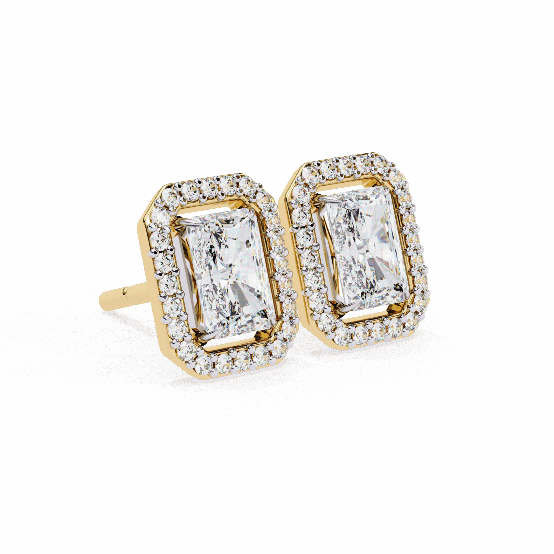 1 Carat Classic Radiant and Round Diamond Stud Earrings
