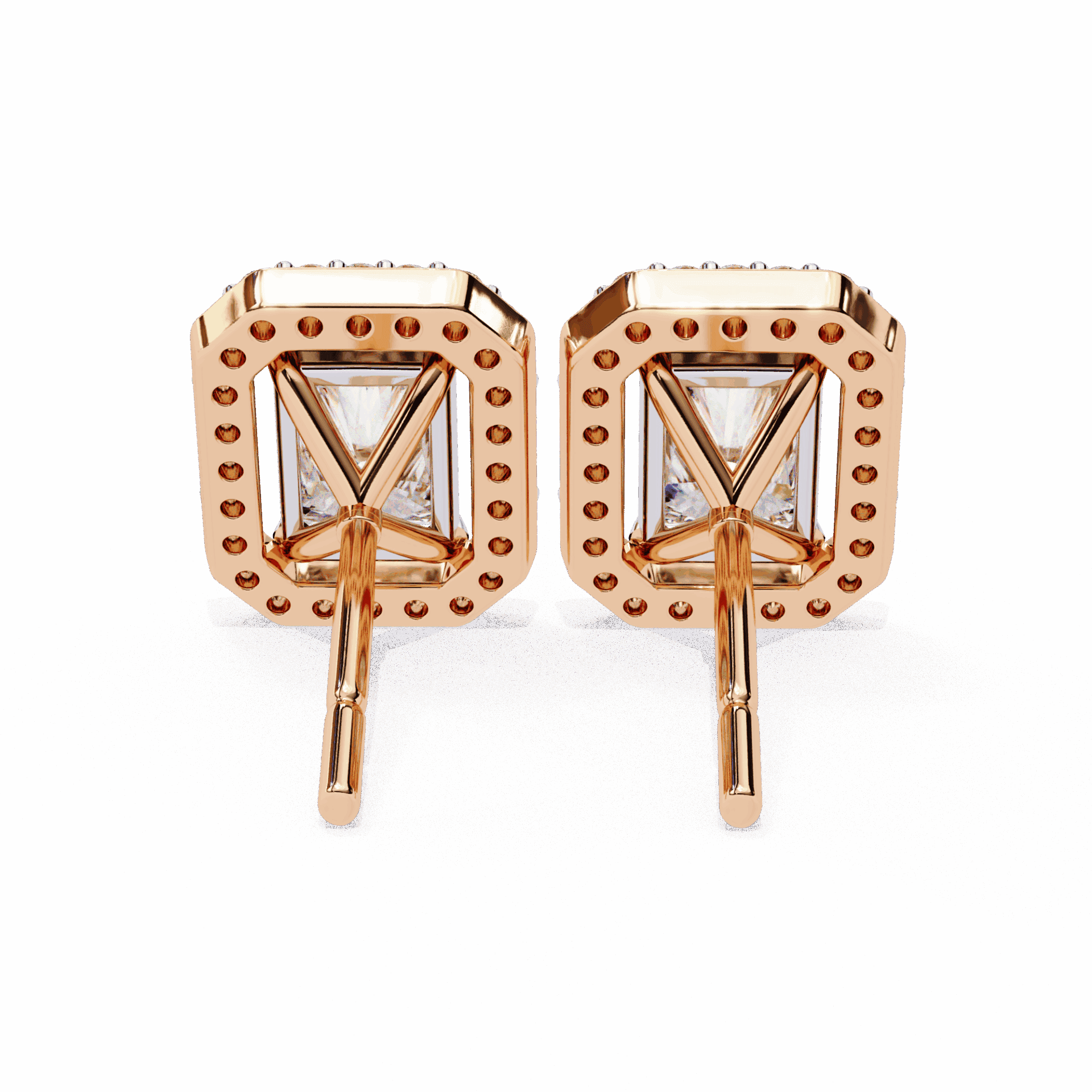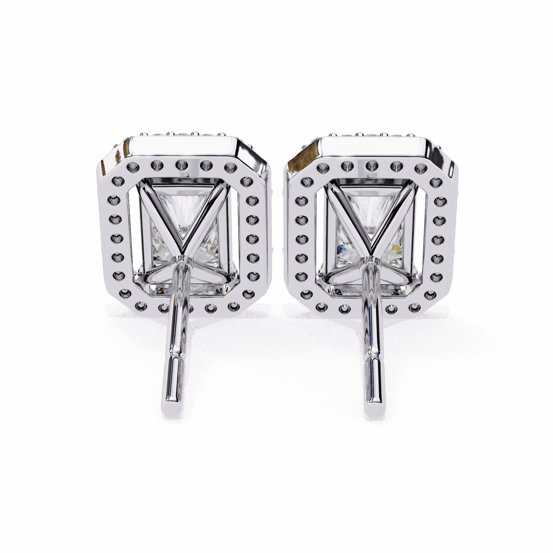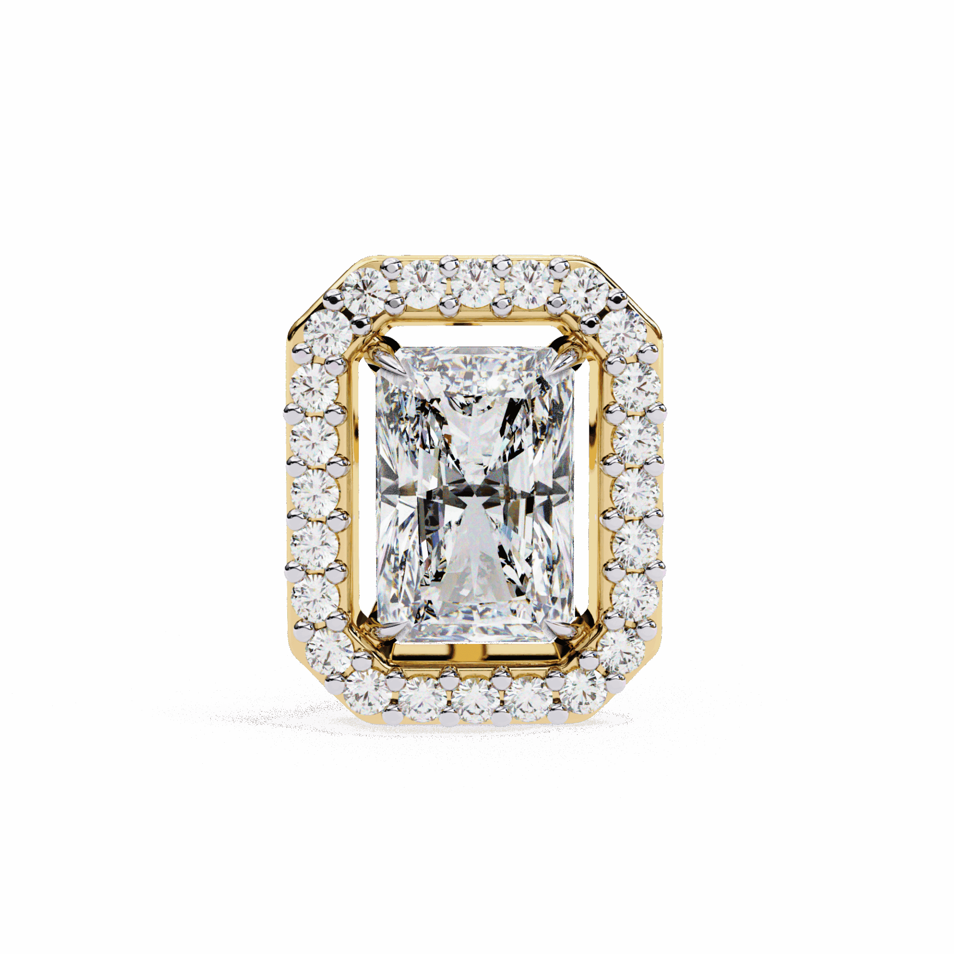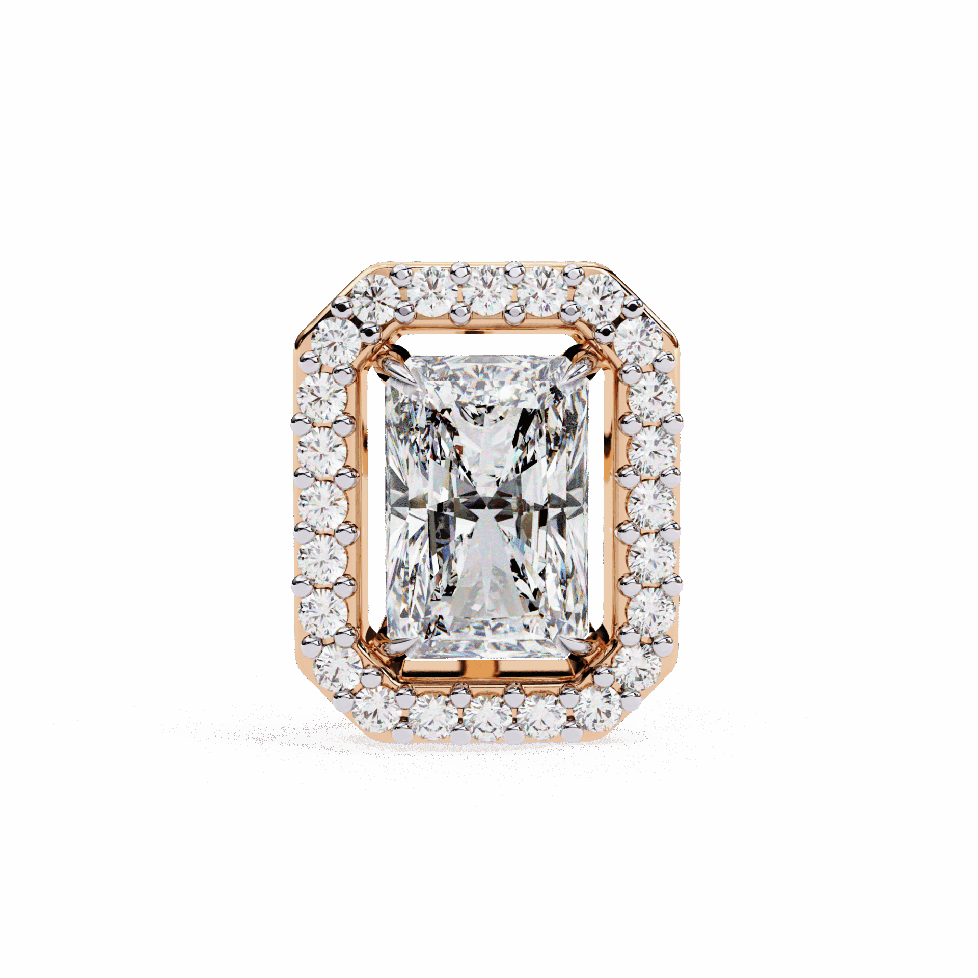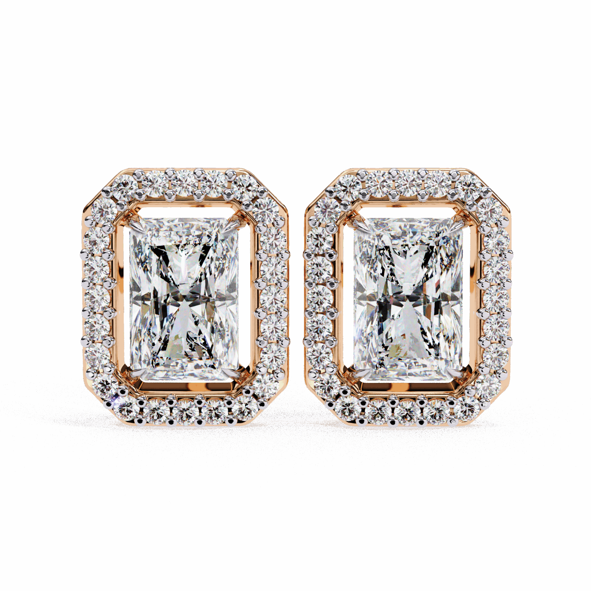 25 lab-grown diamonds – radiant centers surrounded by round accents – totaling 0.96 carats. The radiant cuts bring rectangular elegance, the rounds add brilliant fire.