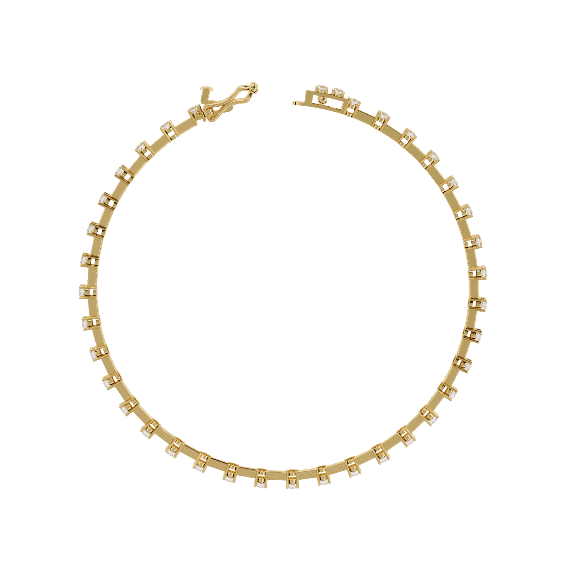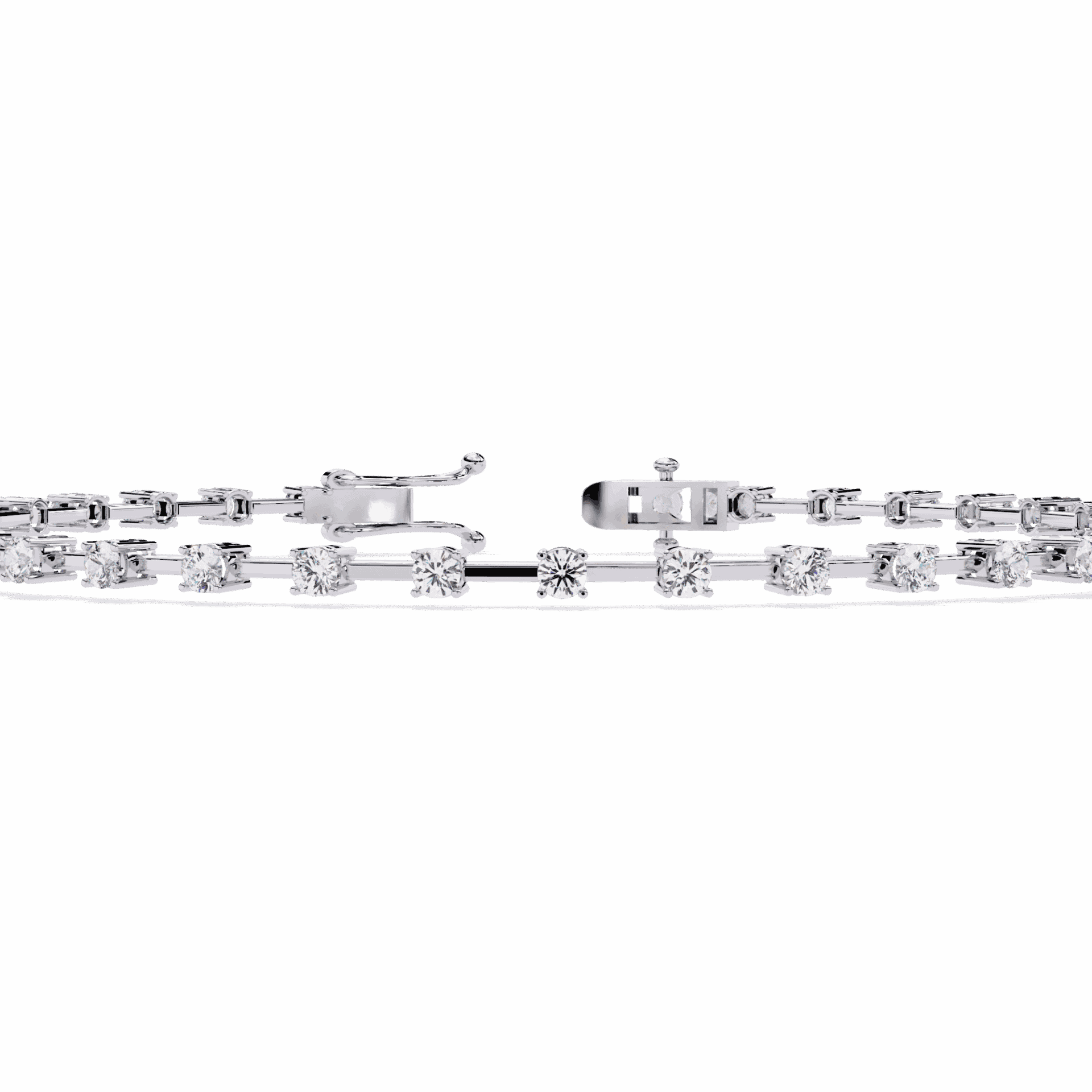 37 round lab-grown diamonds set in a lightweight tennis formation. It has the look of a classic tennis but sits lighter on the wrist - designed for women who want sparkle they can forget they're wearing.