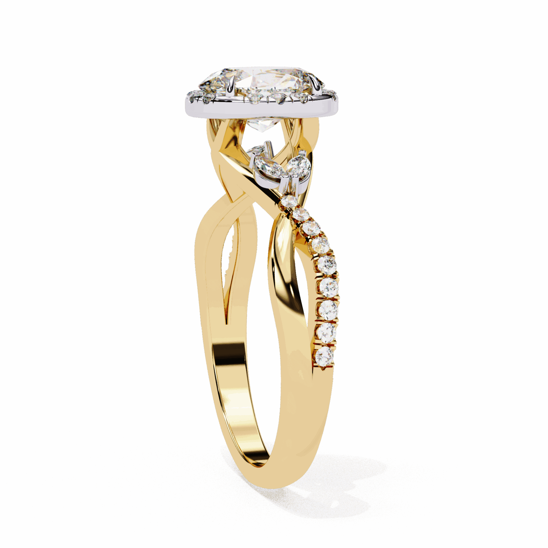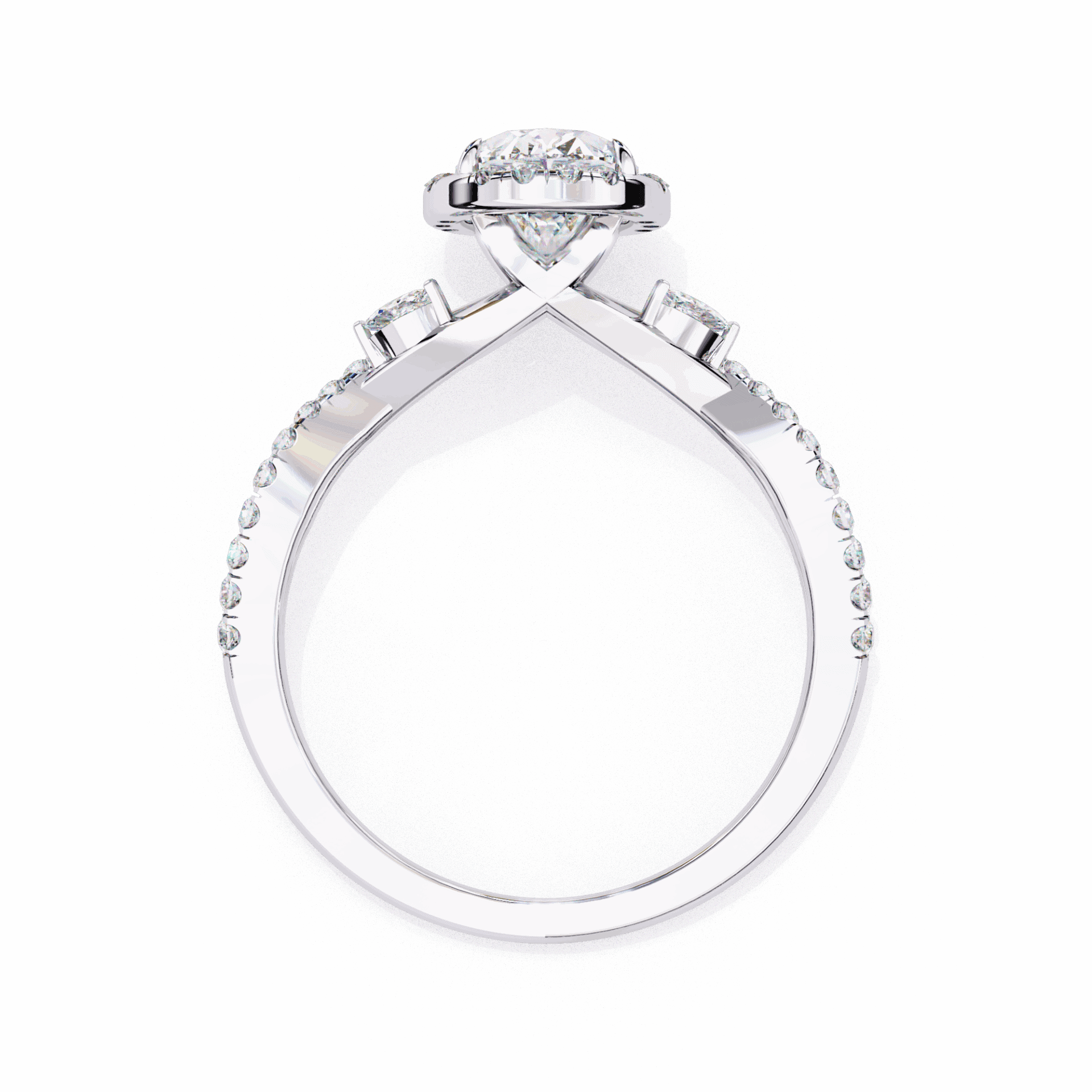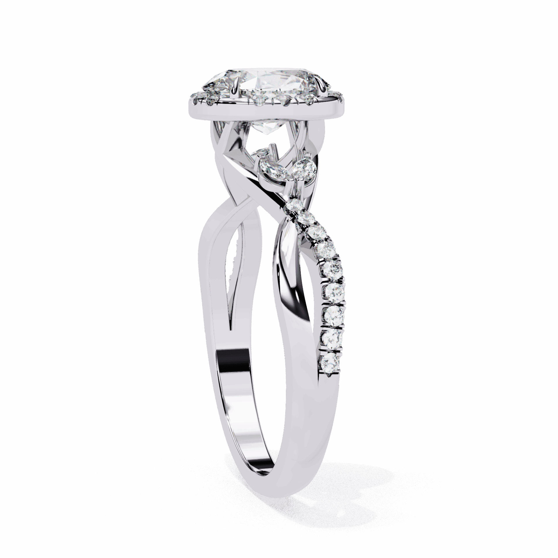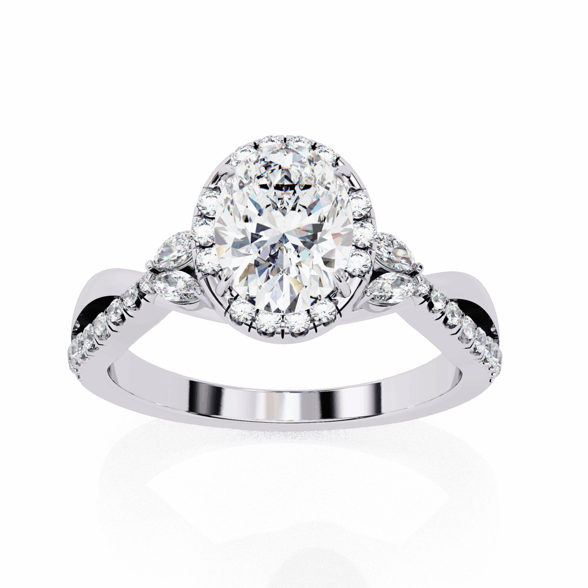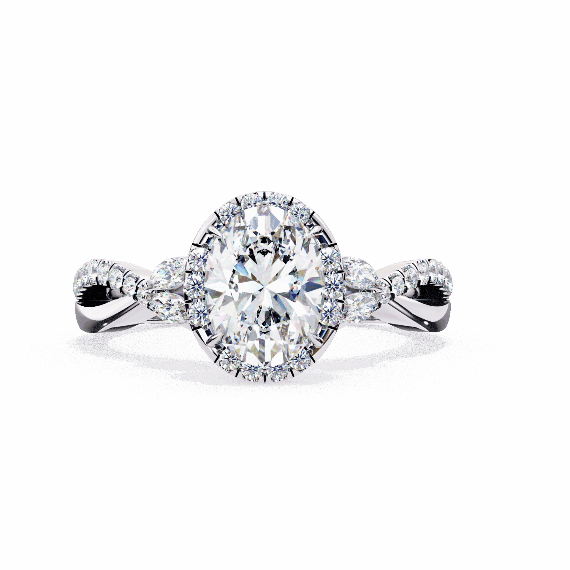 An oval-cut lab-grown diamond surrounded by 39 halo accent diamonds totaling 1 carat. The halo amplifies the oval’s flattering shape.