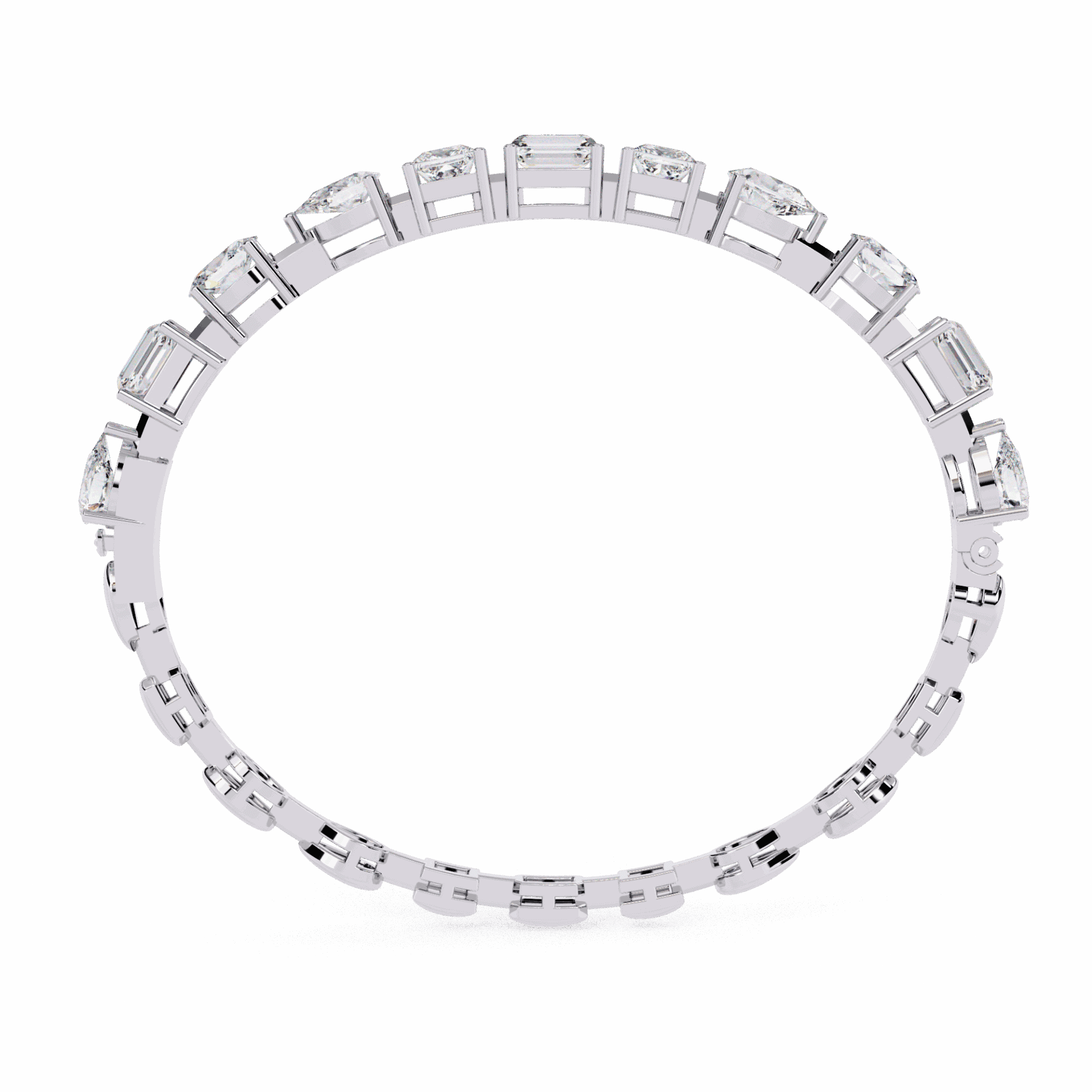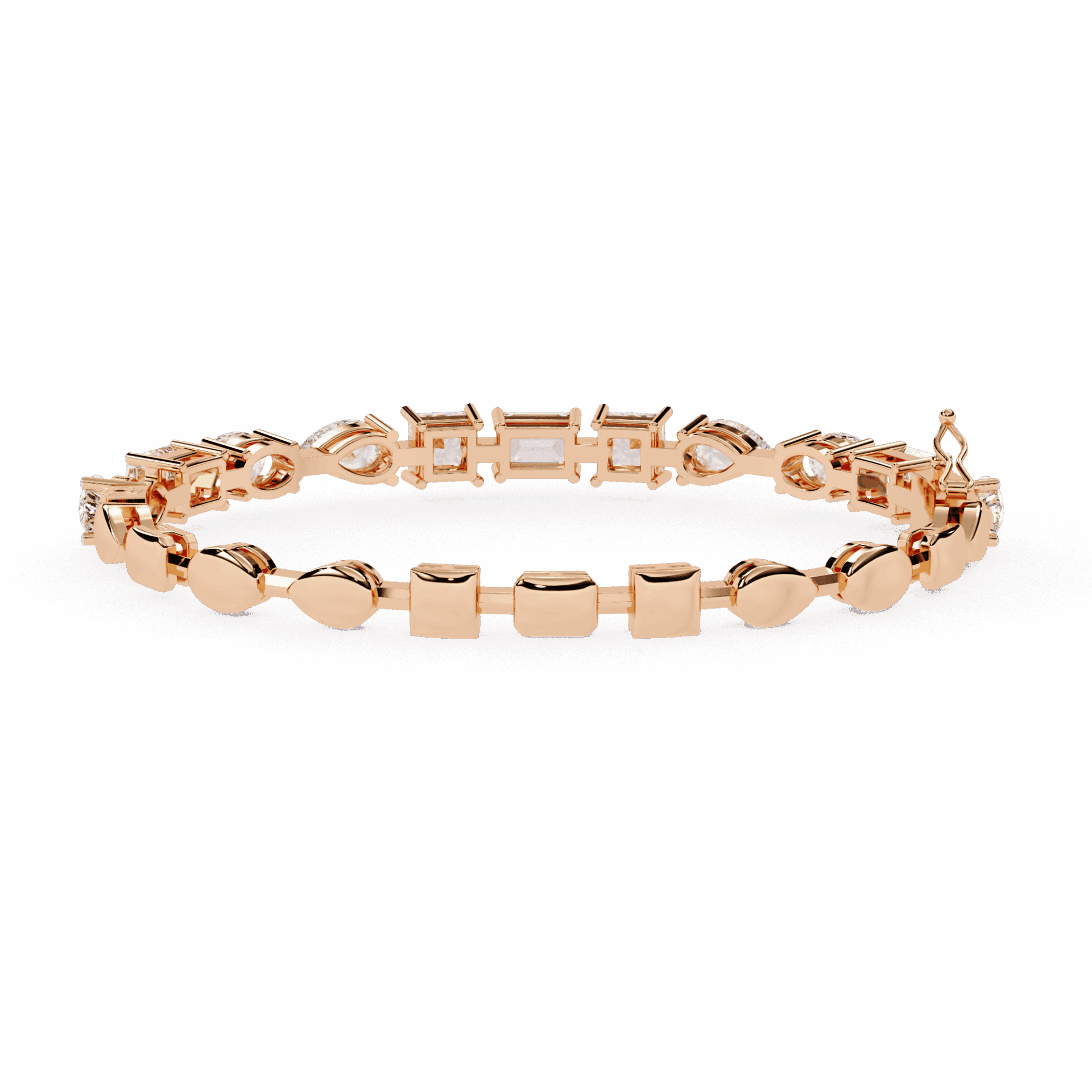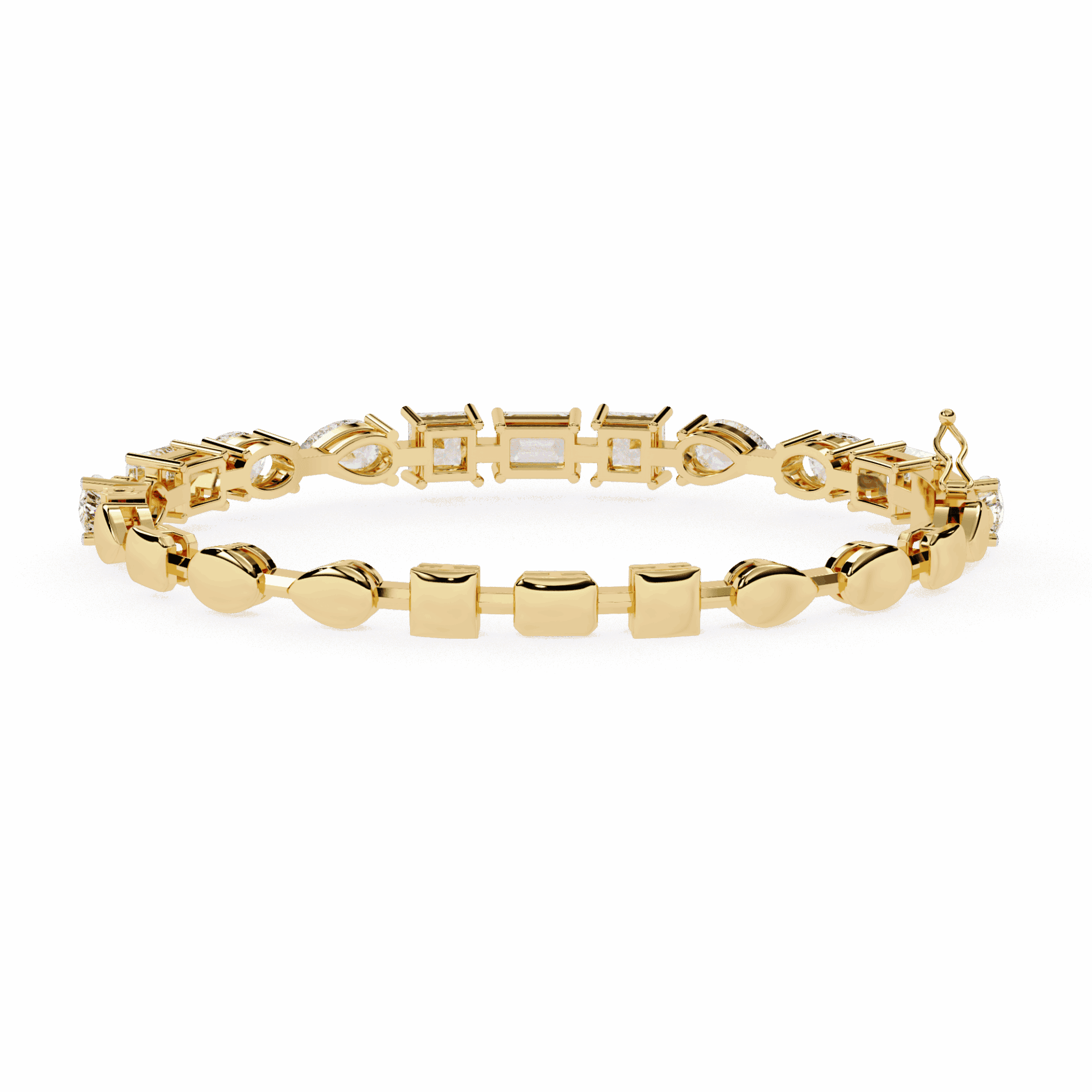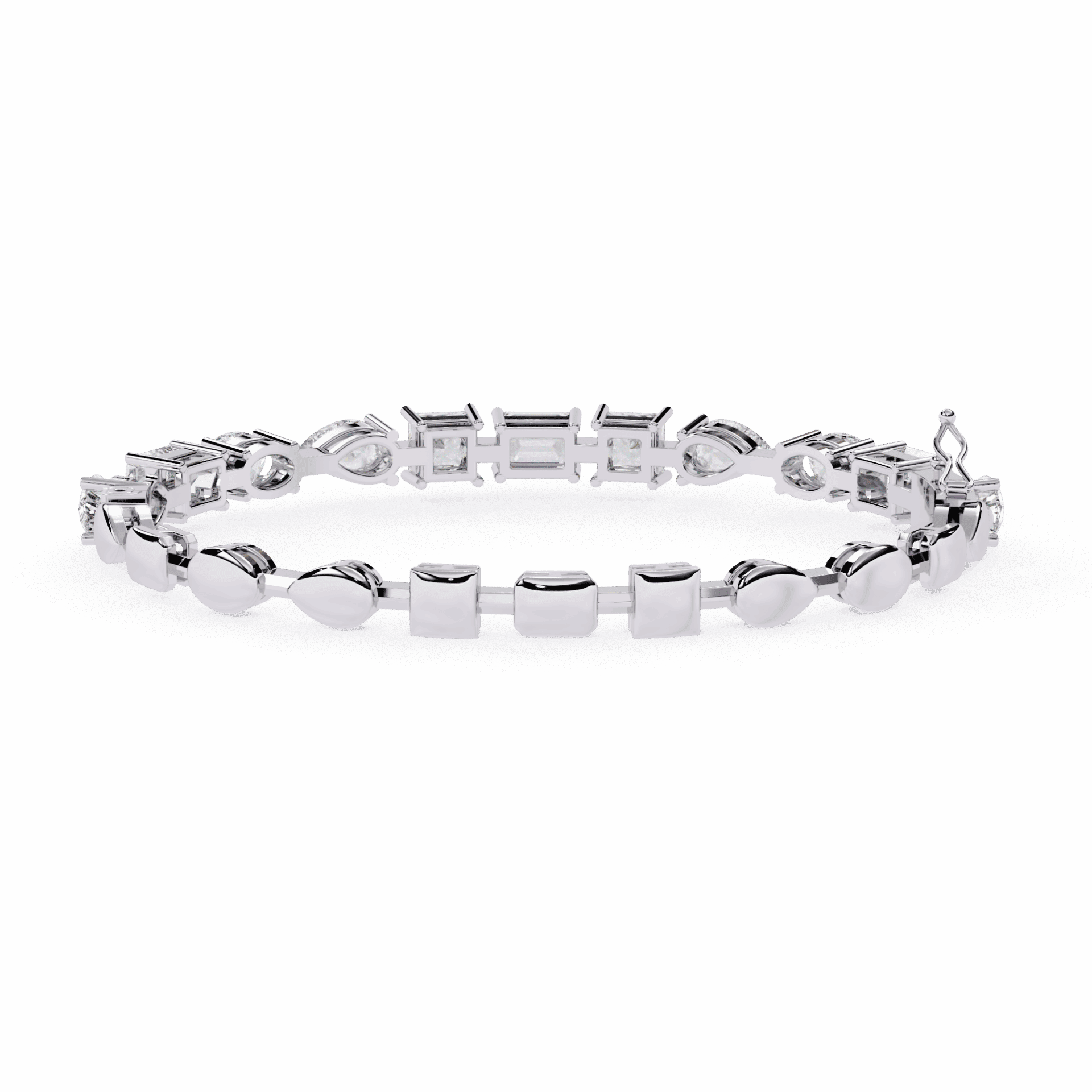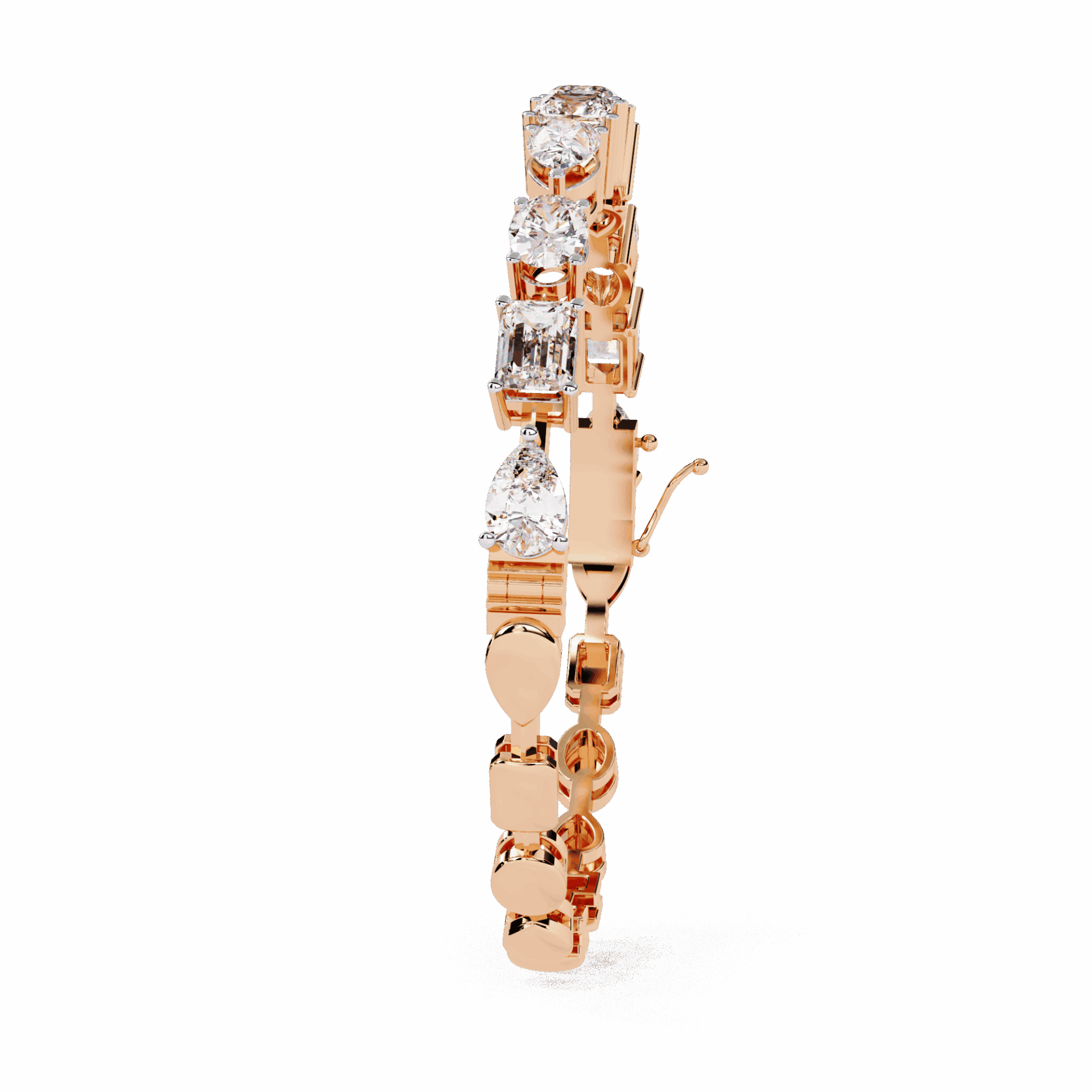 23 substantial lab-grown diamonds in alternating cuts – pear, emerald, oval, princess, round – set in a tennis formation. Each stone is large enough to appreciate individually. Together, they’re extraordinary.