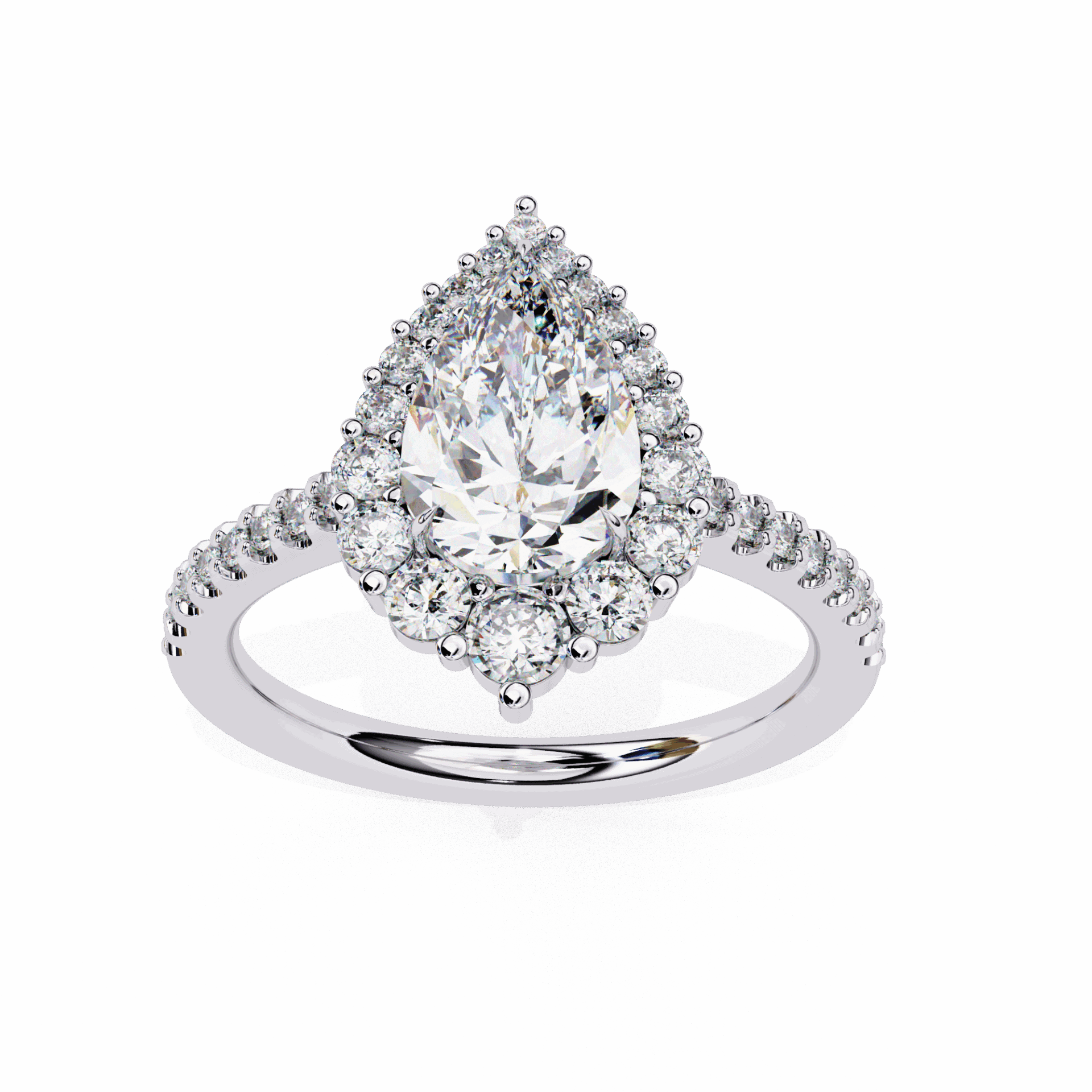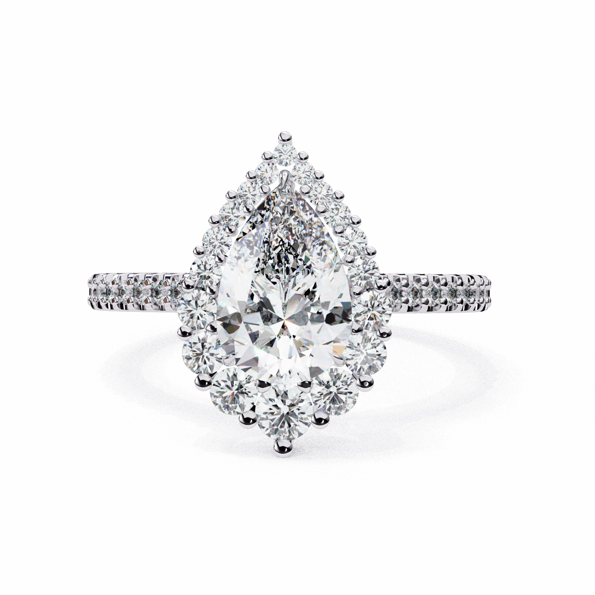 A pear-cut lab-grown diamond with 37 accent diamonds totaling 2.24 carats. Teardrop drama refined for daily wear.