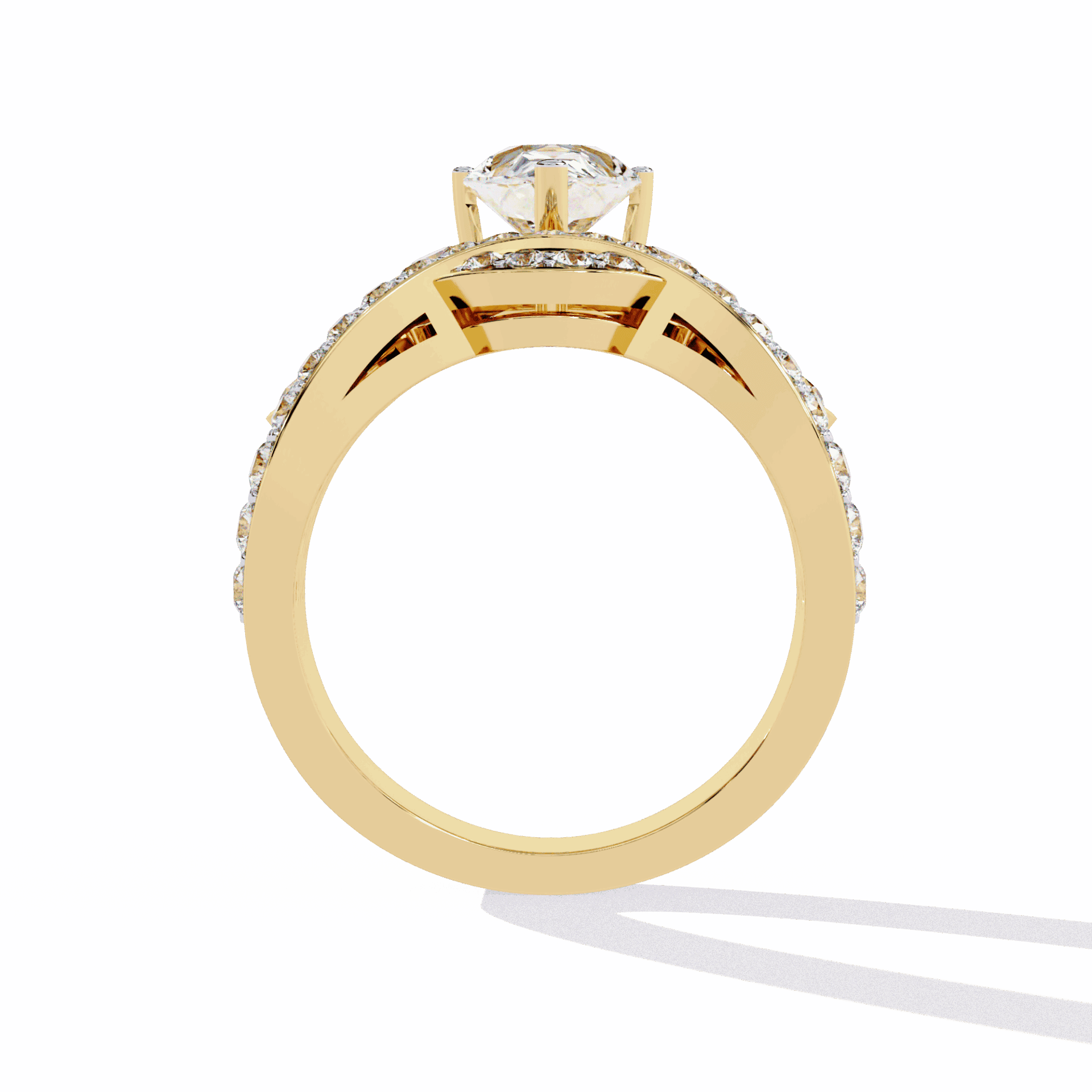 One pear center in an elaborate cocktail setting. Party-ready teardrop drama.