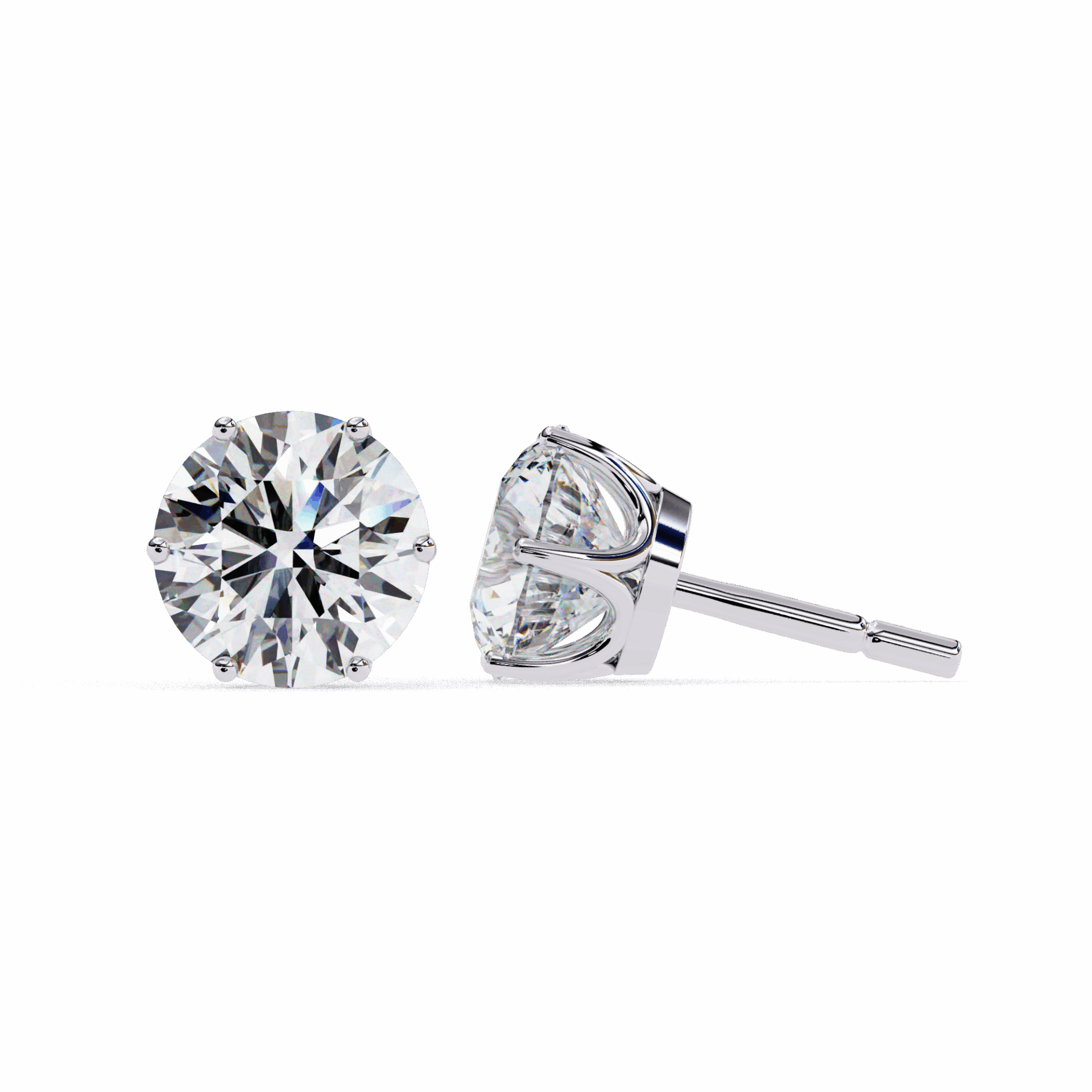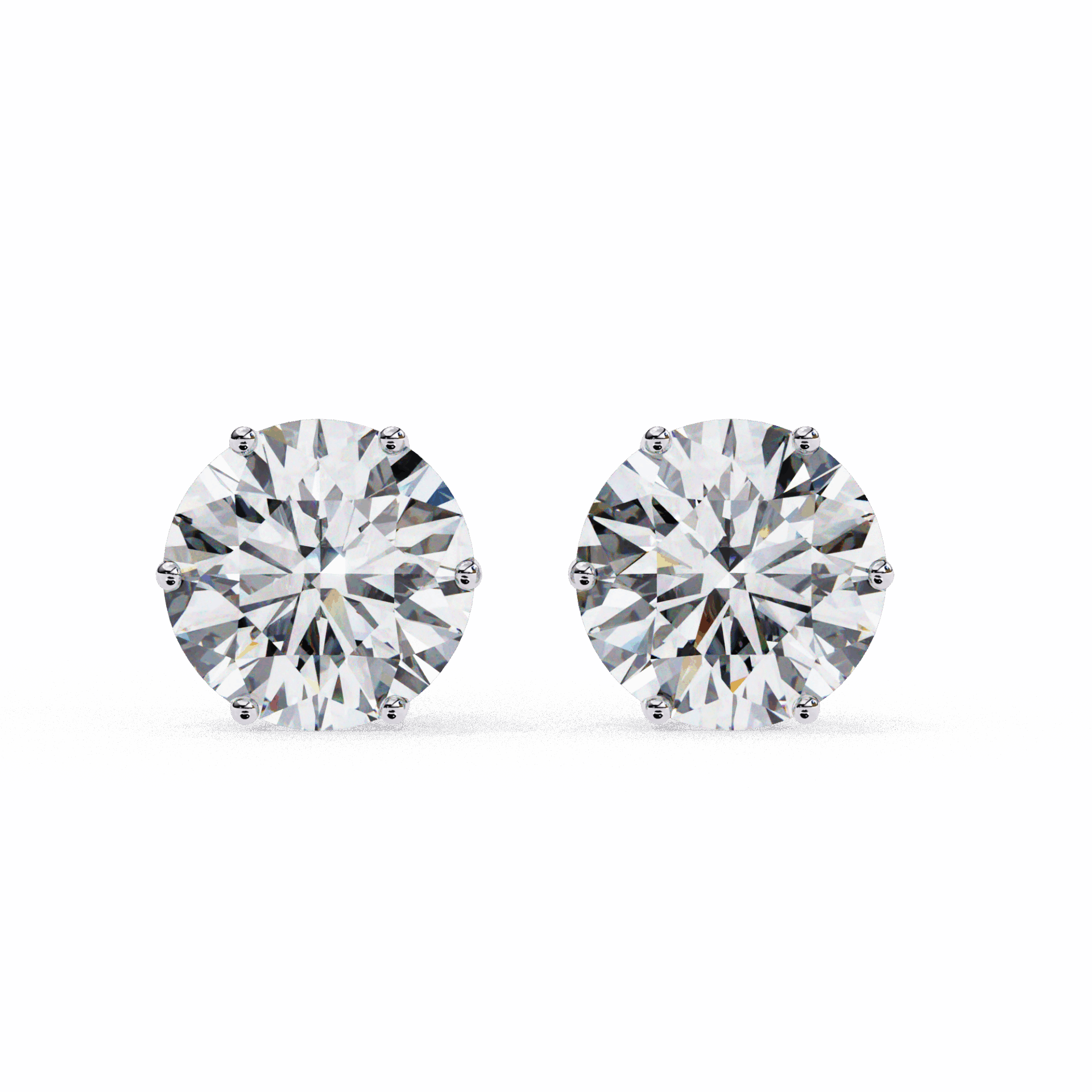 Two round lab-grown diamonds totaling 2.57 carats in the classic setting that has defined diamond studs for generations. Round brilliant cut for maximum sparkle, timeless setting for maximum versatility.