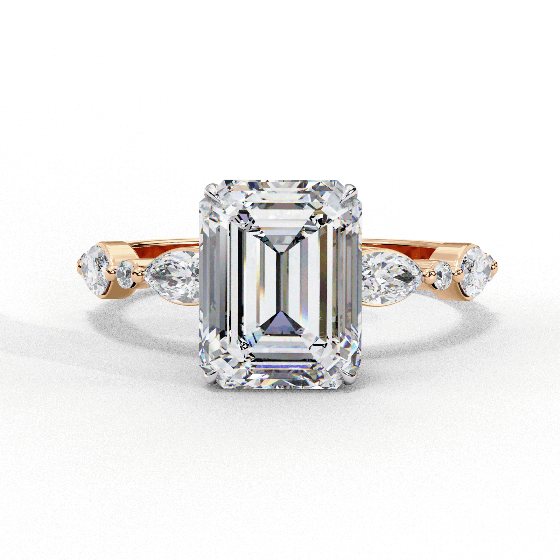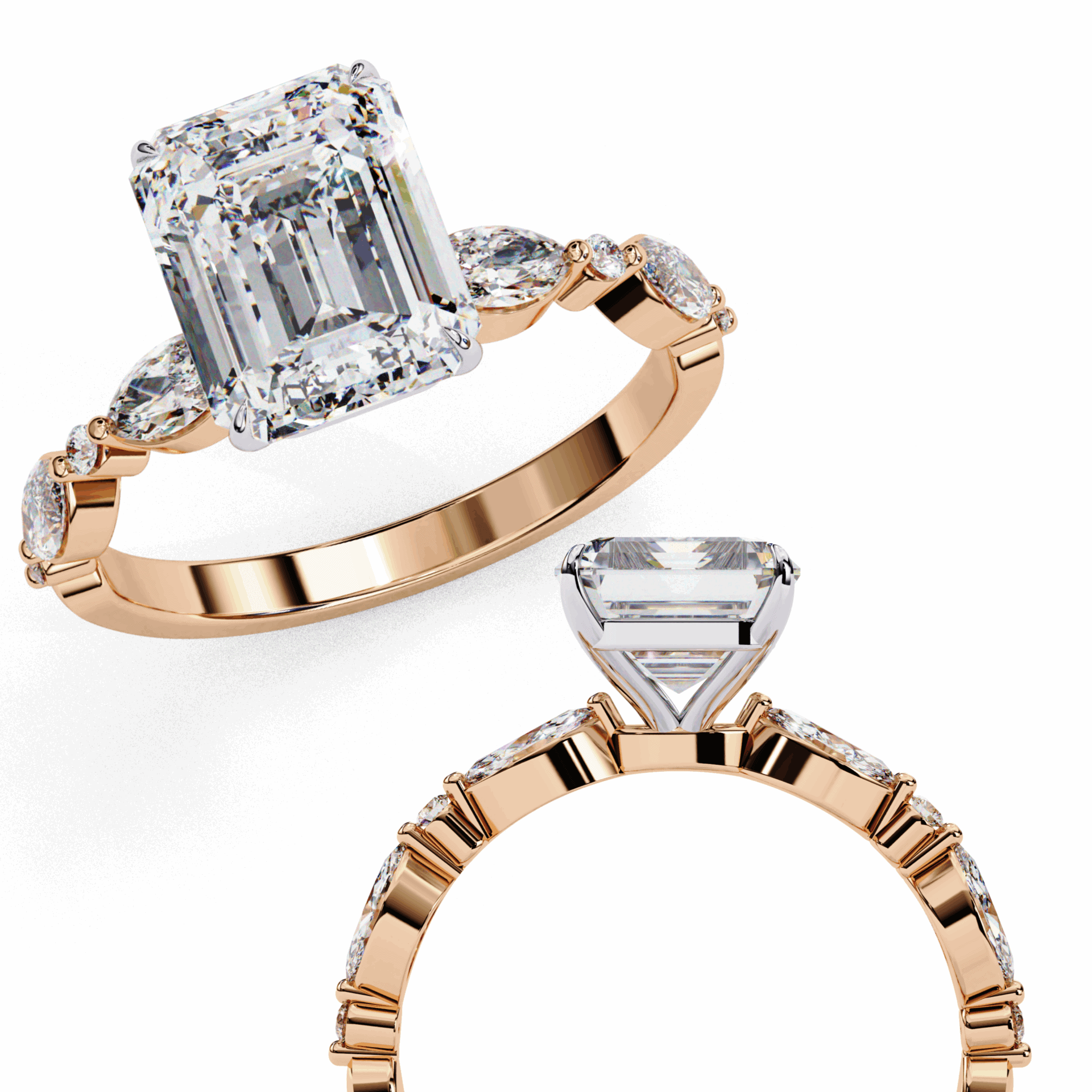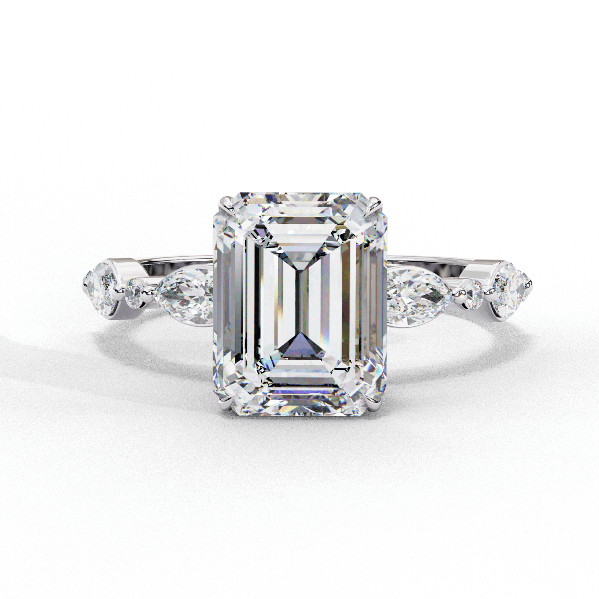 This design can be customized – different emerald size or accent stones. Book a free consultation to discuss.
