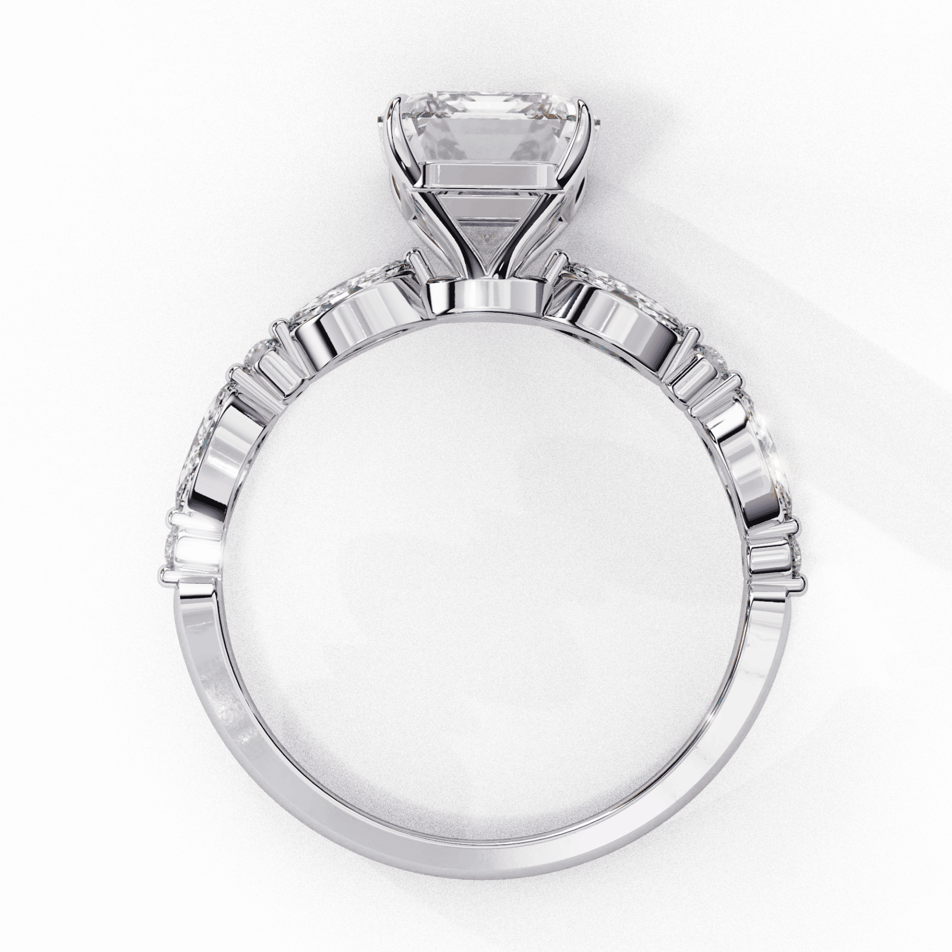 An emerald-cut lab-grown diamond with 9 diamonds totaling 2.53 carats in the Endless Love setting. Step-cut sophistication for eternal commitment.