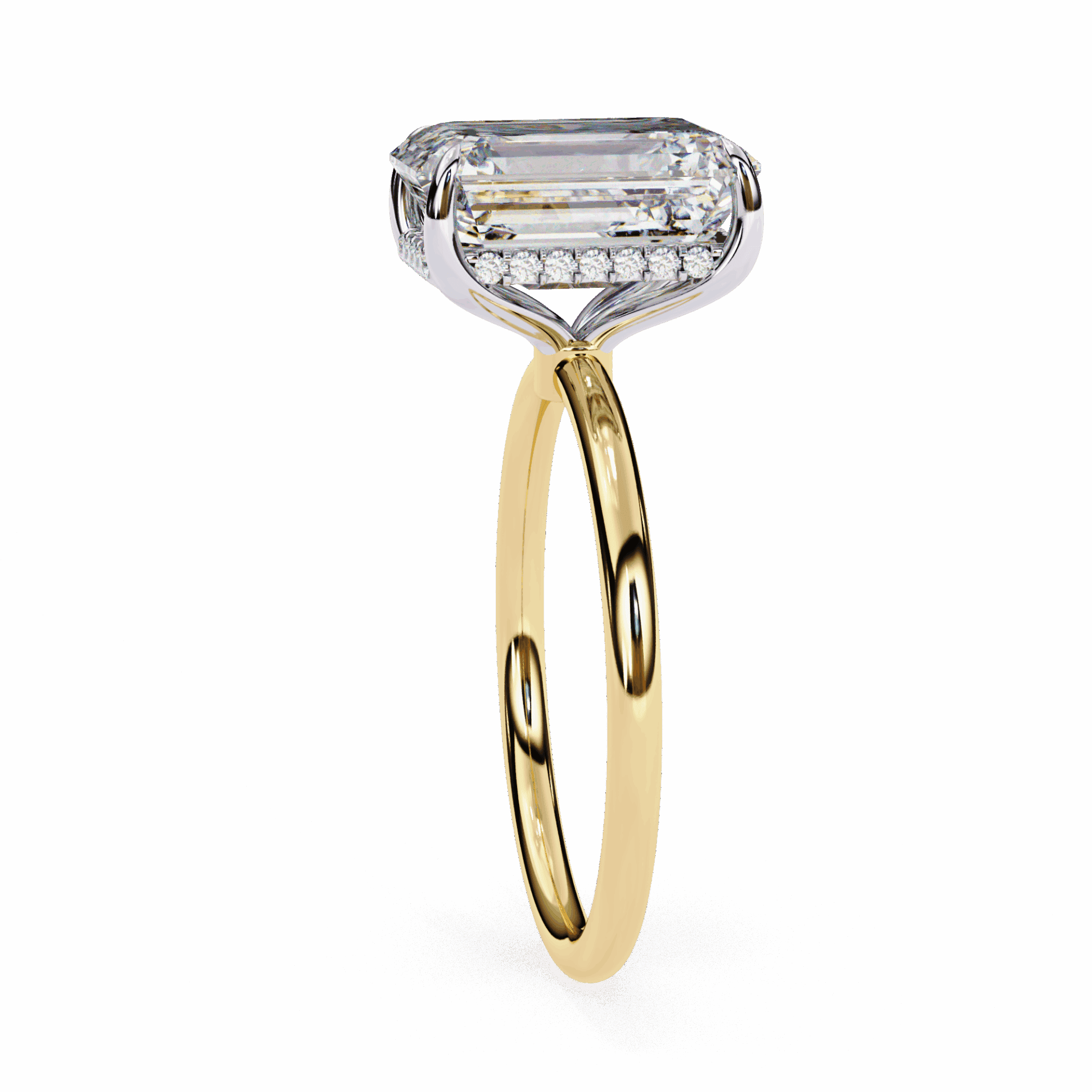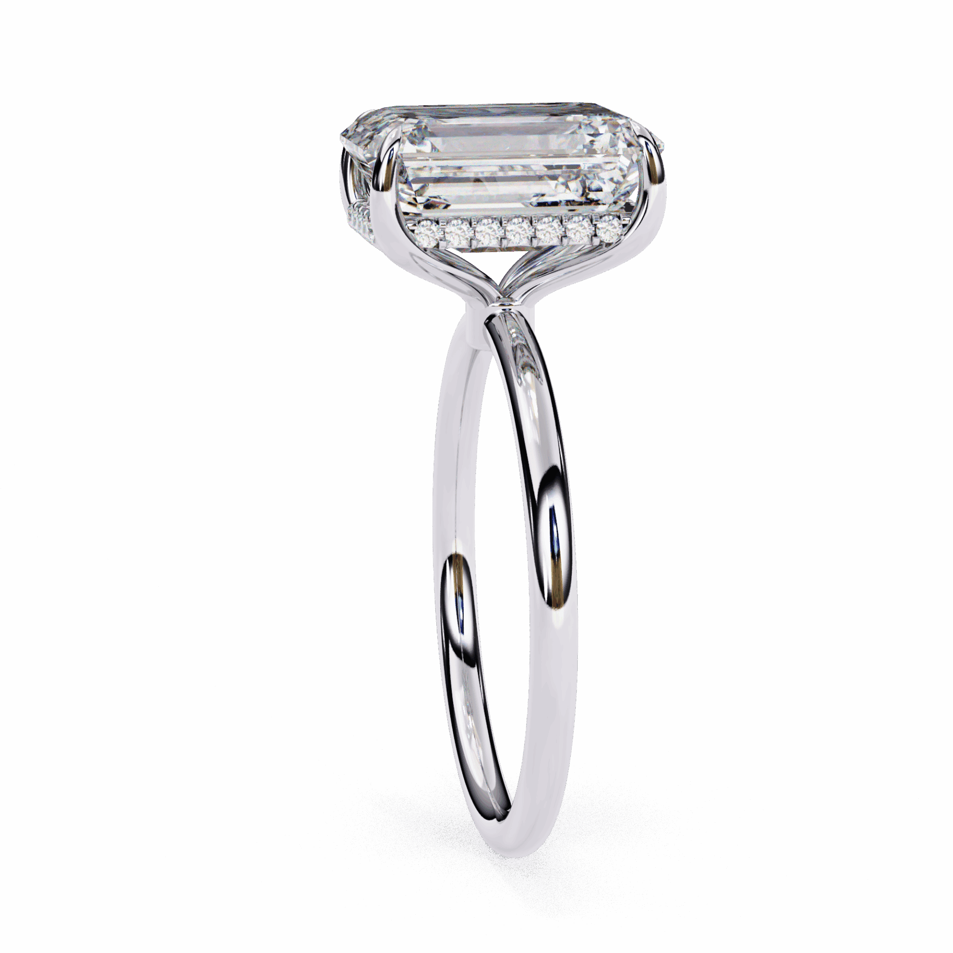 An emerald-cut lab-grown diamond with 17 accent diamonds totaling 2.62 carats. Step-cut elegance for eternal commitment.
