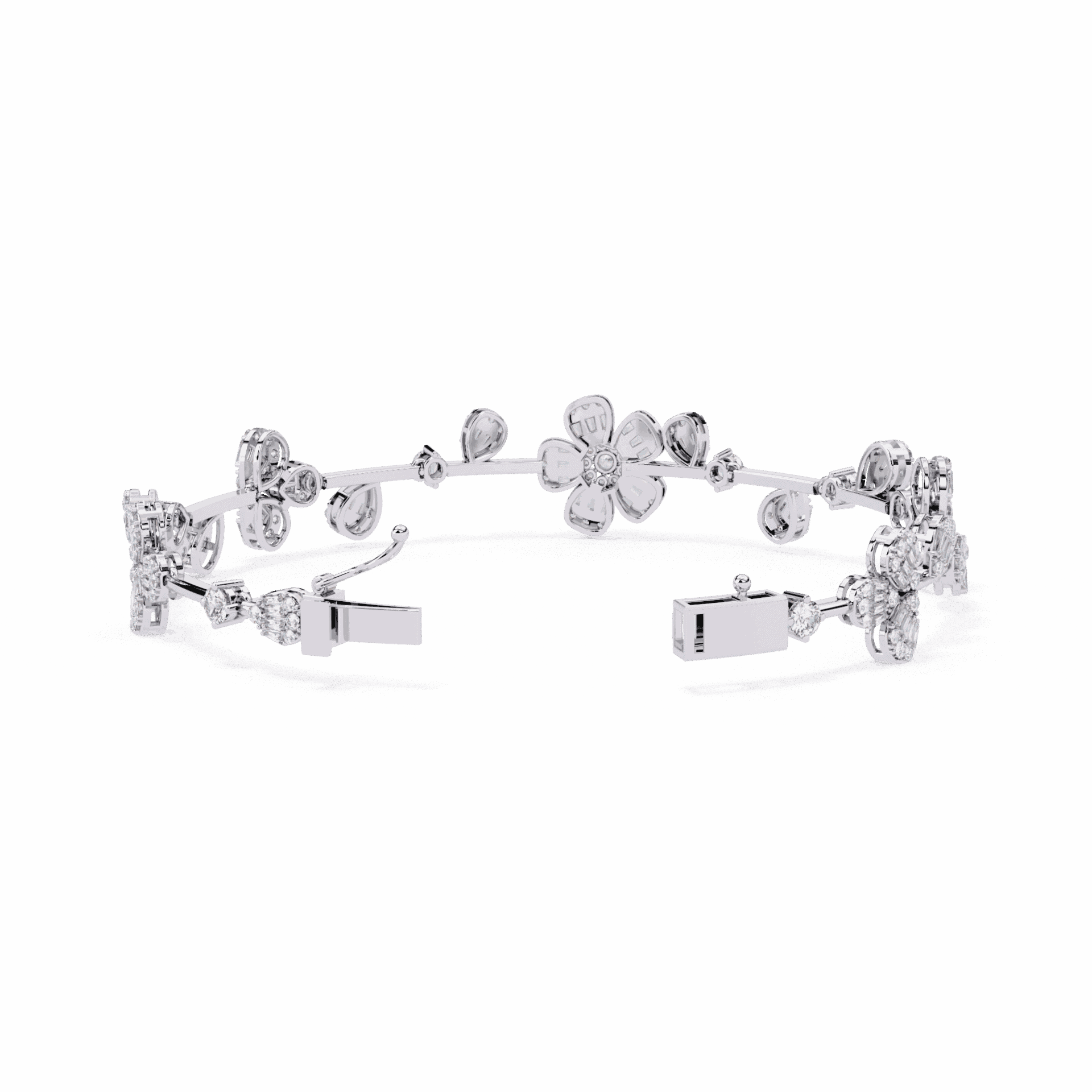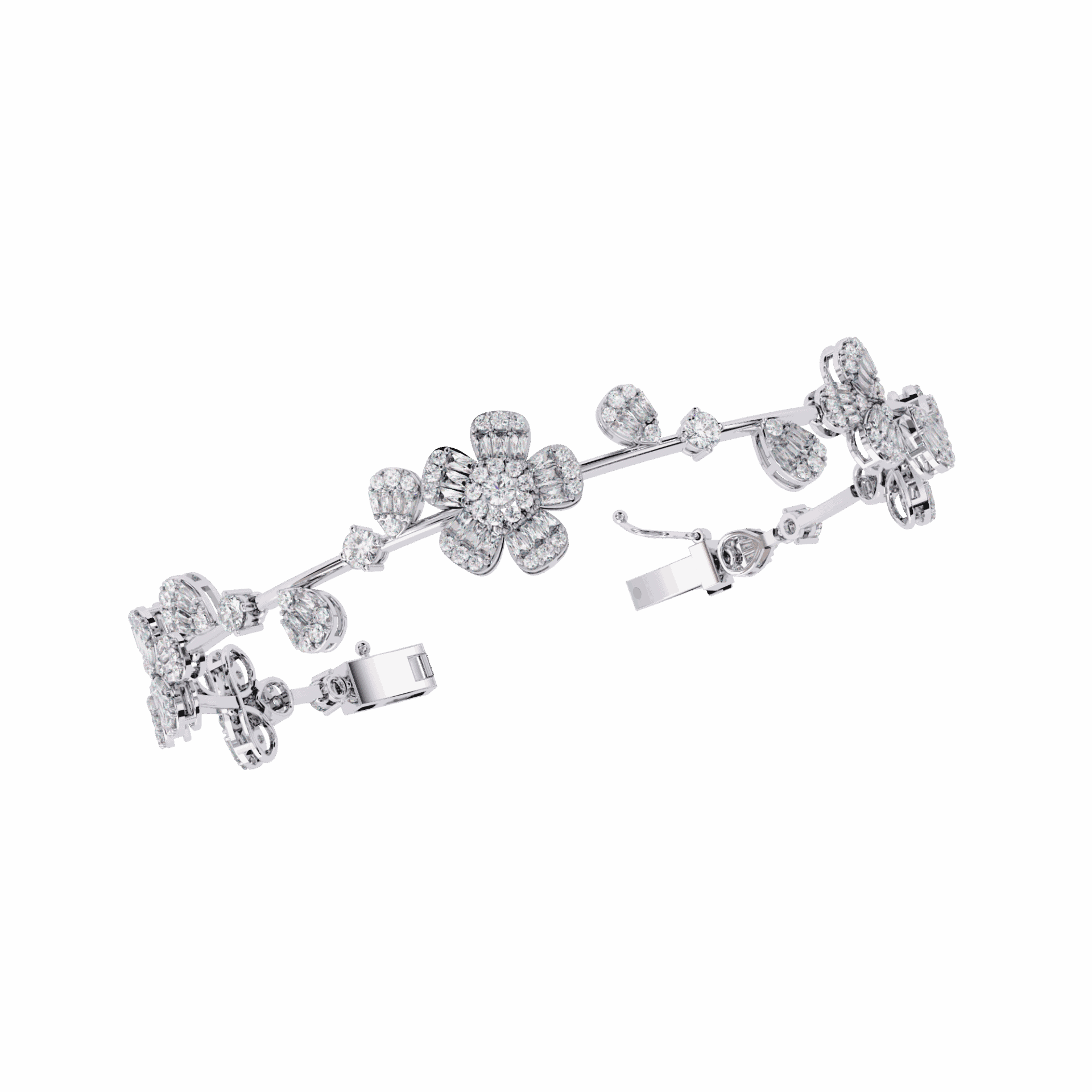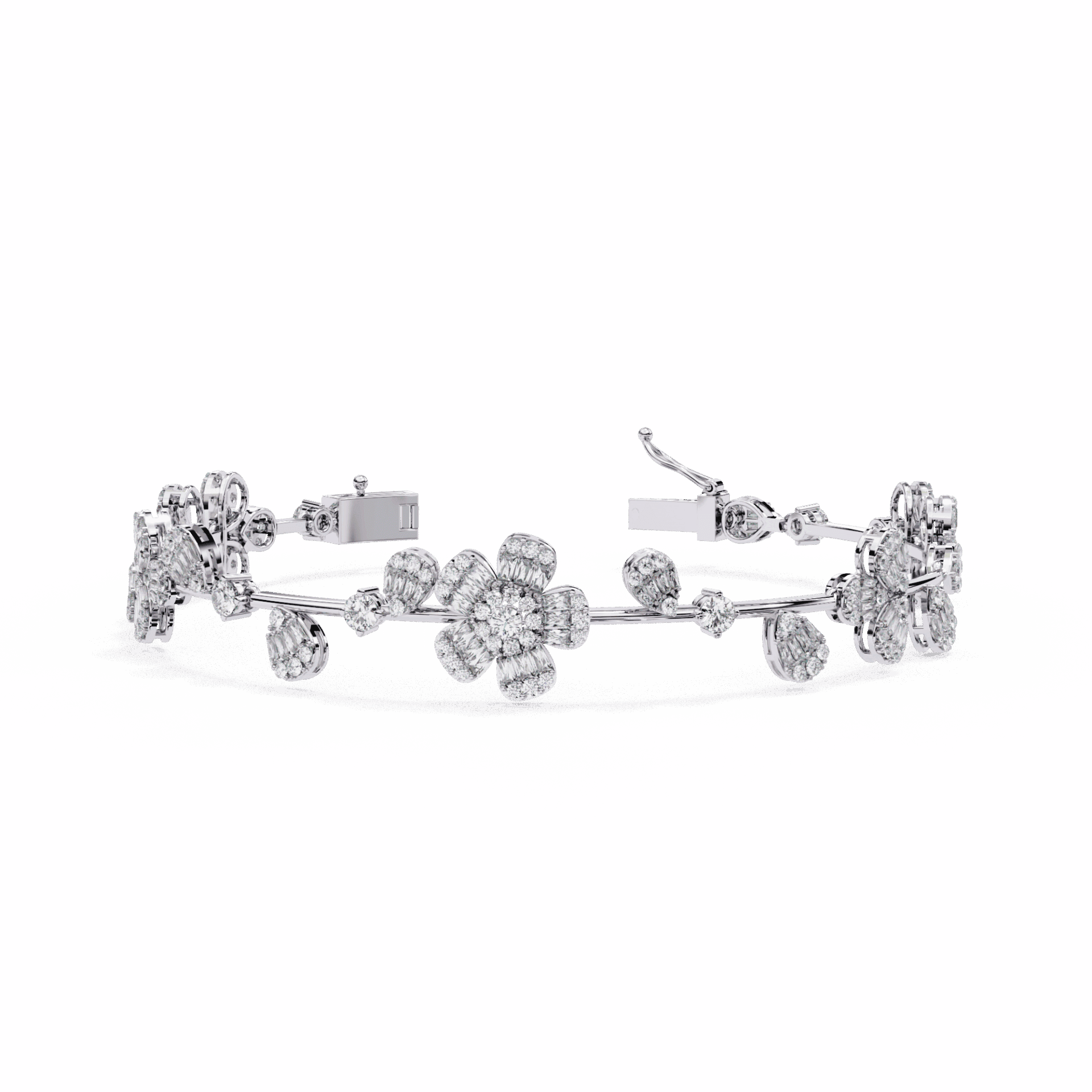 242 diamonds – baguette and round cuts – wrapping the wrist in multidimensional sparkle. The showstopper.