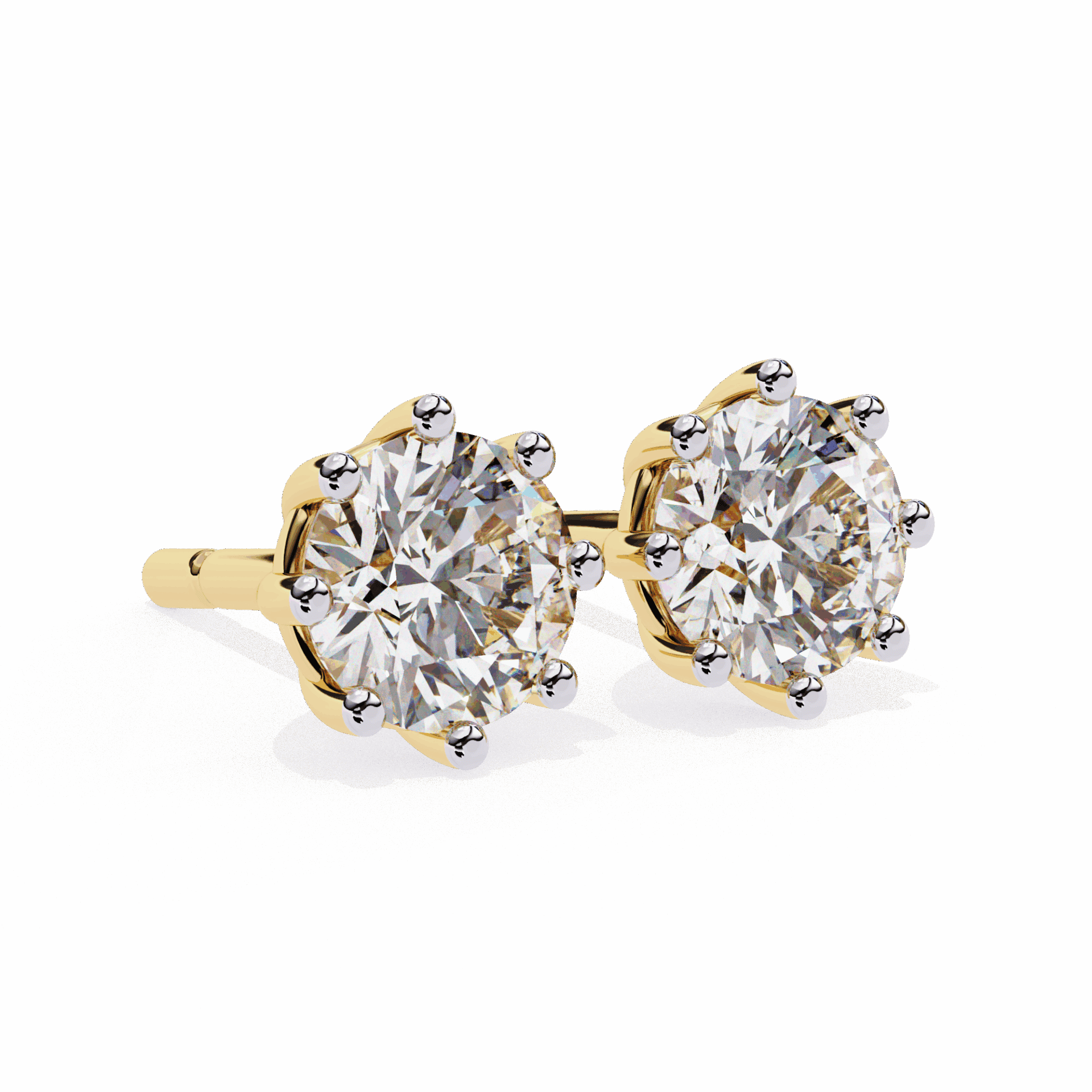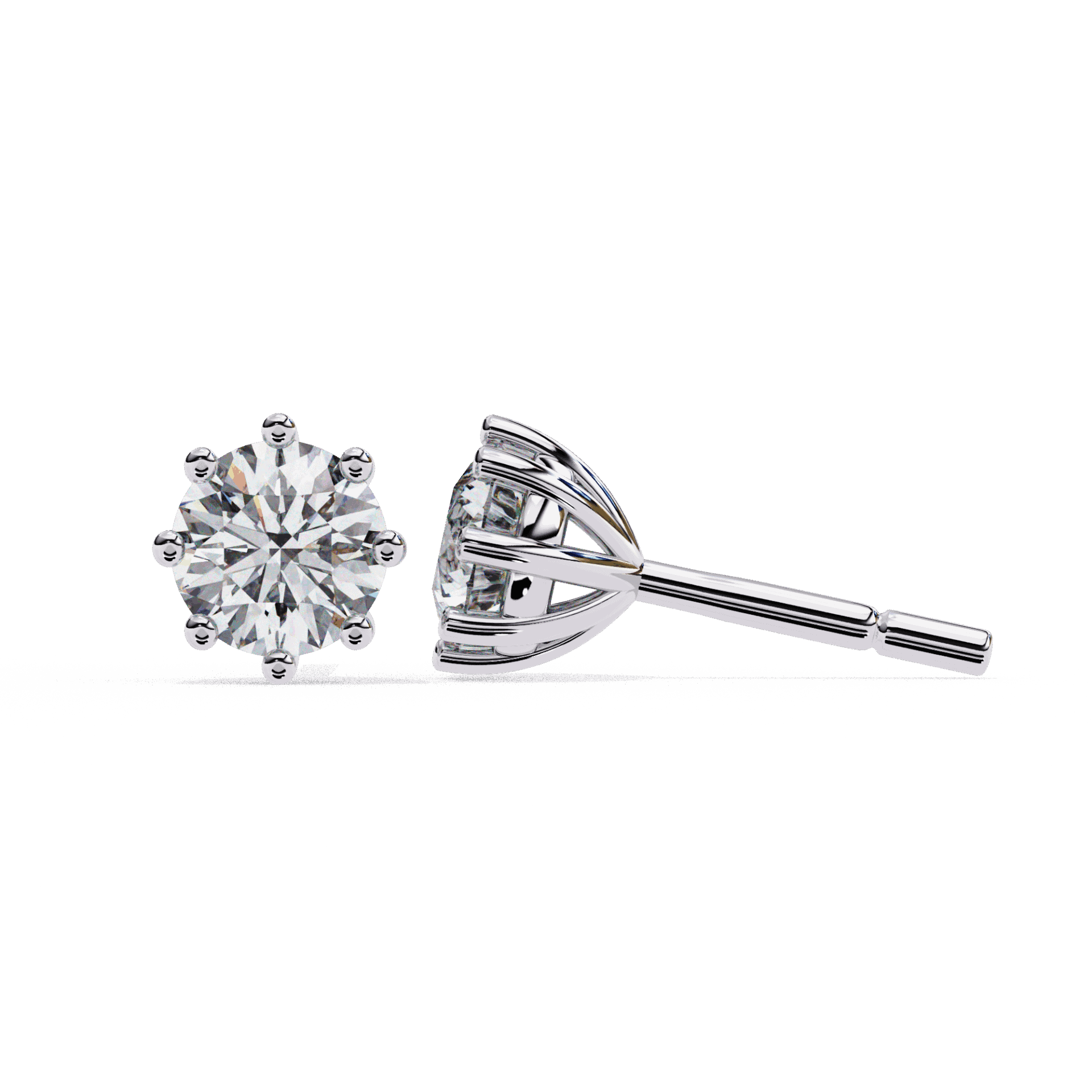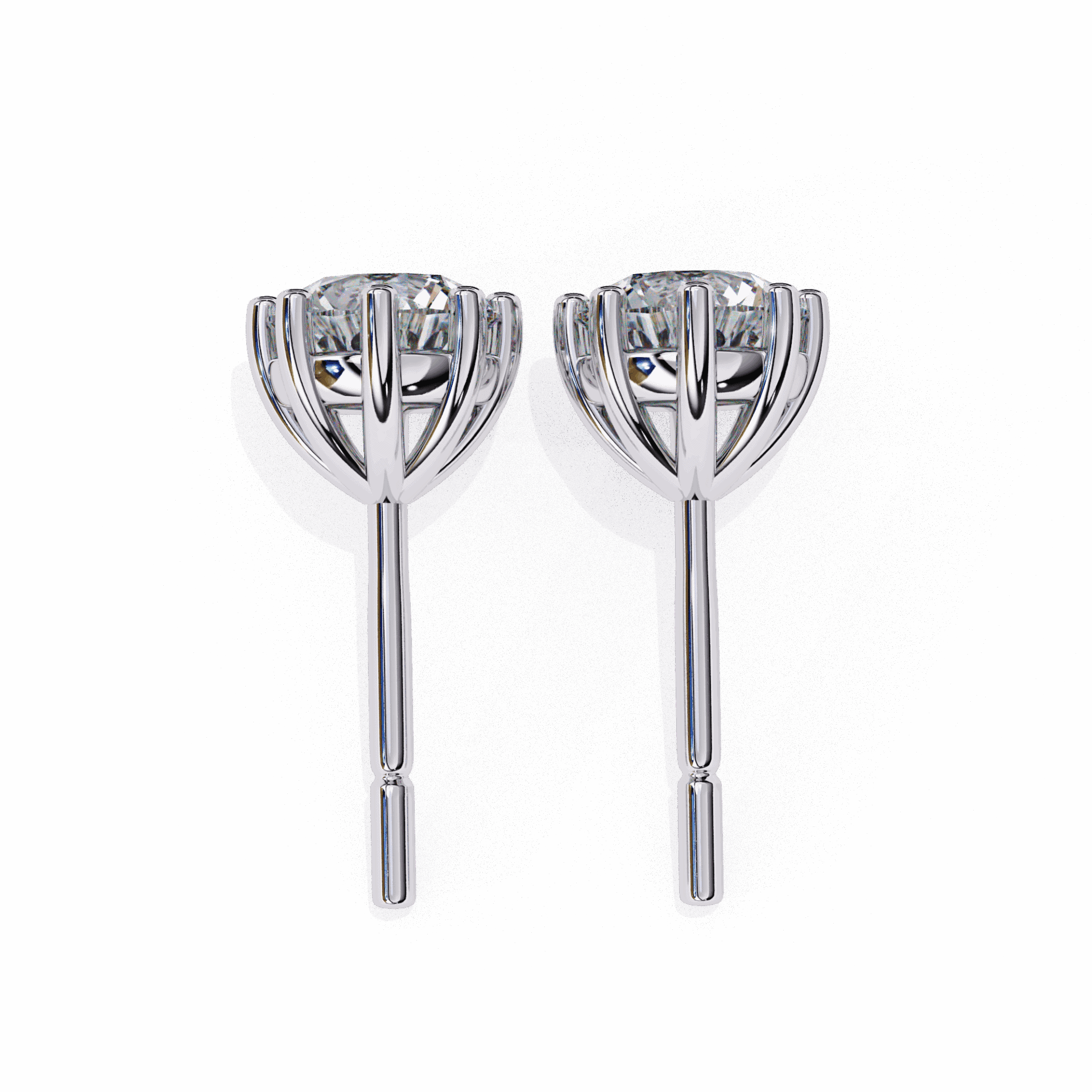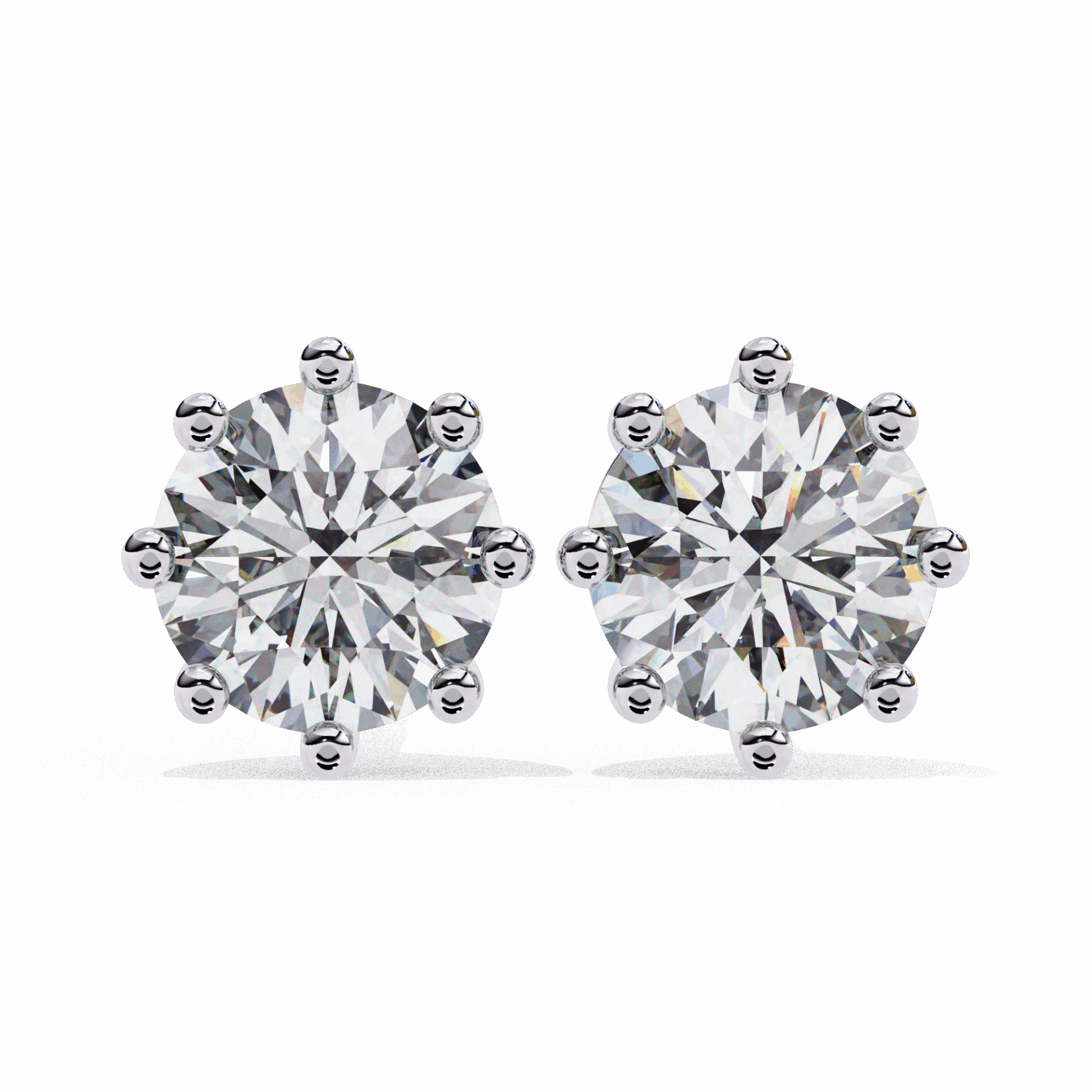 Two round lab-grown diamonds totaling 2.57 carats in multi-prong hoop settings. The additional prongs provide extra security while still letting light flood the stones.