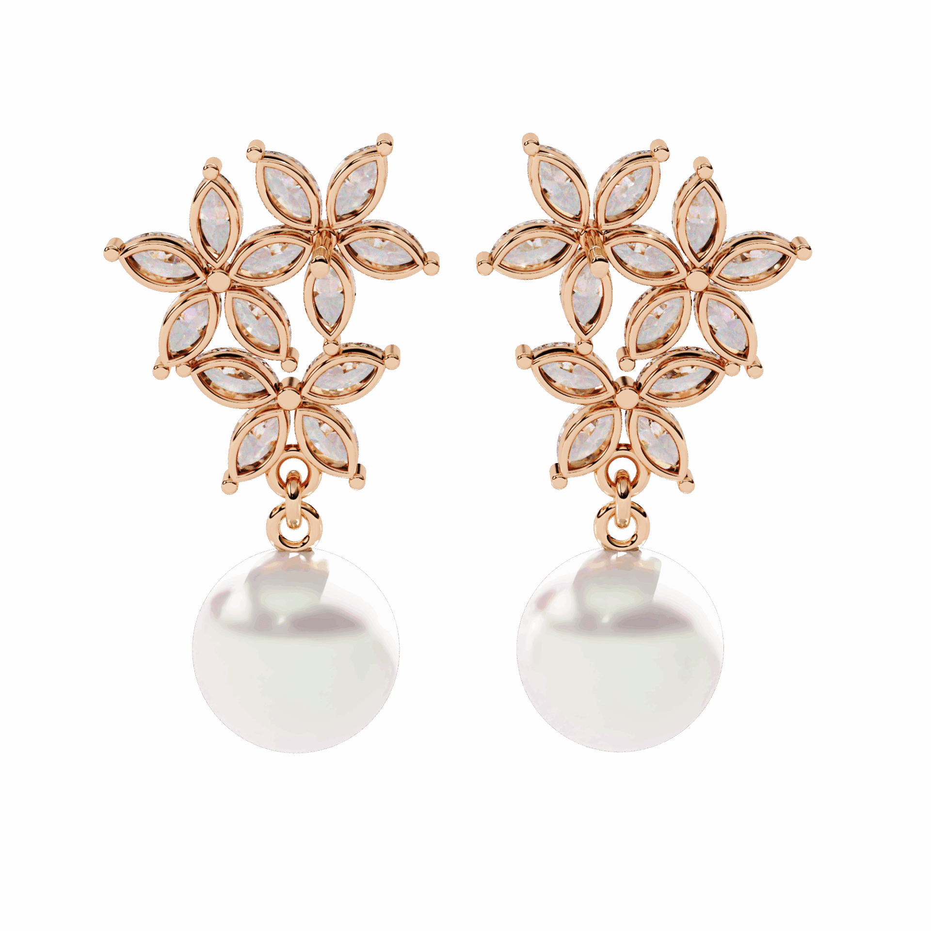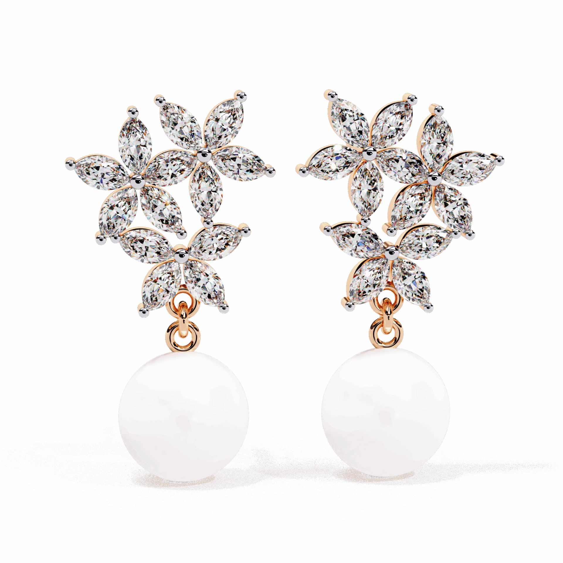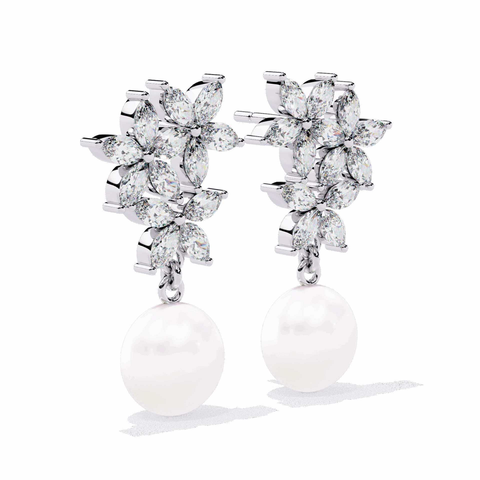 26 marquise-cut lab-grown diamonds totaling 2.39 carats arranged like petals in an elegant dangle design. The boat-shaped stones create an organic, floral effect – nature rendered in sparkle.