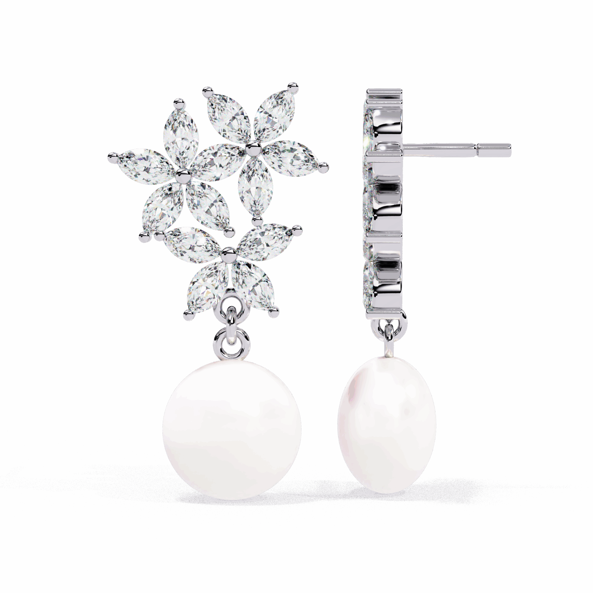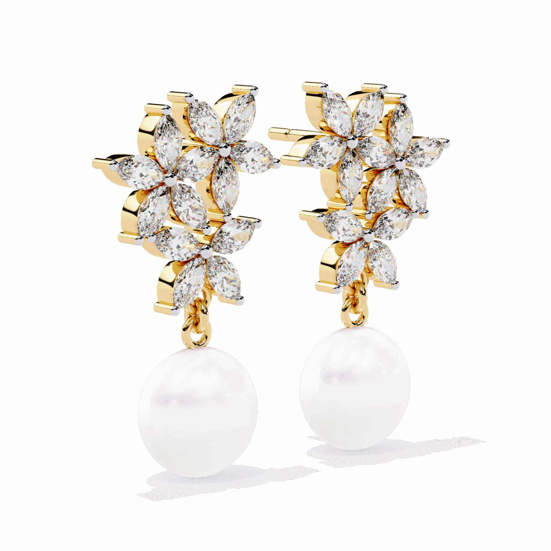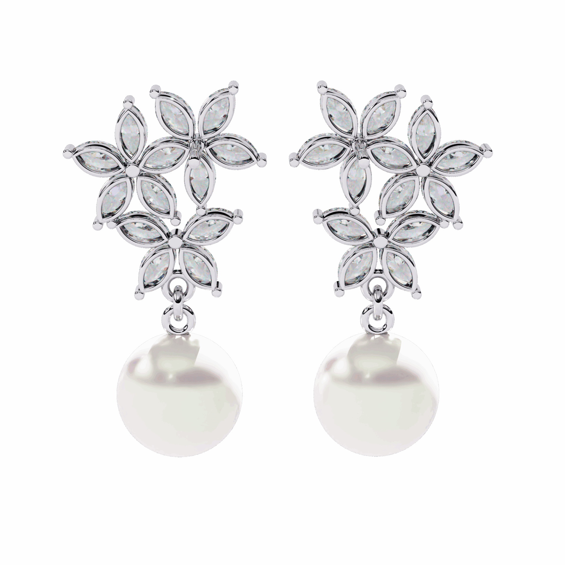 26 marquise-cut lab-grown diamonds totaling 2.39 carats arranged like petals in an elegant dangle design. The boat-shaped stones create an organic, floral effect – nature rendered in sparkle.