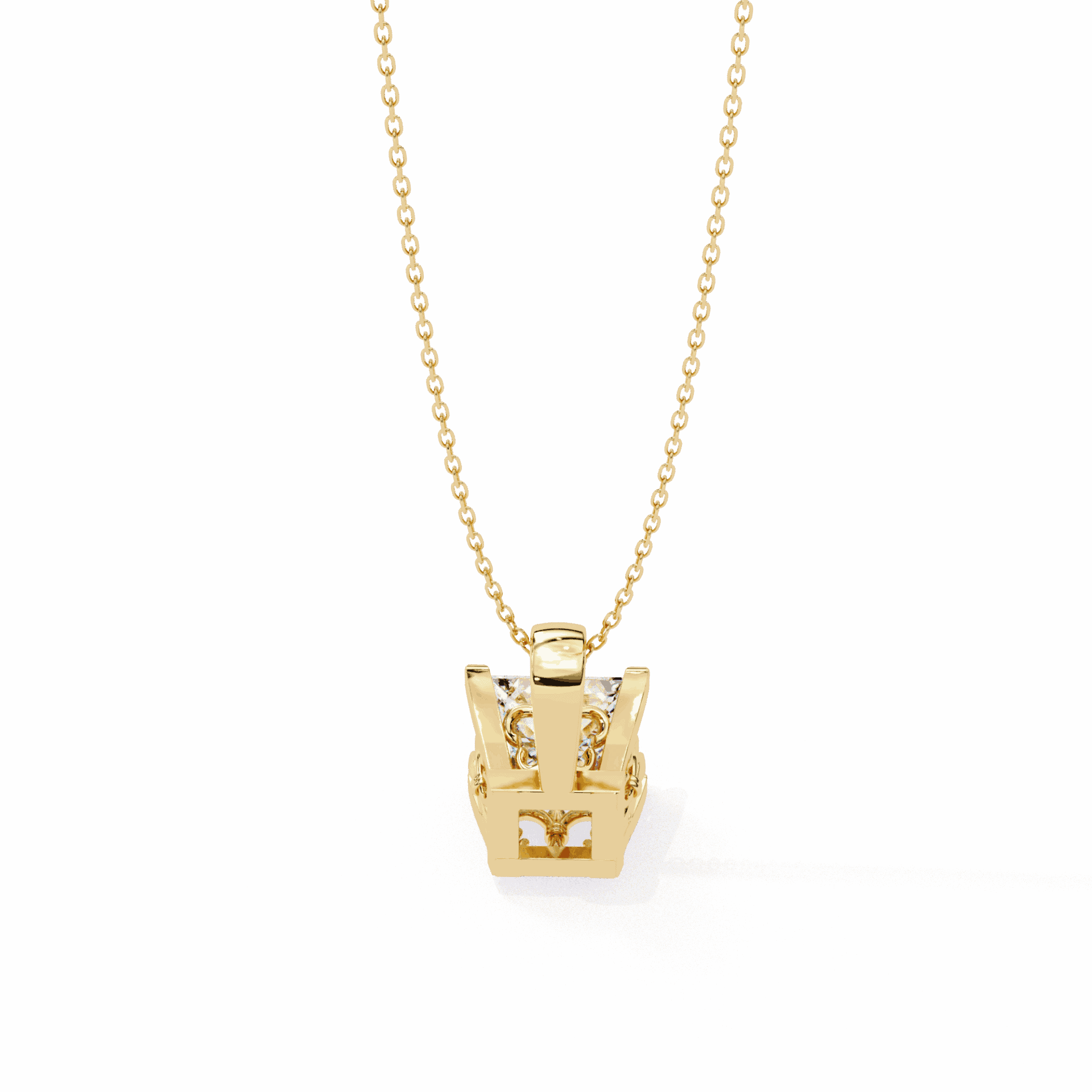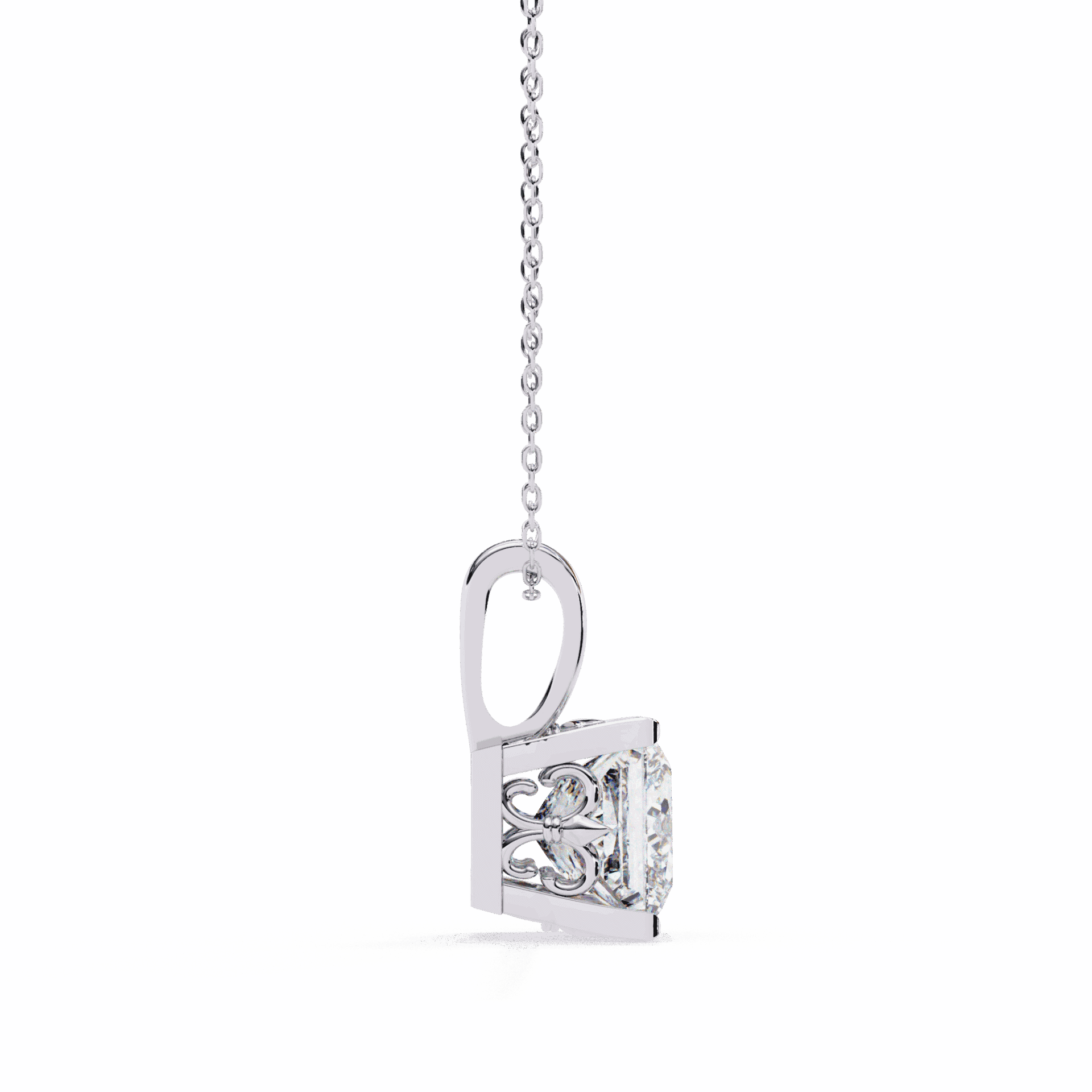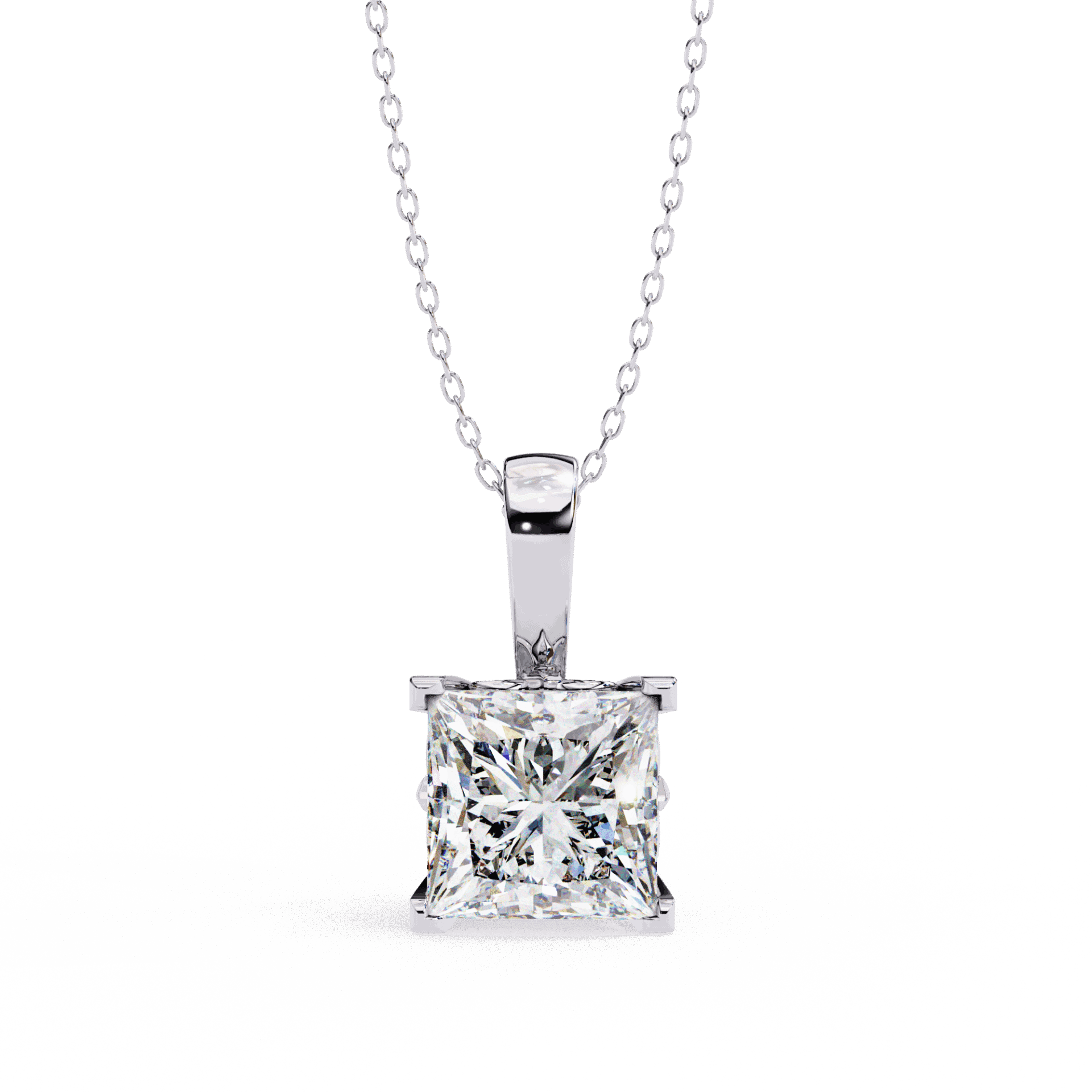 A single 2.62-carat princess-cut lab-grown diamond suspended for pure, symmetrical brilliance. The princess cut maximizes sparkle within a square shape - modern geometry with old-school fire.