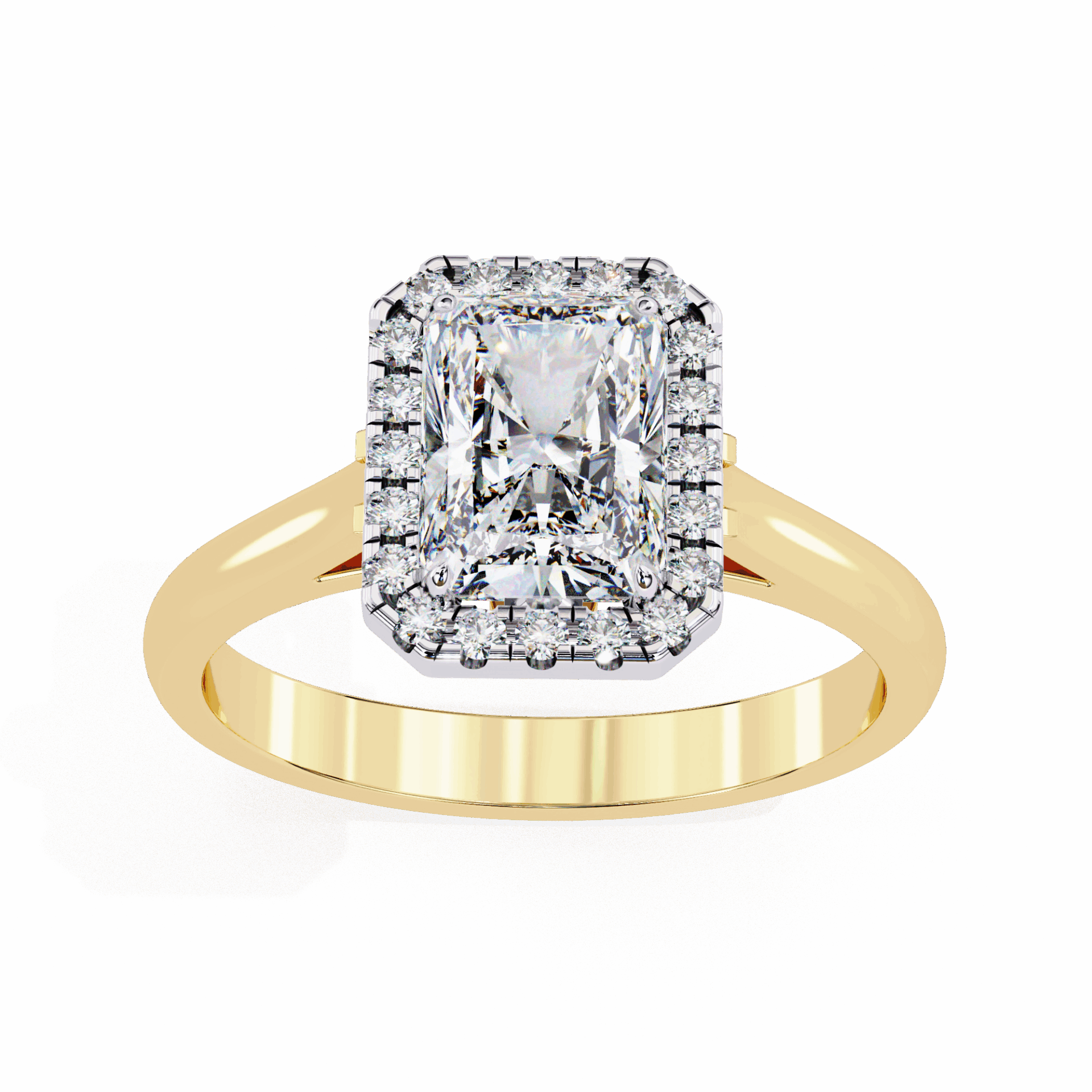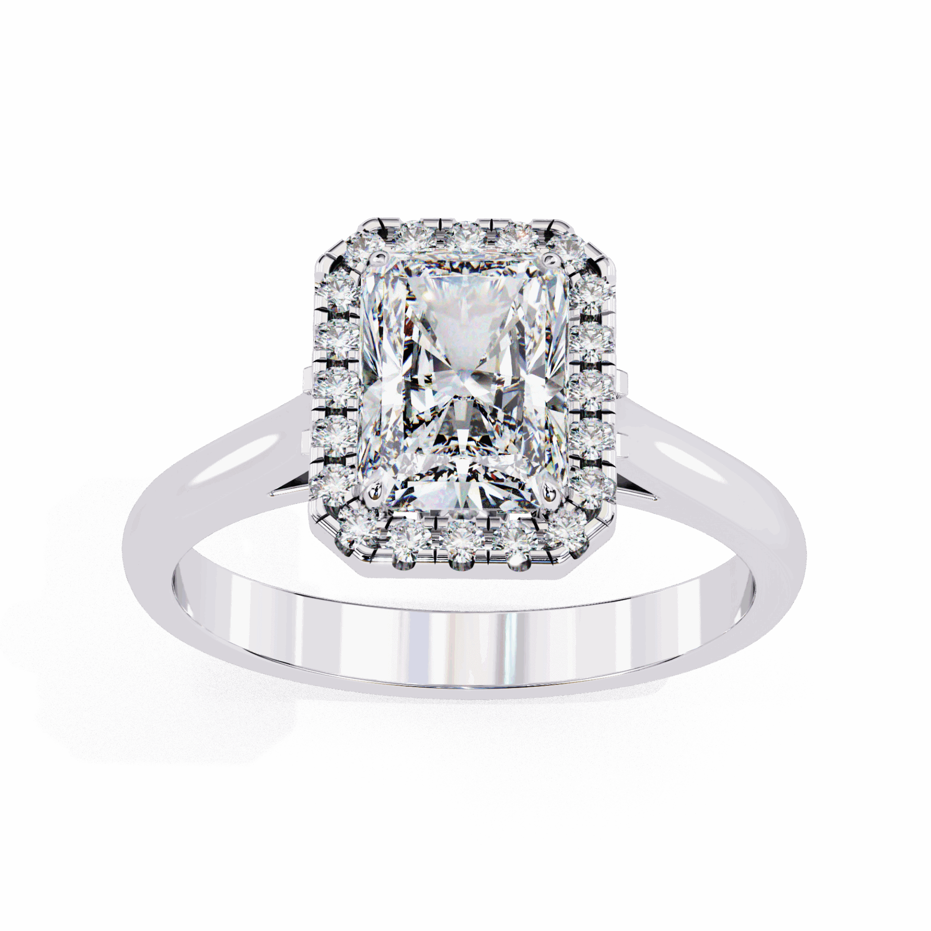 A radiant-cut lab-grown diamond with 27 accent diamonds totaling 2.51 carats. Rectangular brilliance in the Heritage setting.