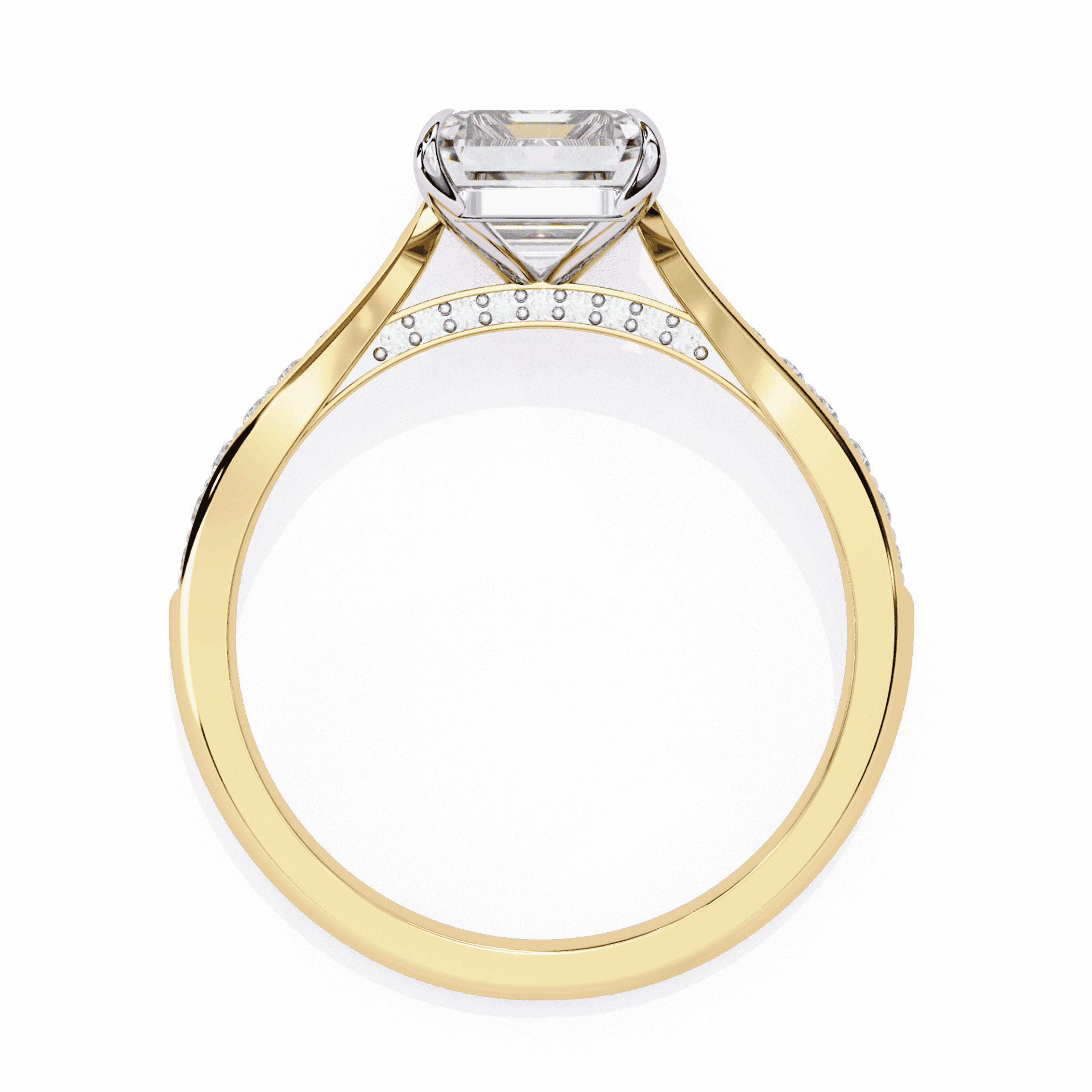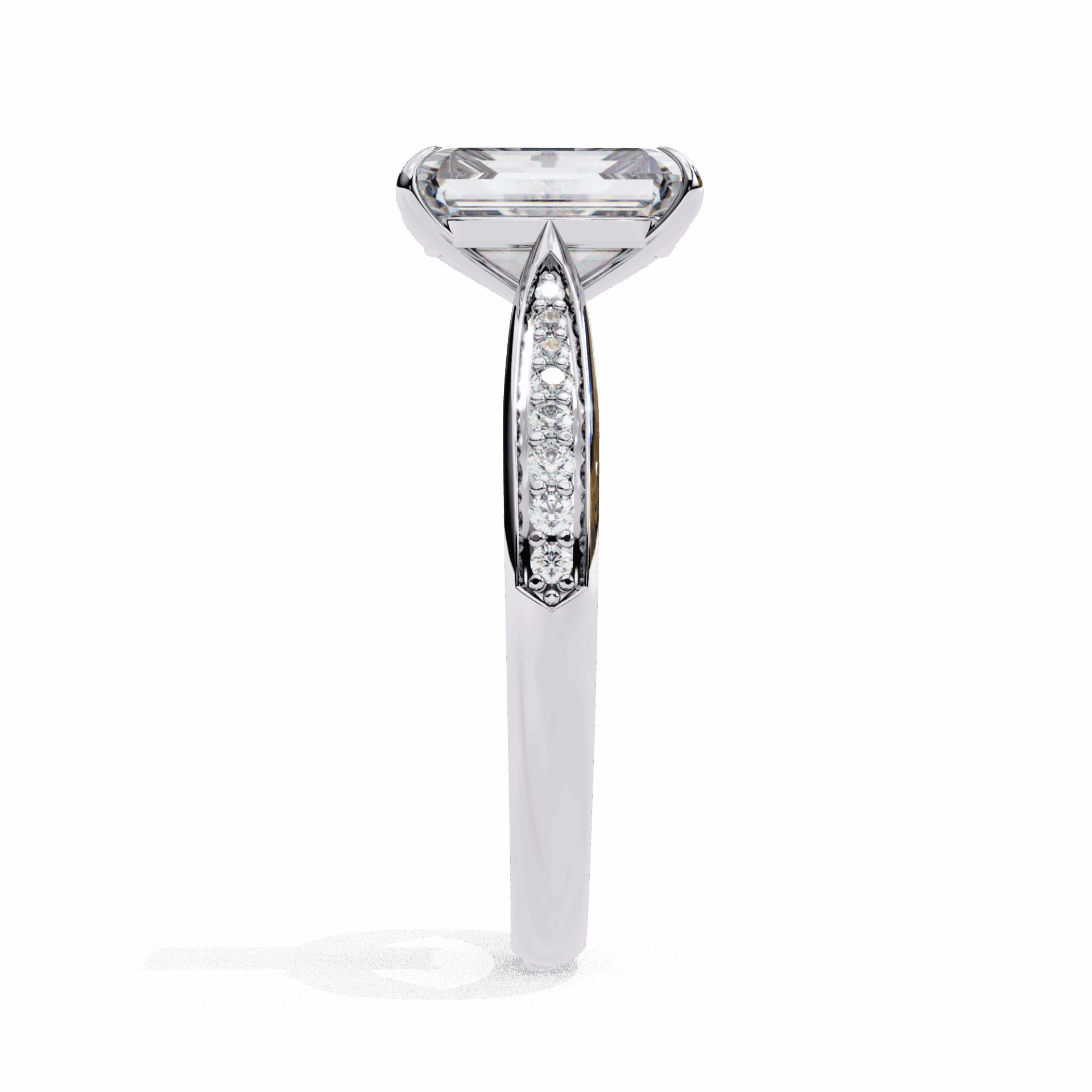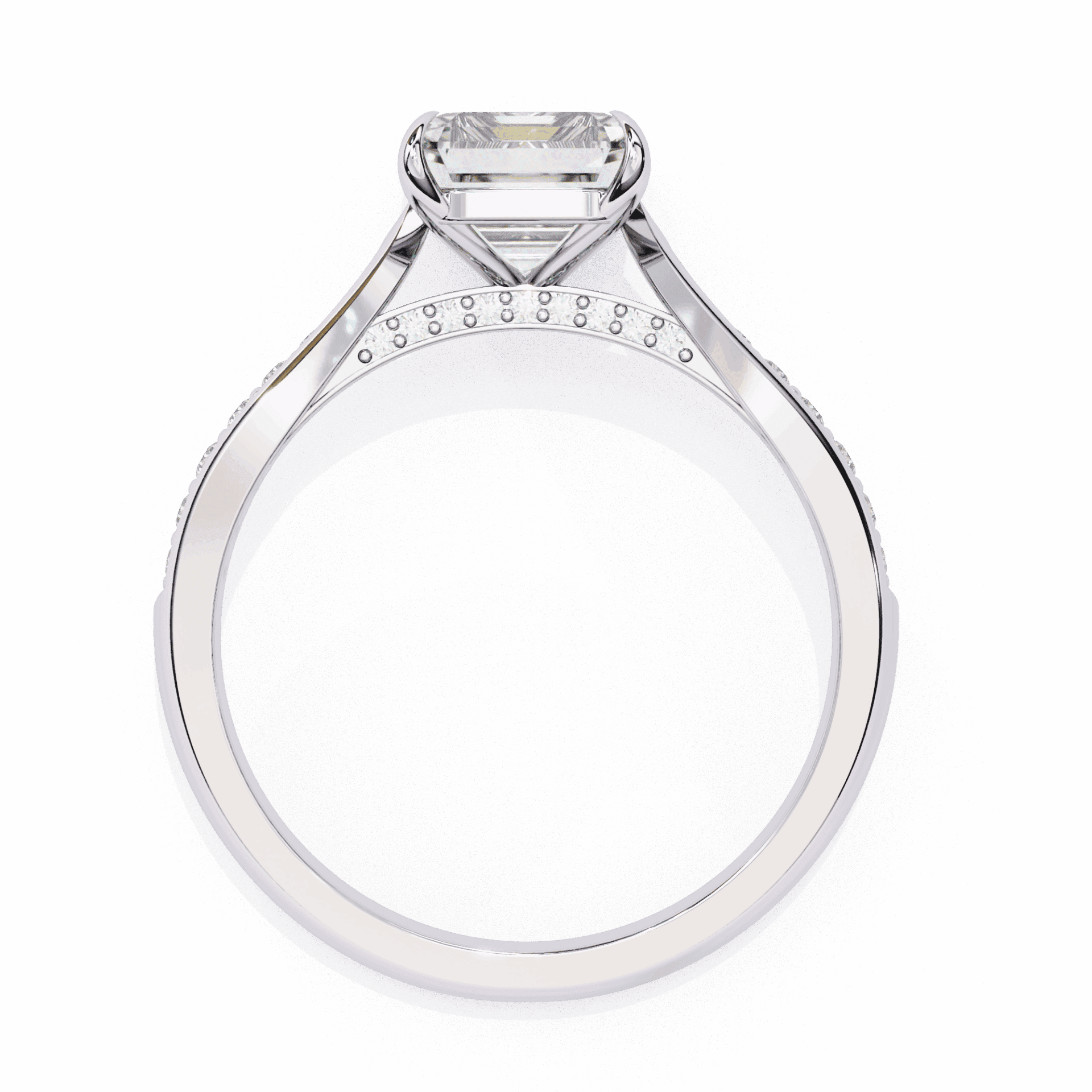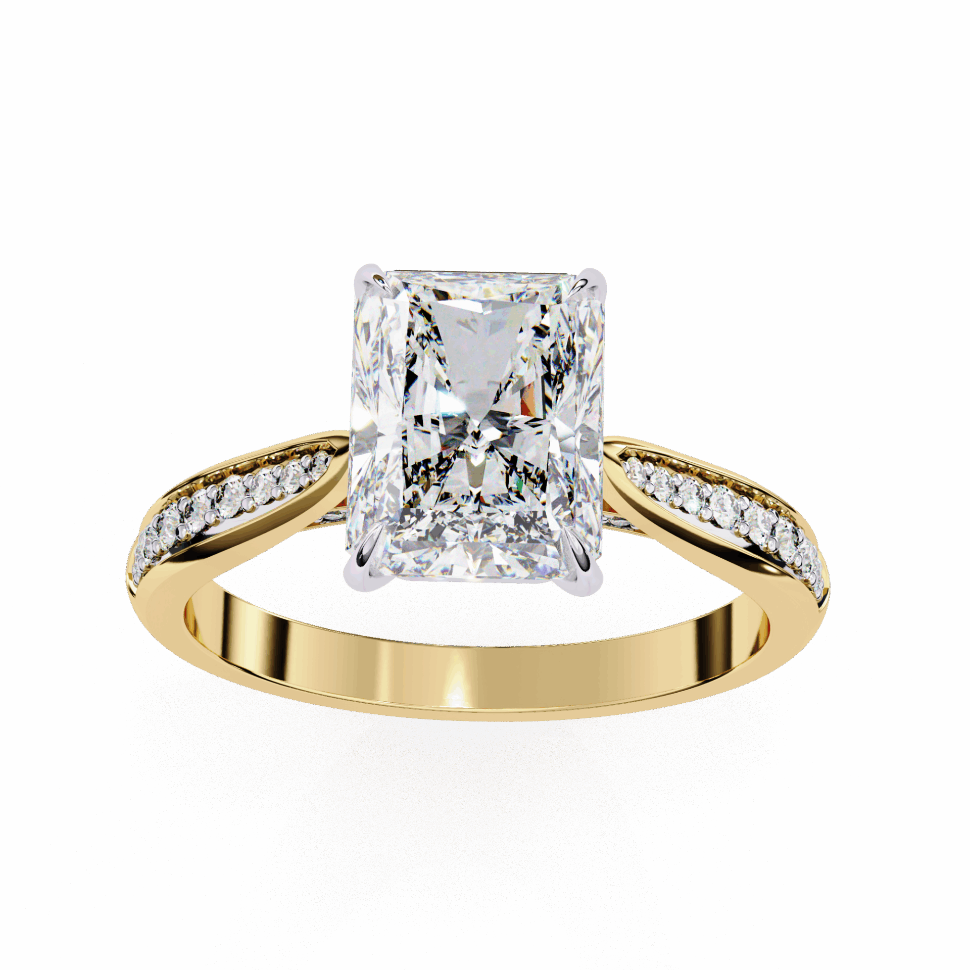 A radiant-cut lab-grown diamond with 35 accent diamonds totaling 2.62 carats. Rectangular brilliance in the True Love setting.
