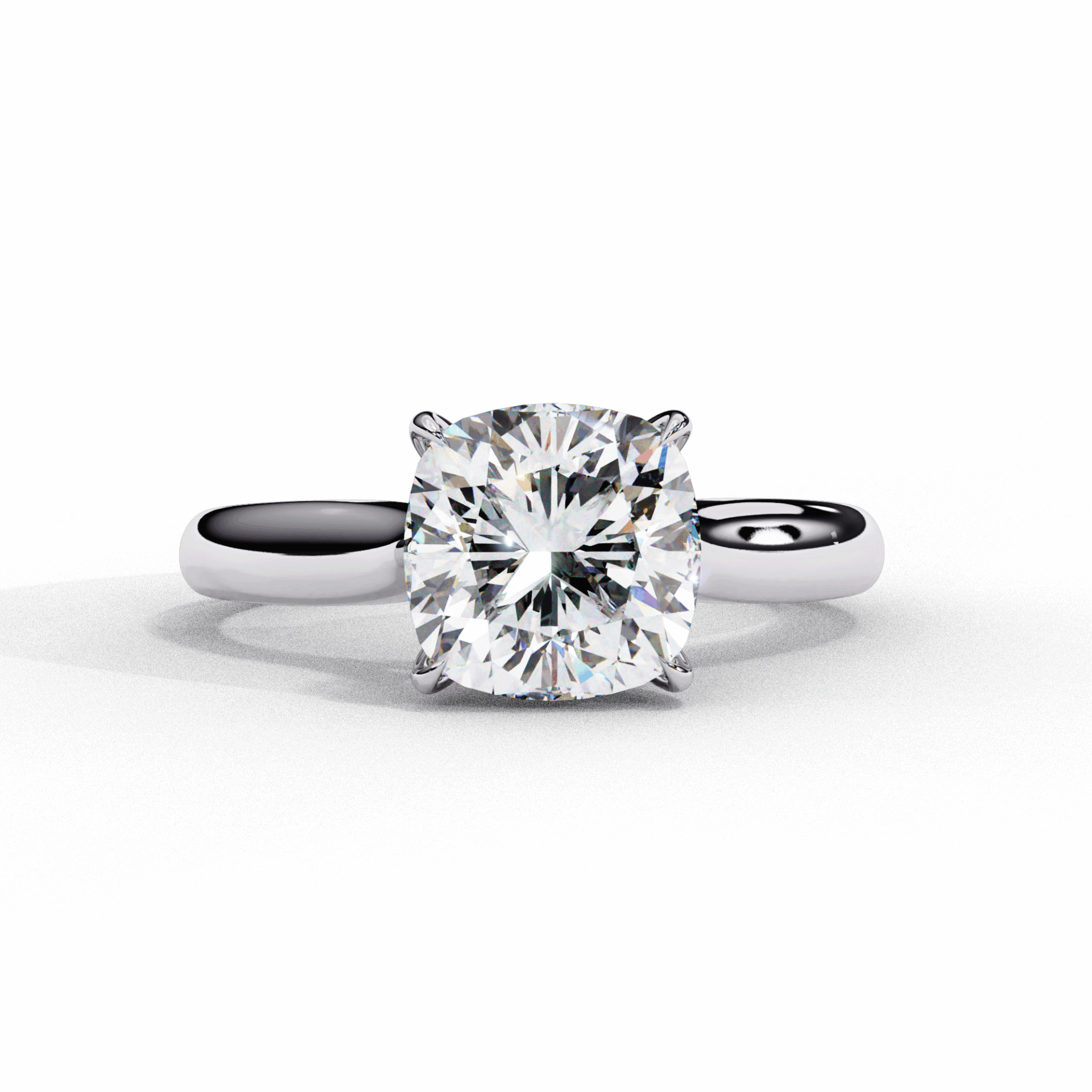 The true solitaire - one diamond, maximum impact. The cushion cut adds romantic charm to classic simplicity.