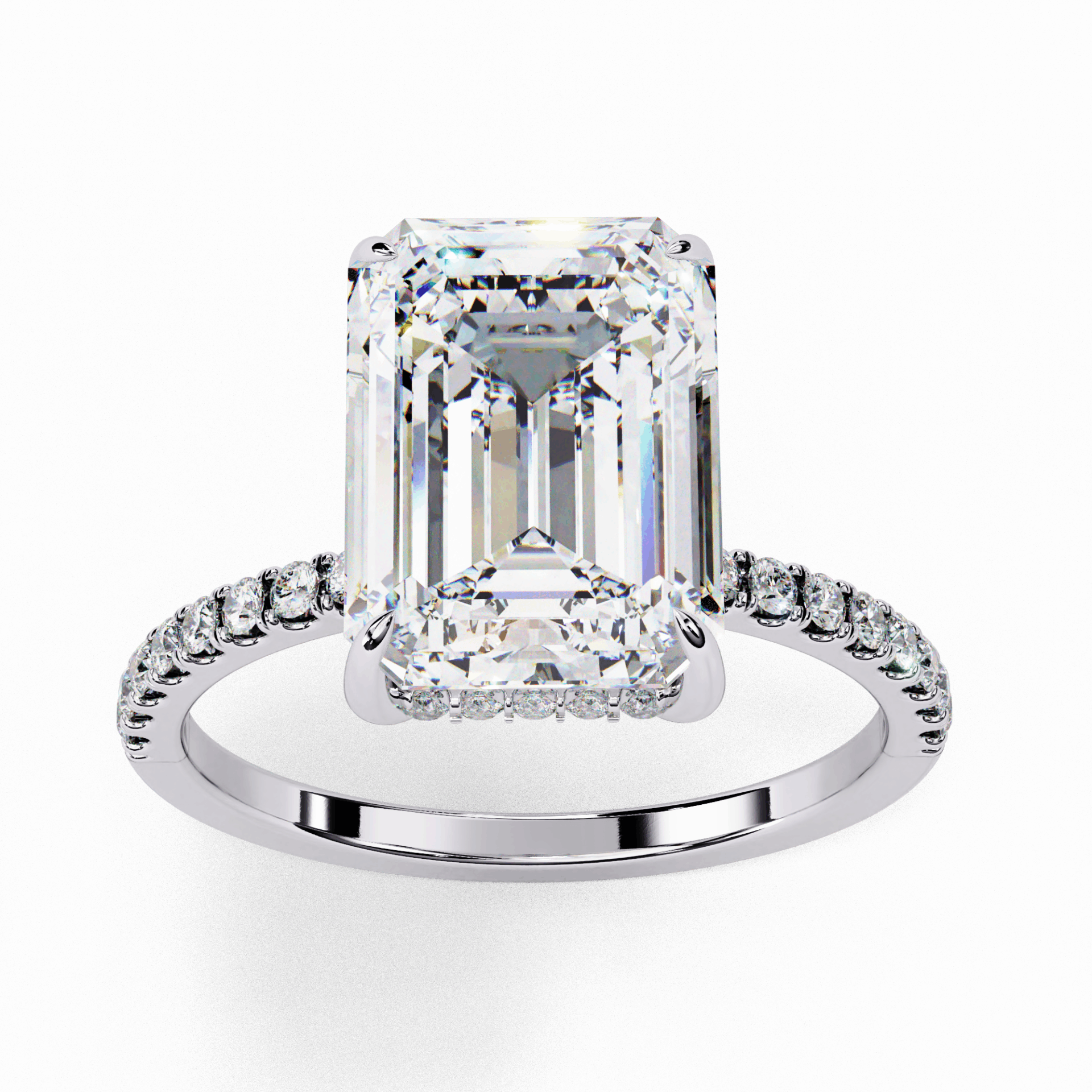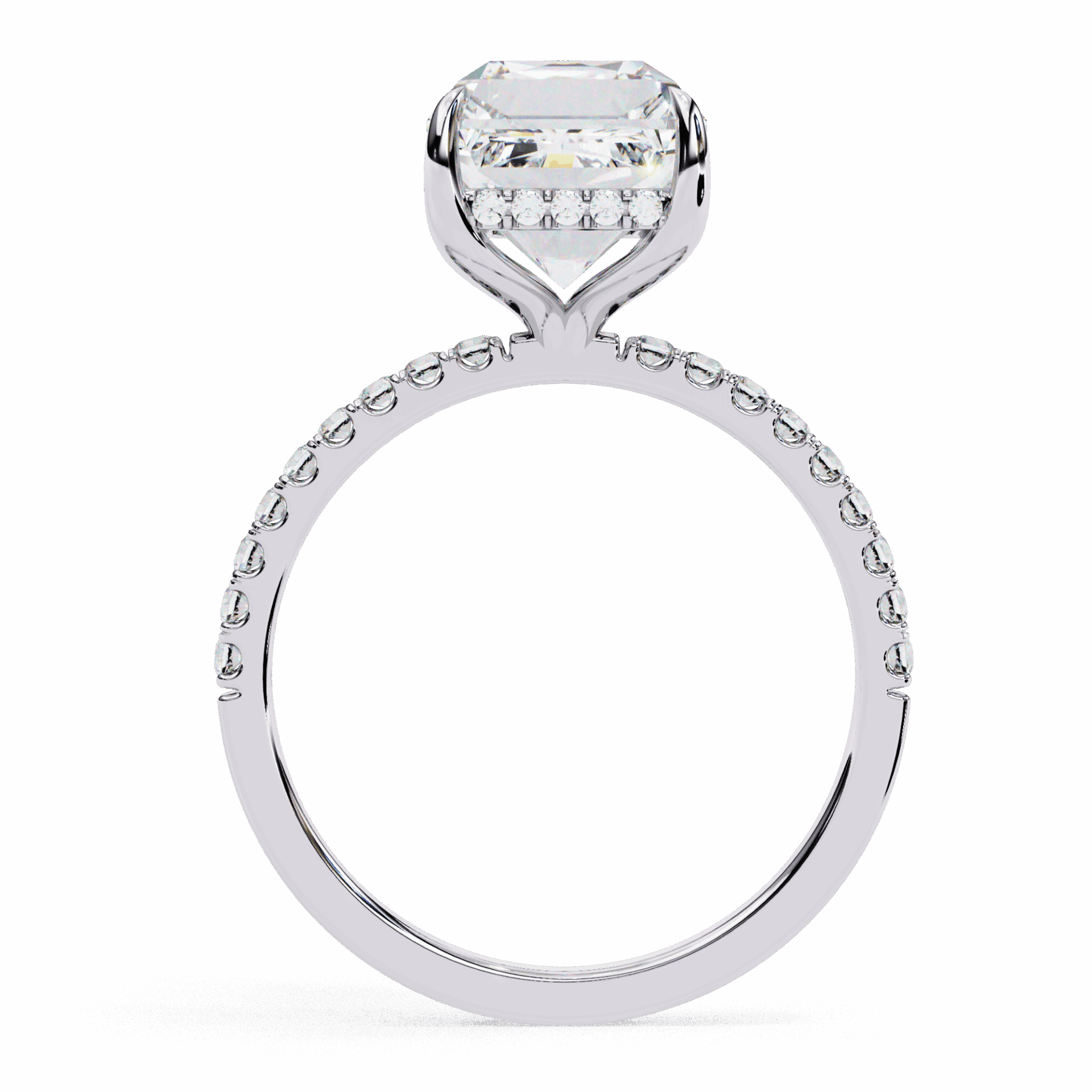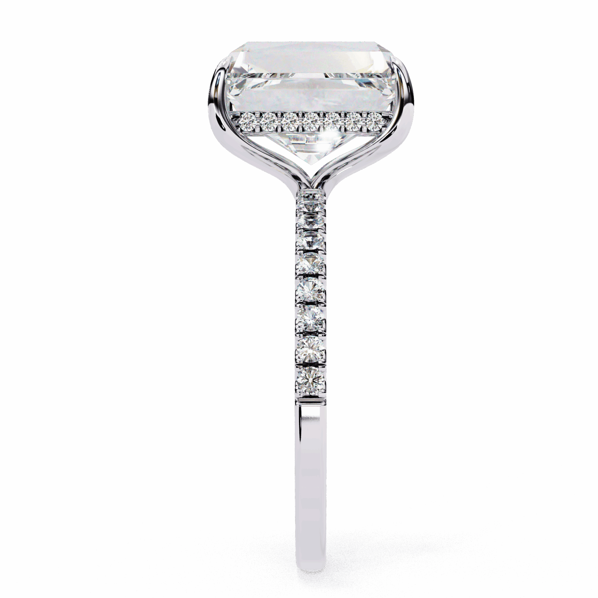 An emerald-cut lab-grown diamond with 35 accent diamonds totaling 2.8 carats. Step-cut elegance in the Forevermore setting.