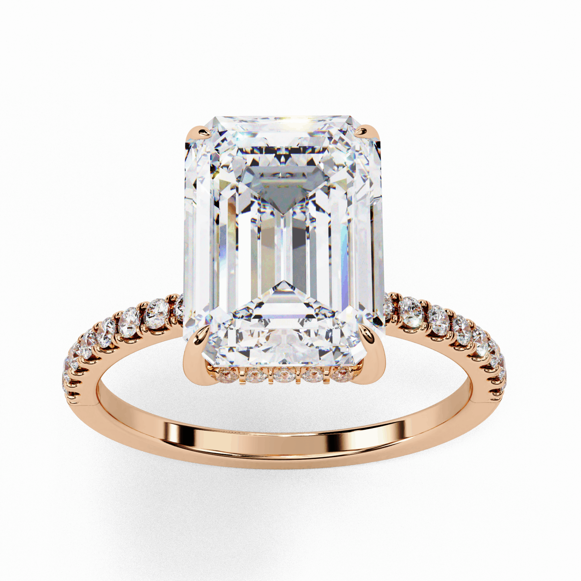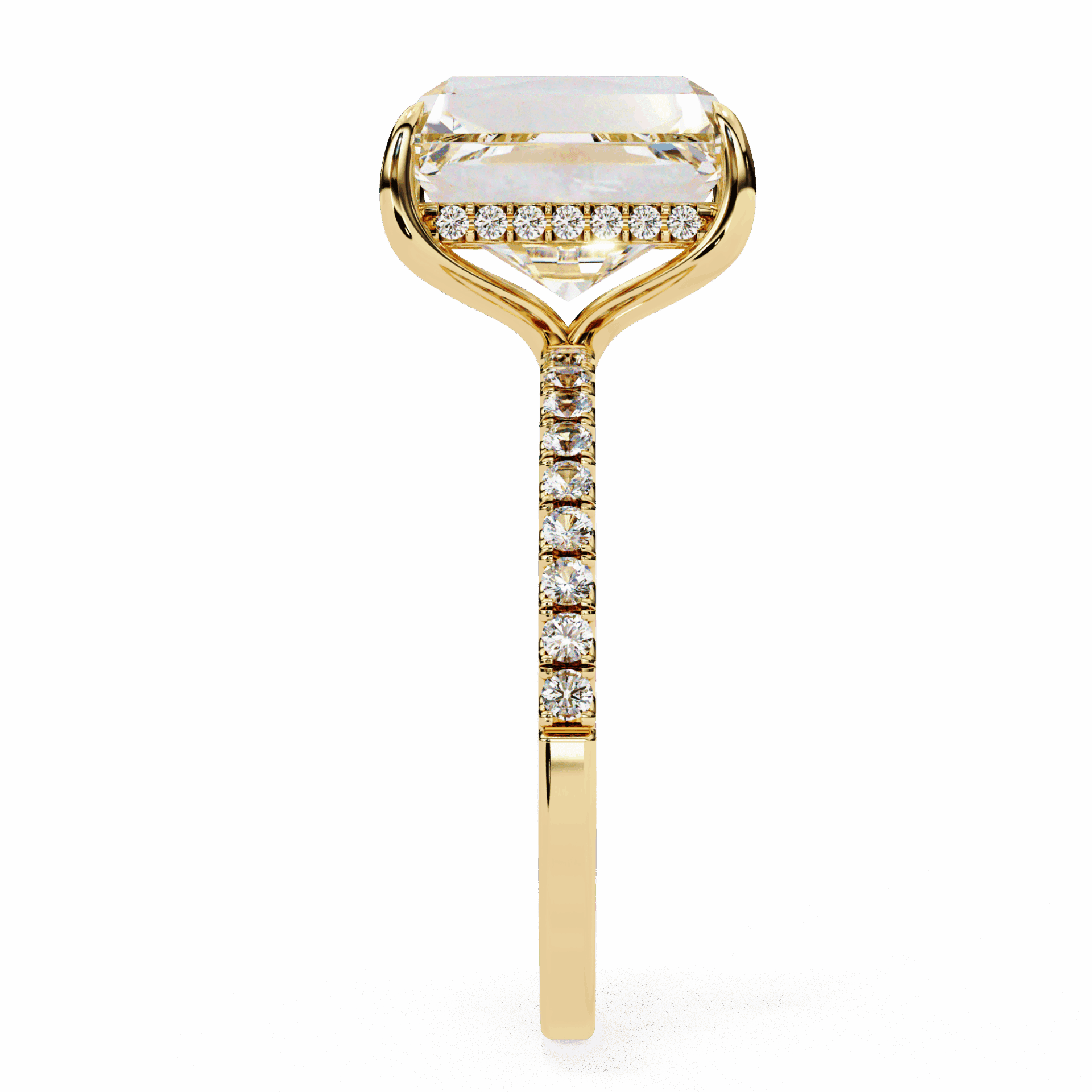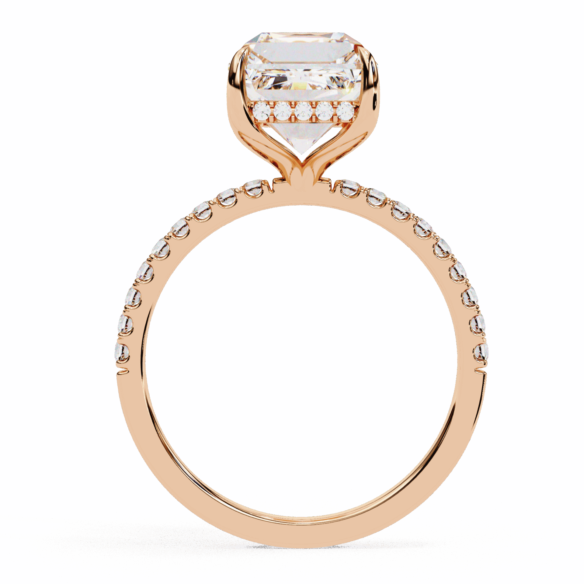 An emerald-cut lab-grown diamond with 35 accent diamonds totaling 2.8 carats. Step-cut elegance in the Forevermore setting.