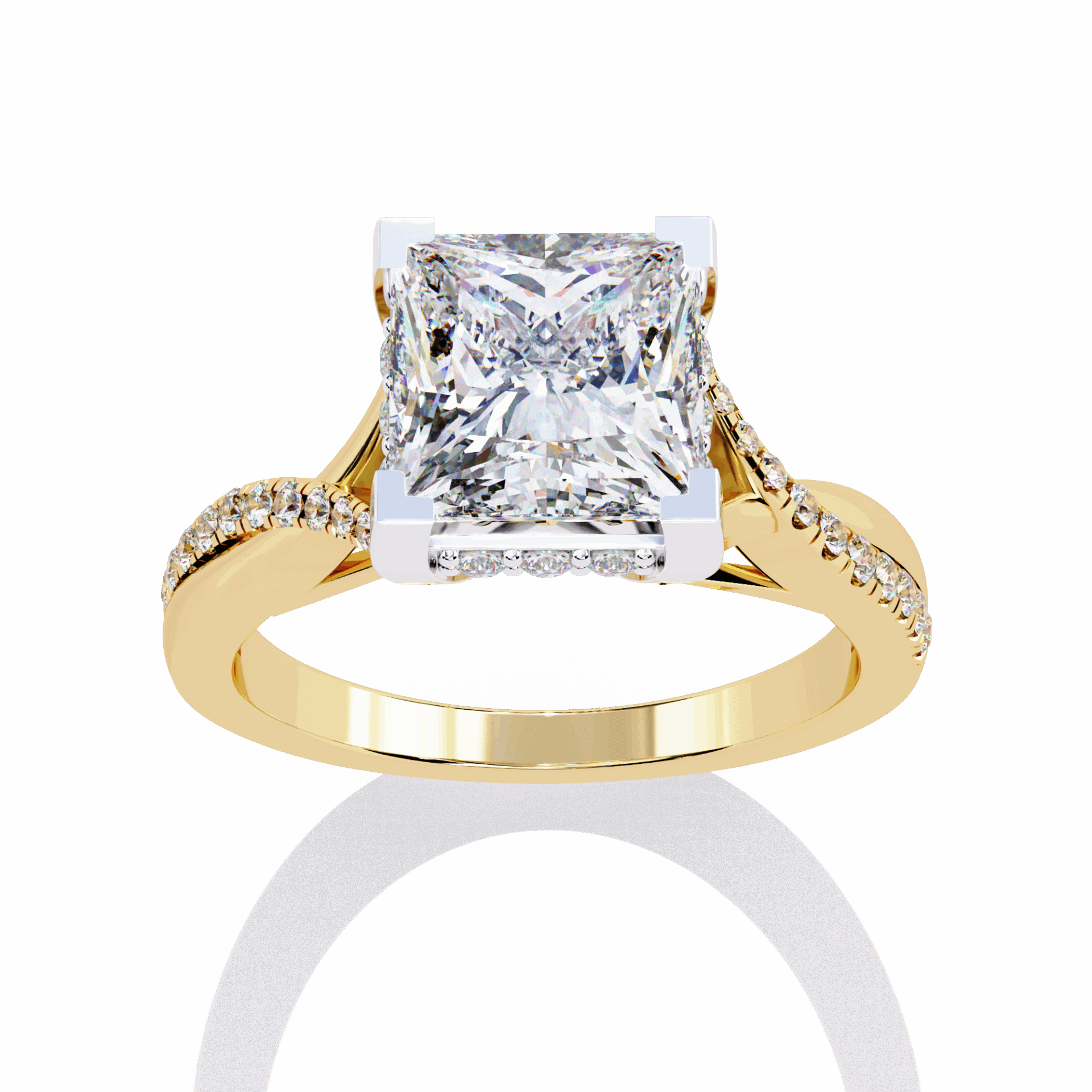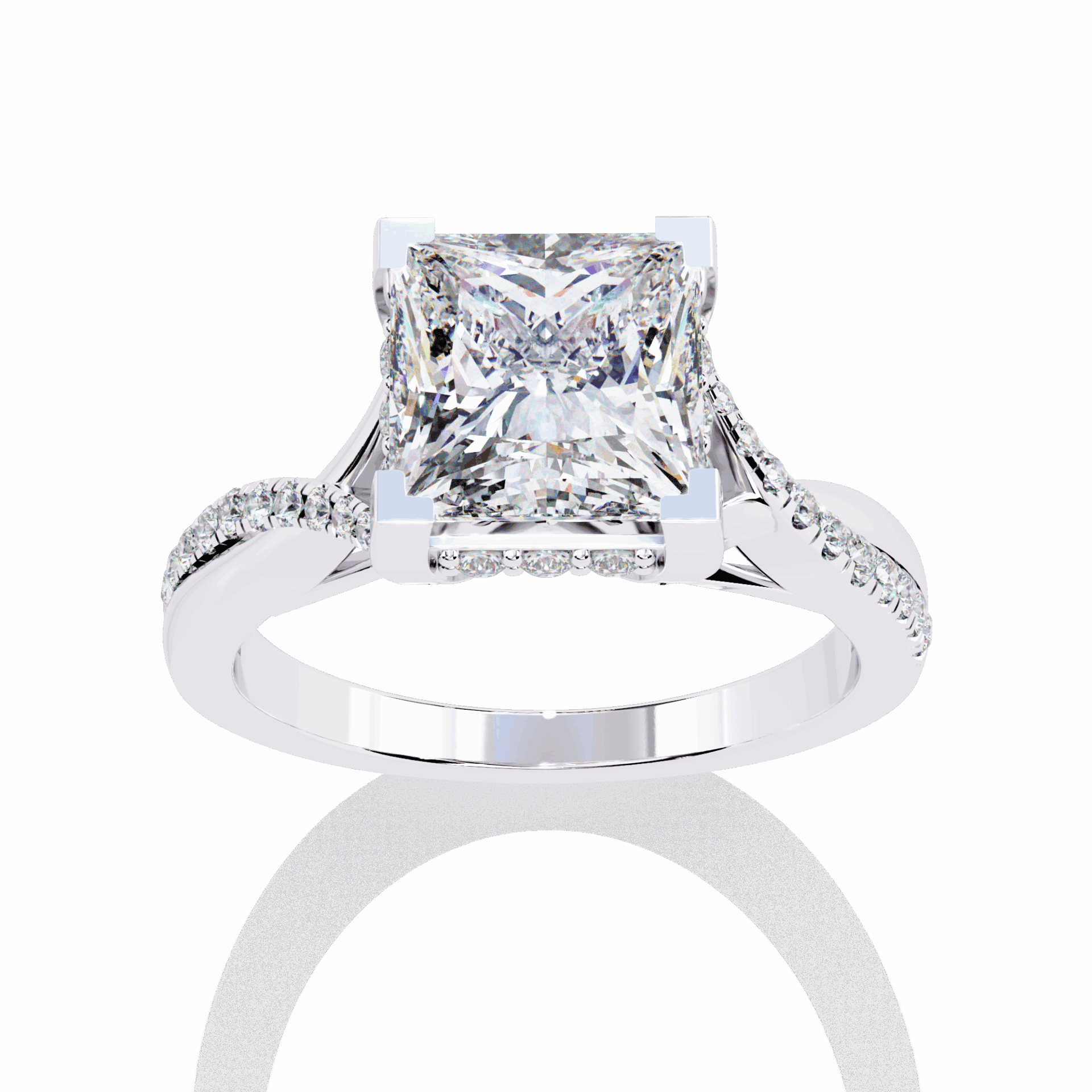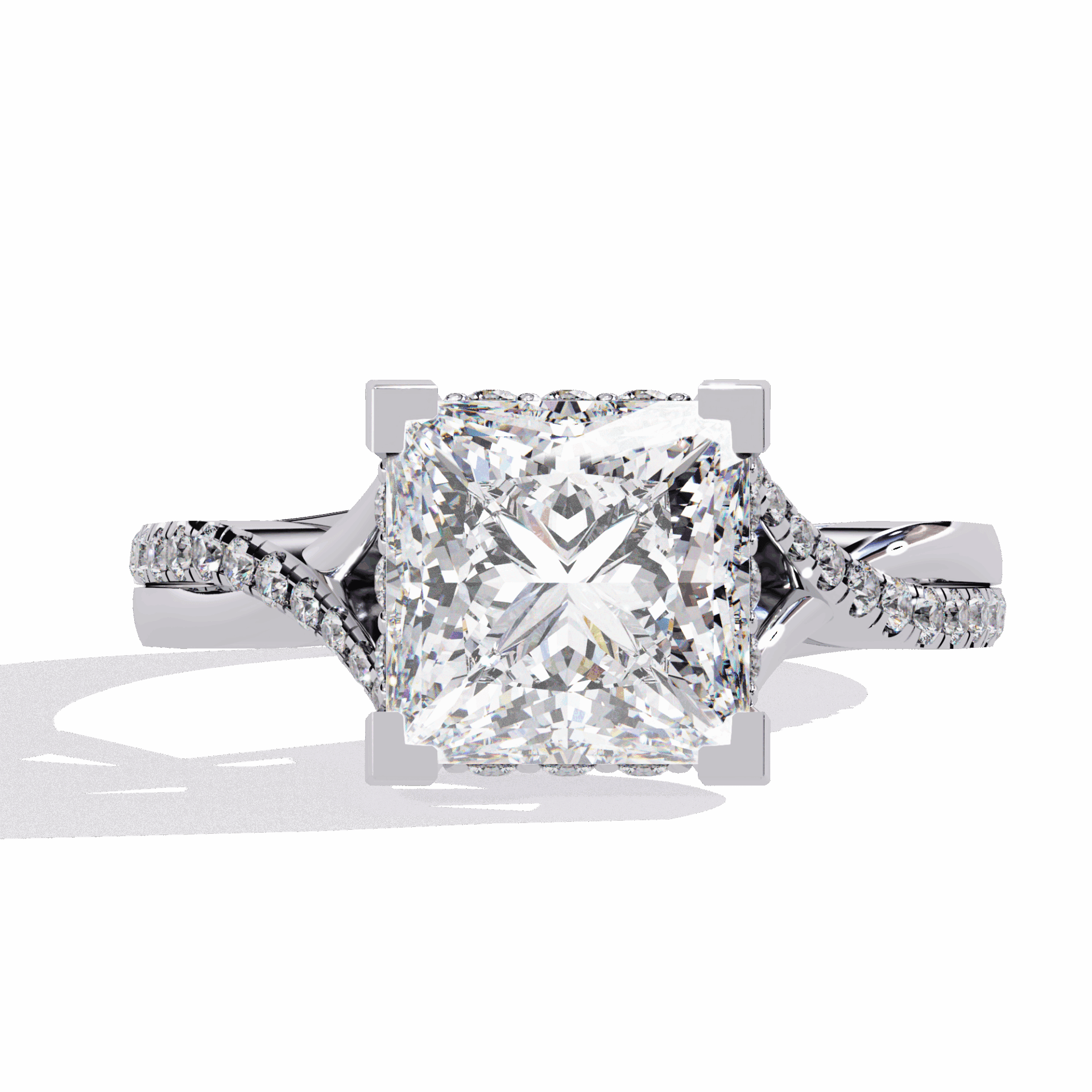 A princess-cut lab-grown diamond with 35 accent diamonds totaling 2.68 carats. Geometric fire in the Signature Wear design.