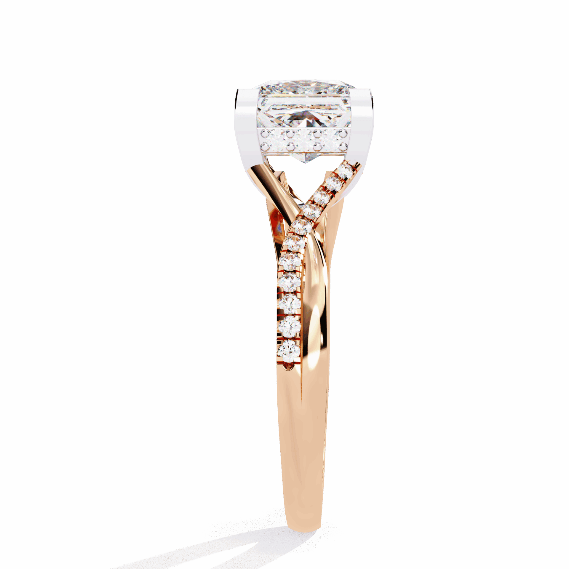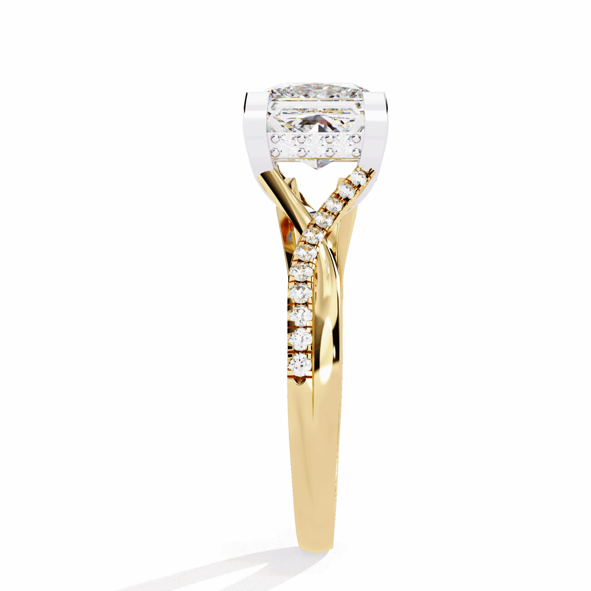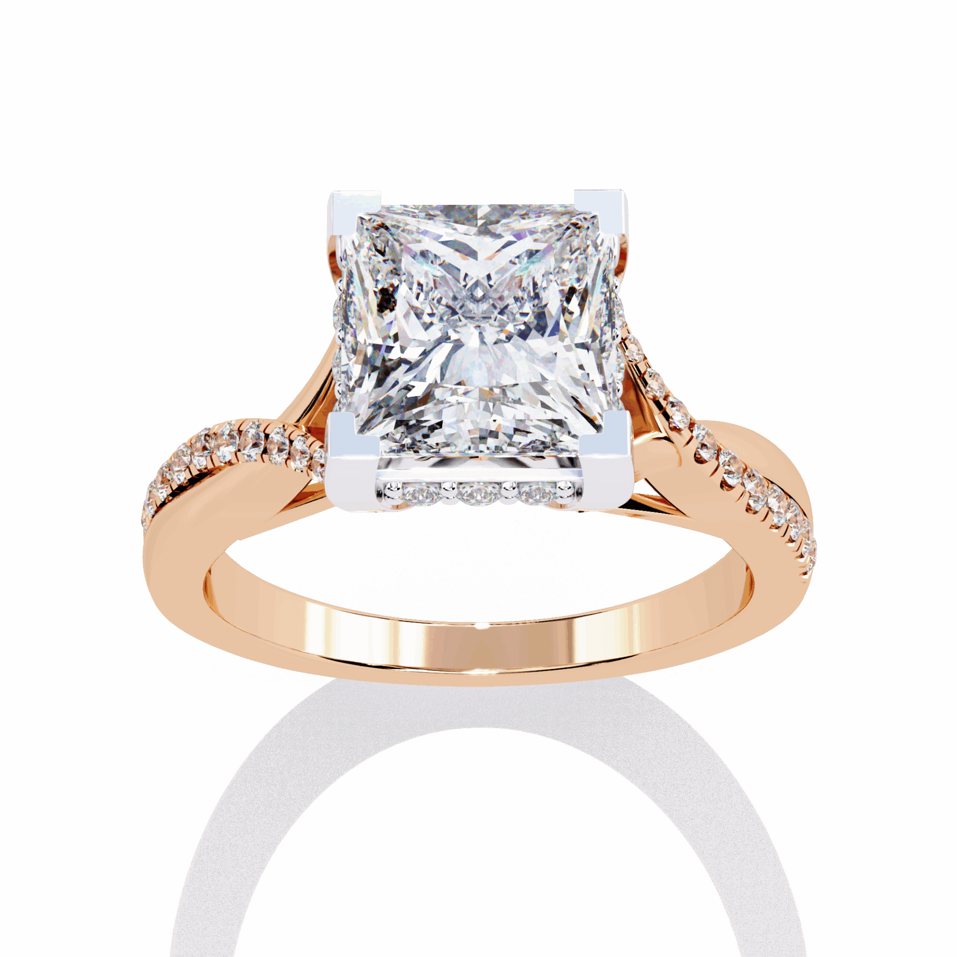 A princess-cut lab-grown diamond with 35 accent diamonds totaling 2.68 carats. Geometric fire in the Signature Wear design.