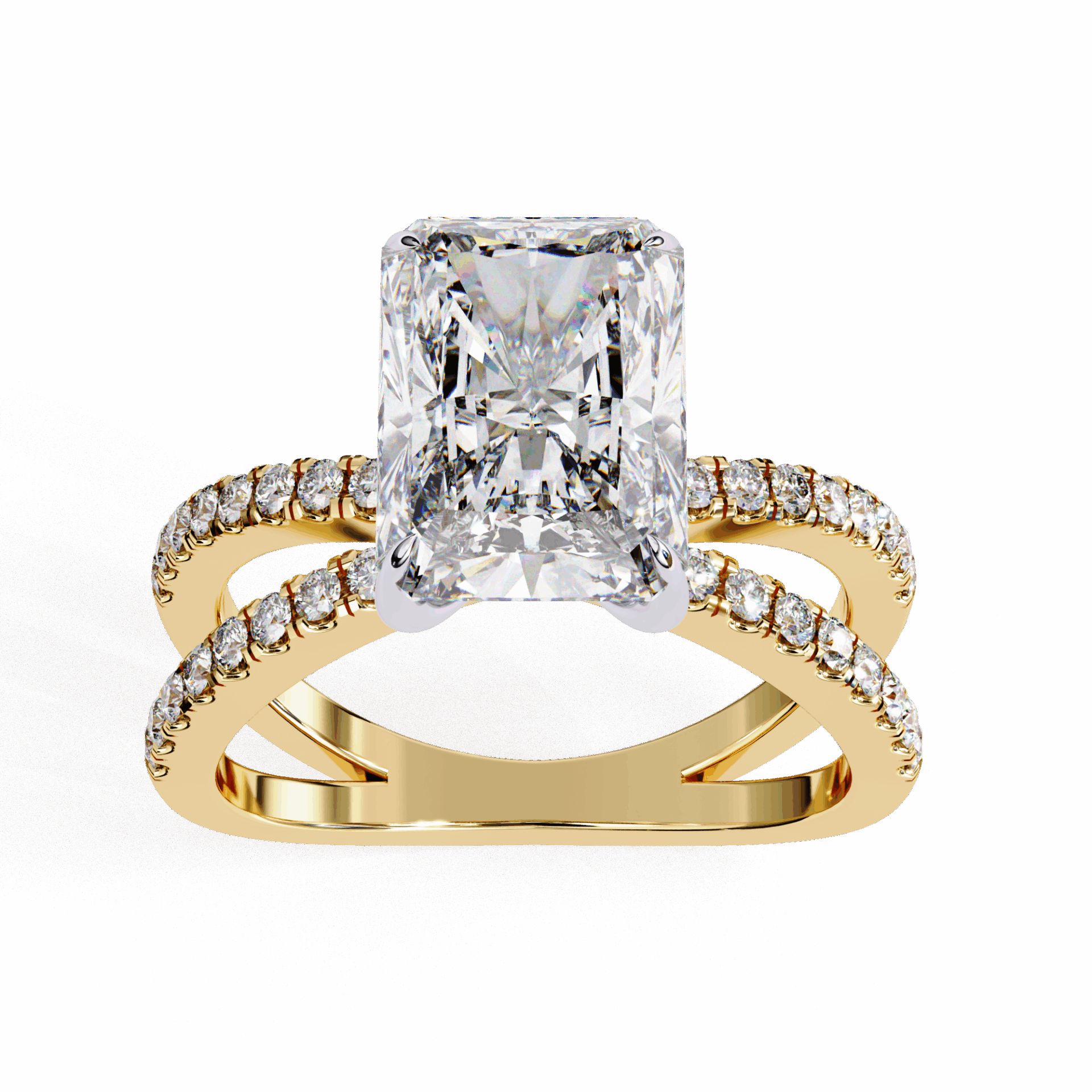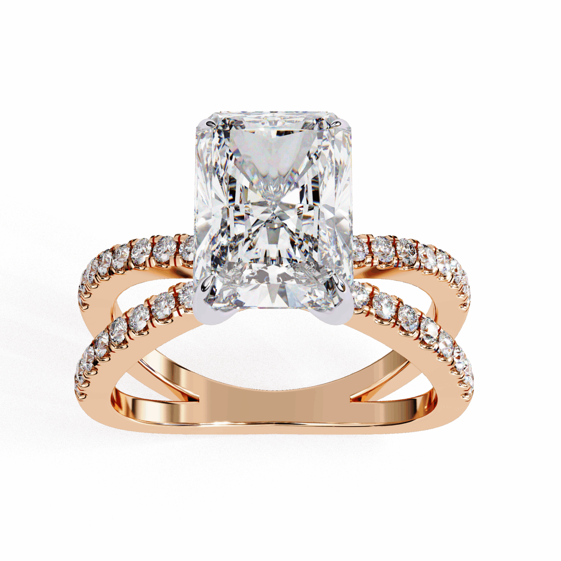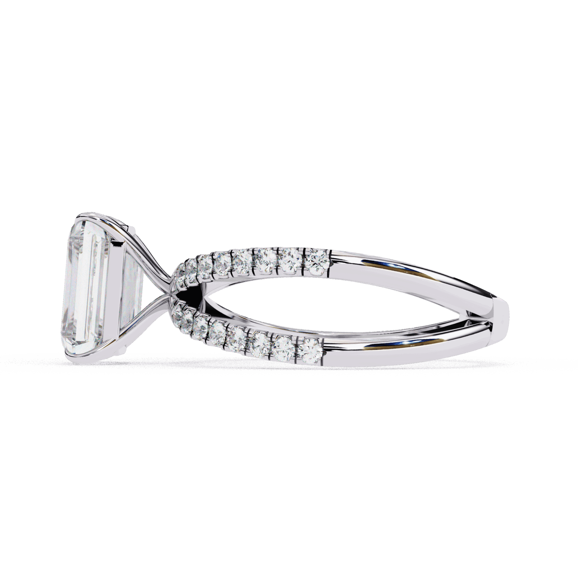 A radiant-cut lab-grown diamond with 33 accent diamonds totaling 2.79 carats. Geometric brilliance for modern commitment.