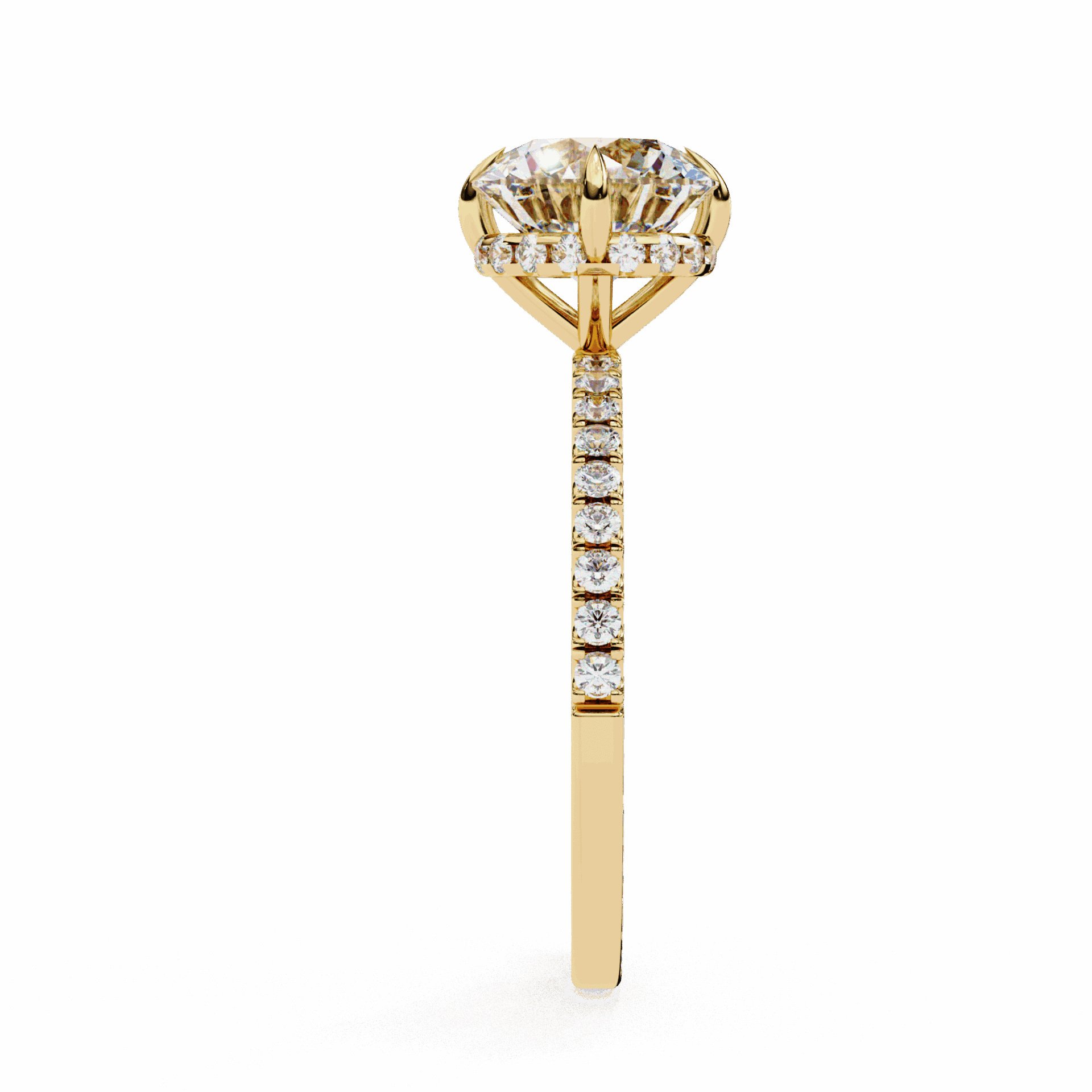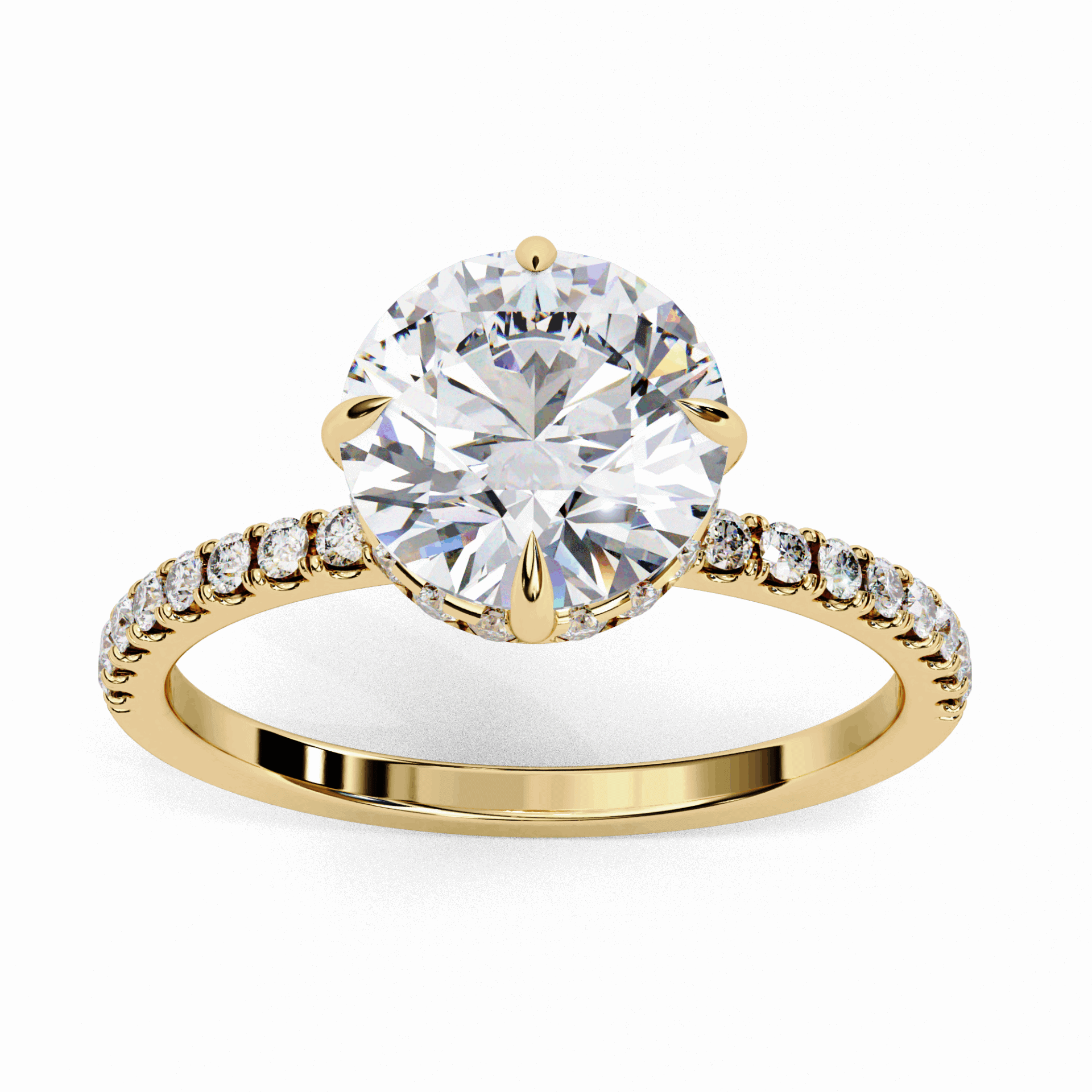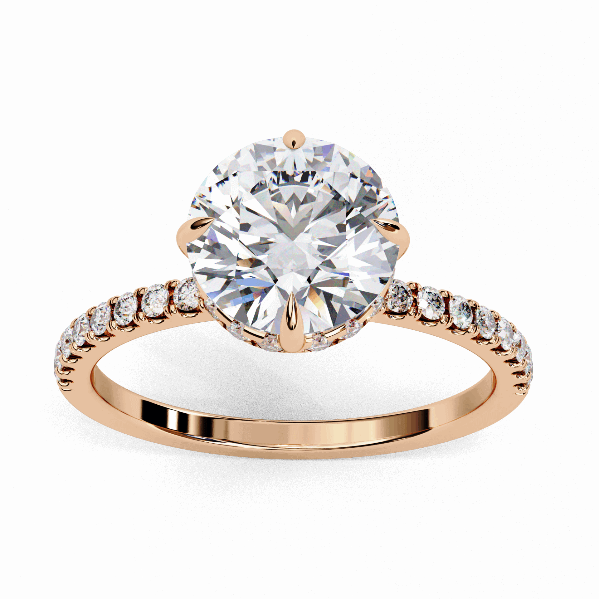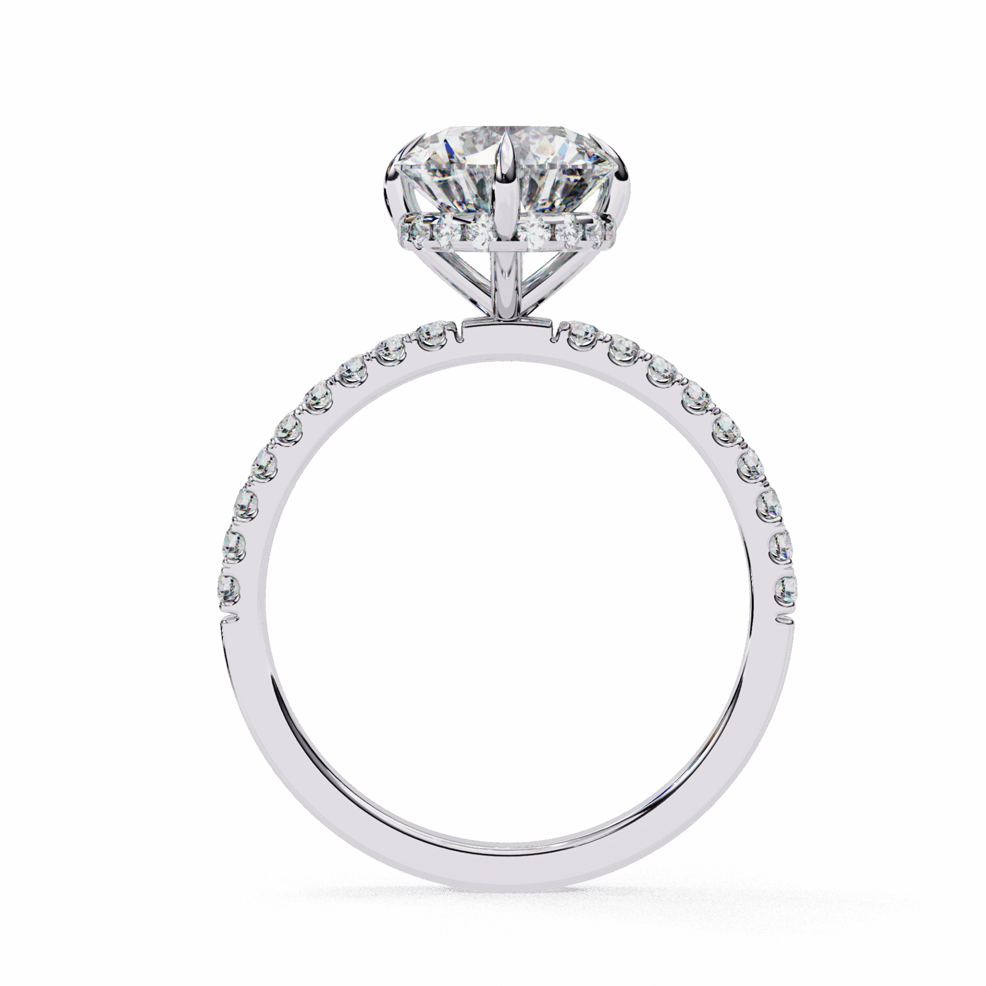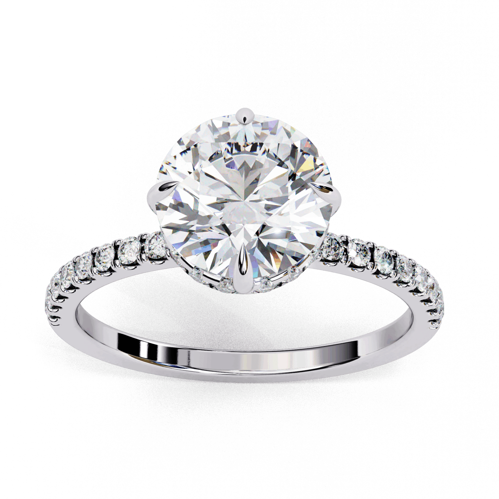 A round lab-grown diamond with 35 accent diamonds totaling 2.66 carats. Maximum brilliance in the Forevermore setting.