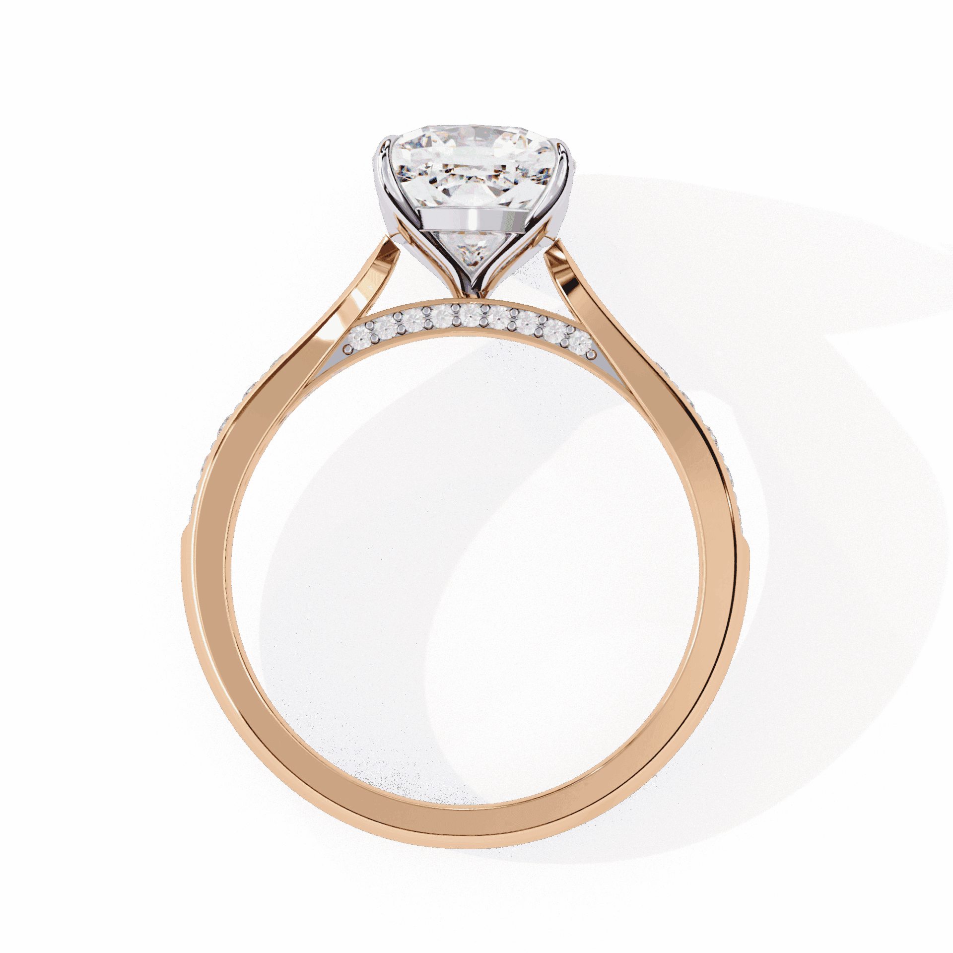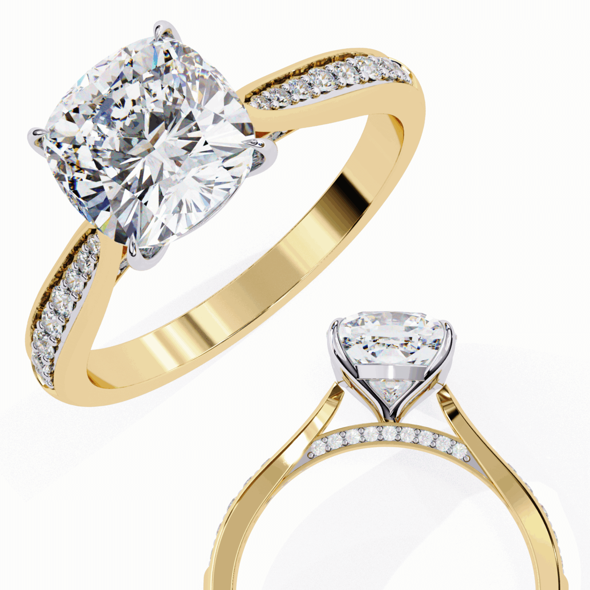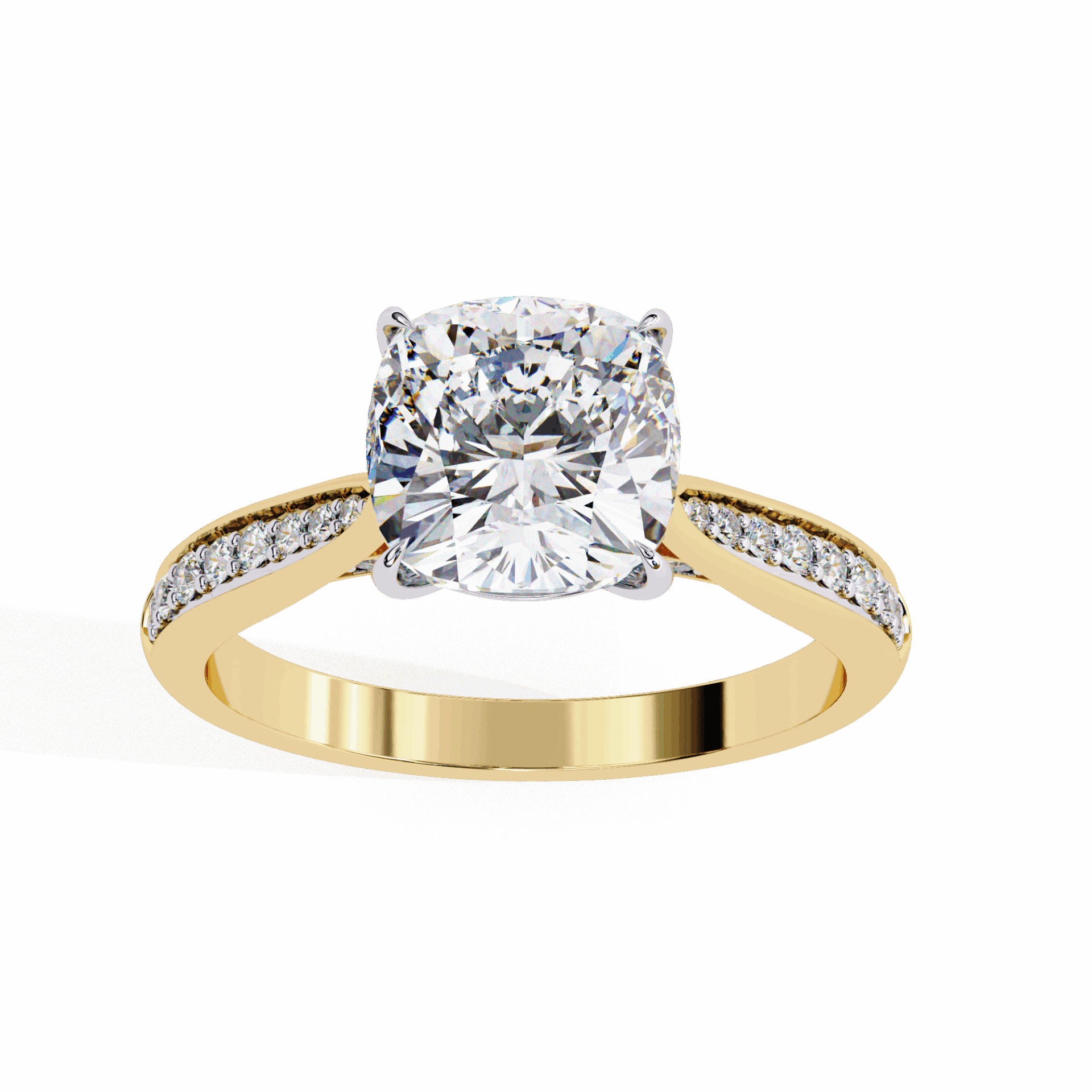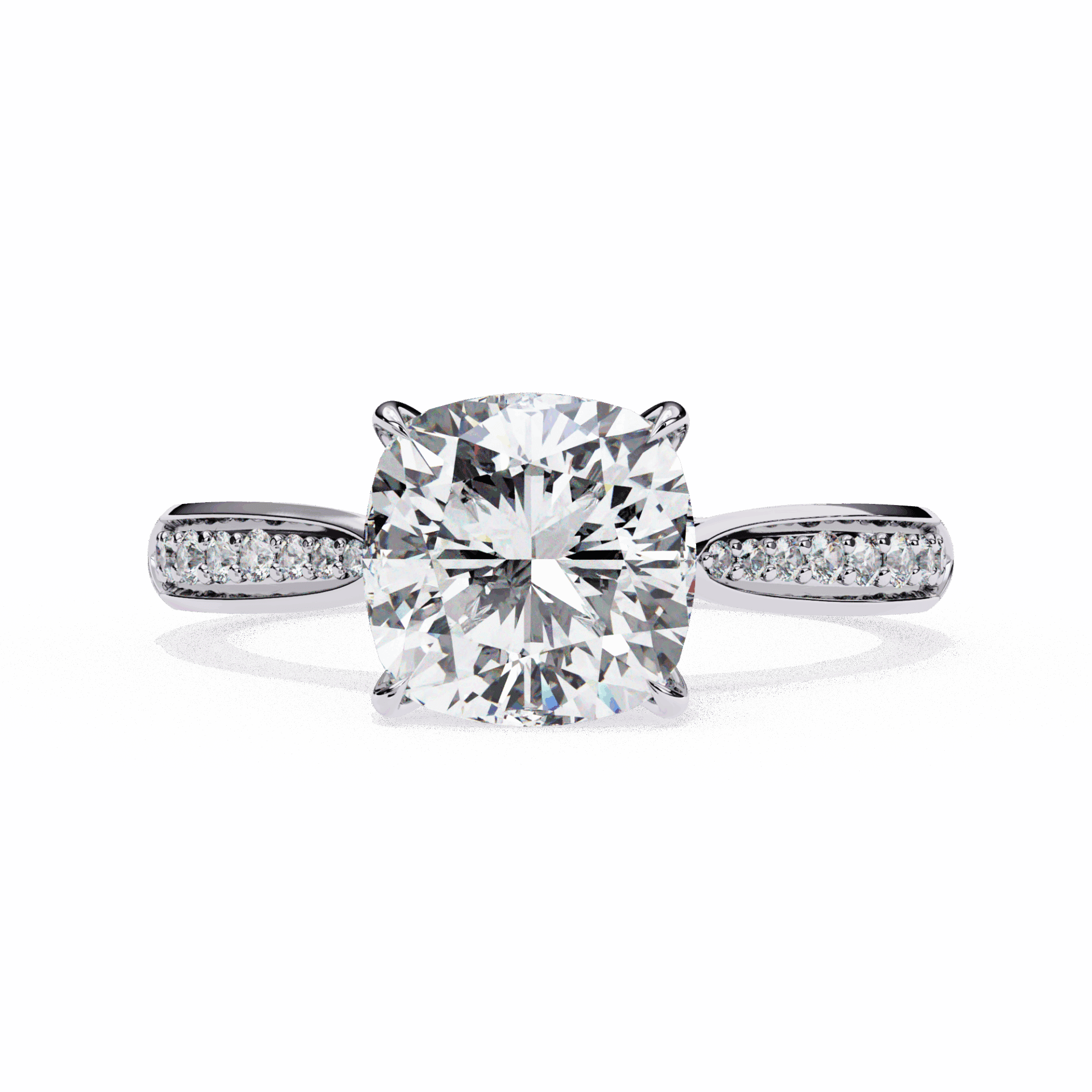 A cushion-cut lab-grown diamond with 35 accent diamonds totaling 1.95 carats. Vintage glow in the True Love setting.