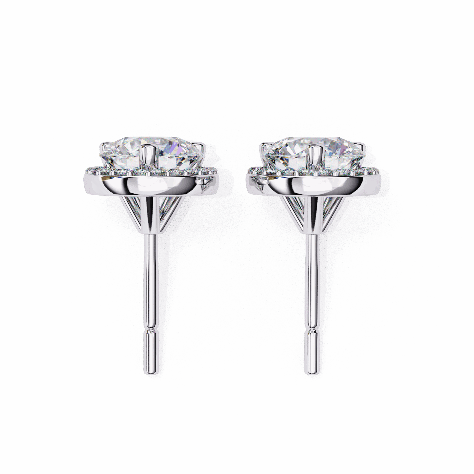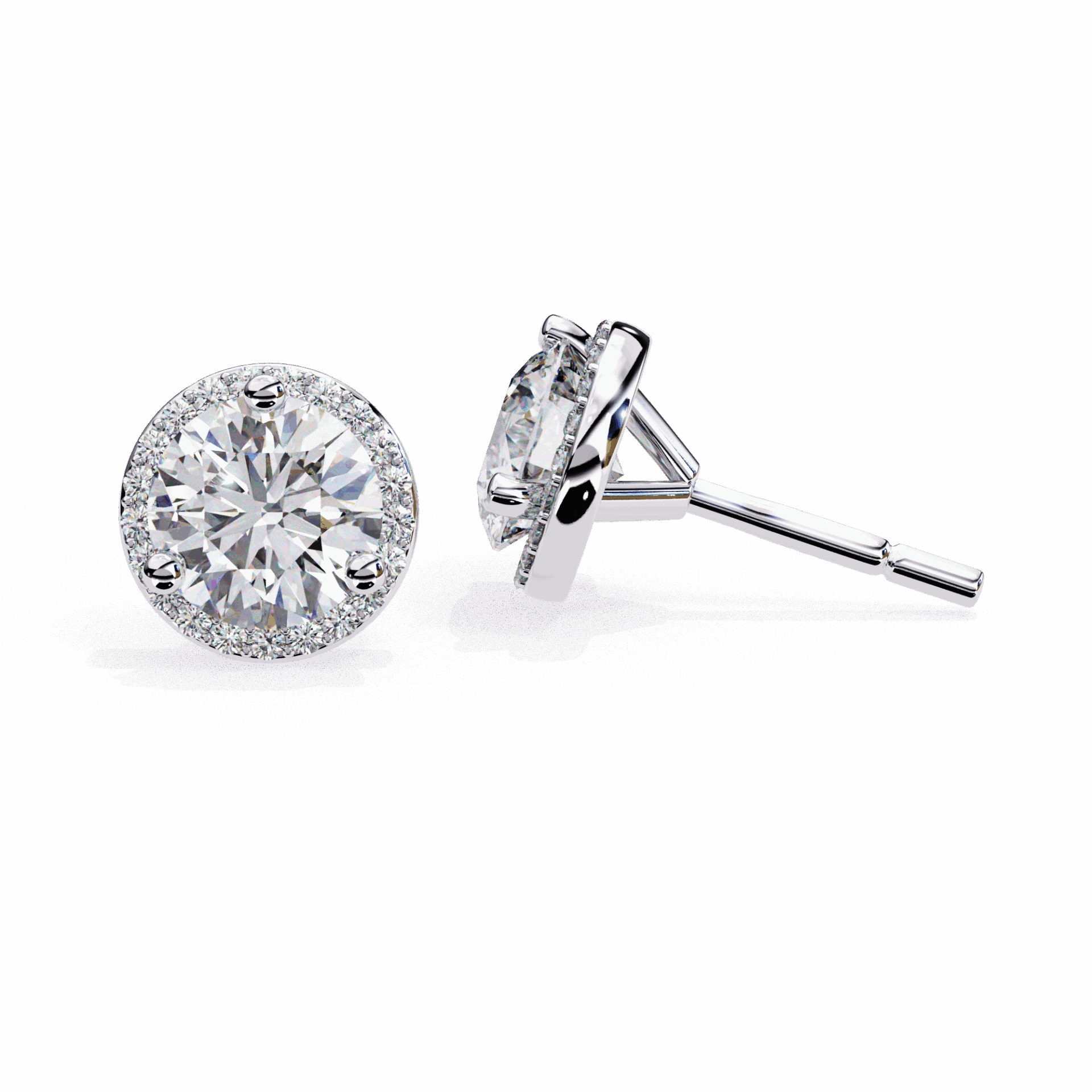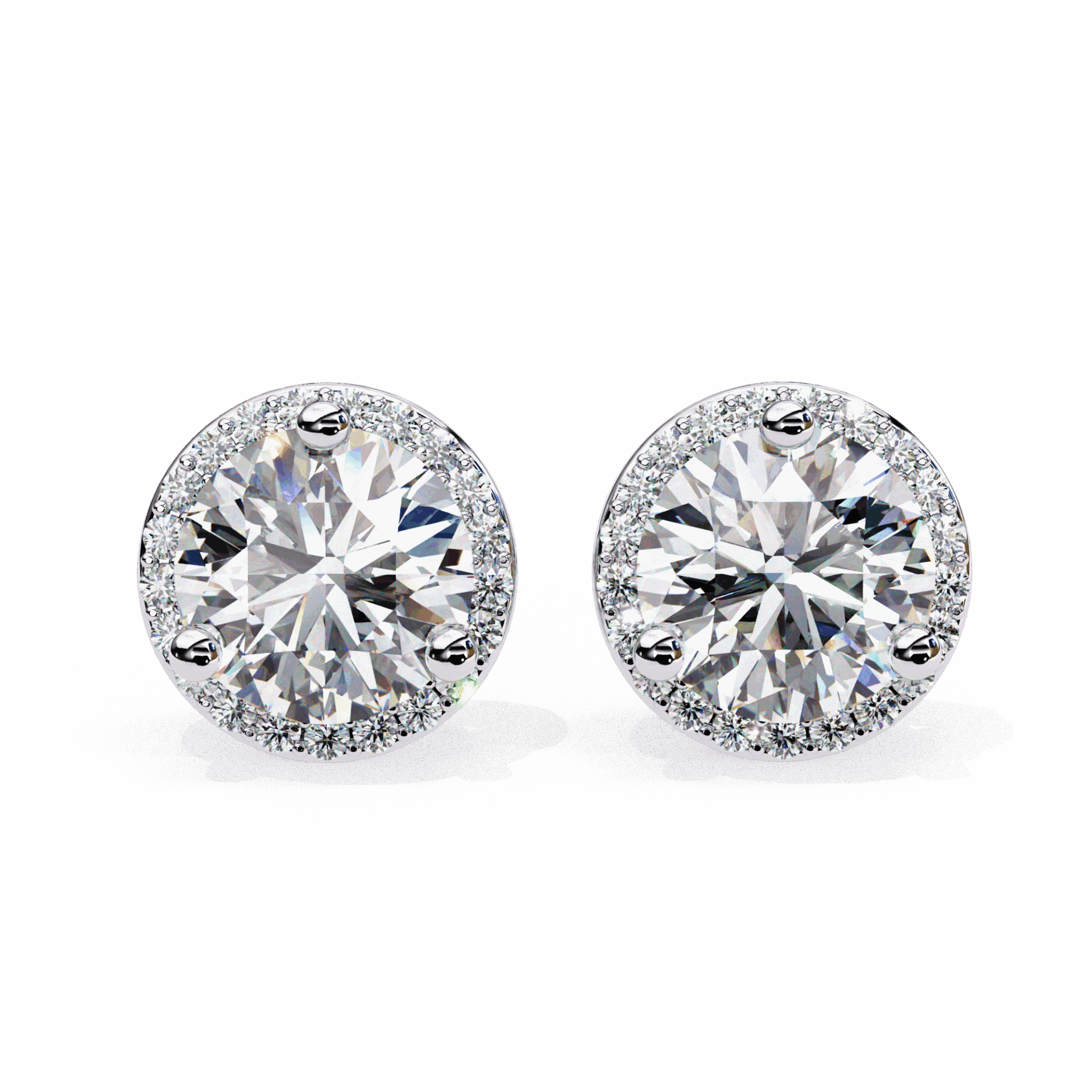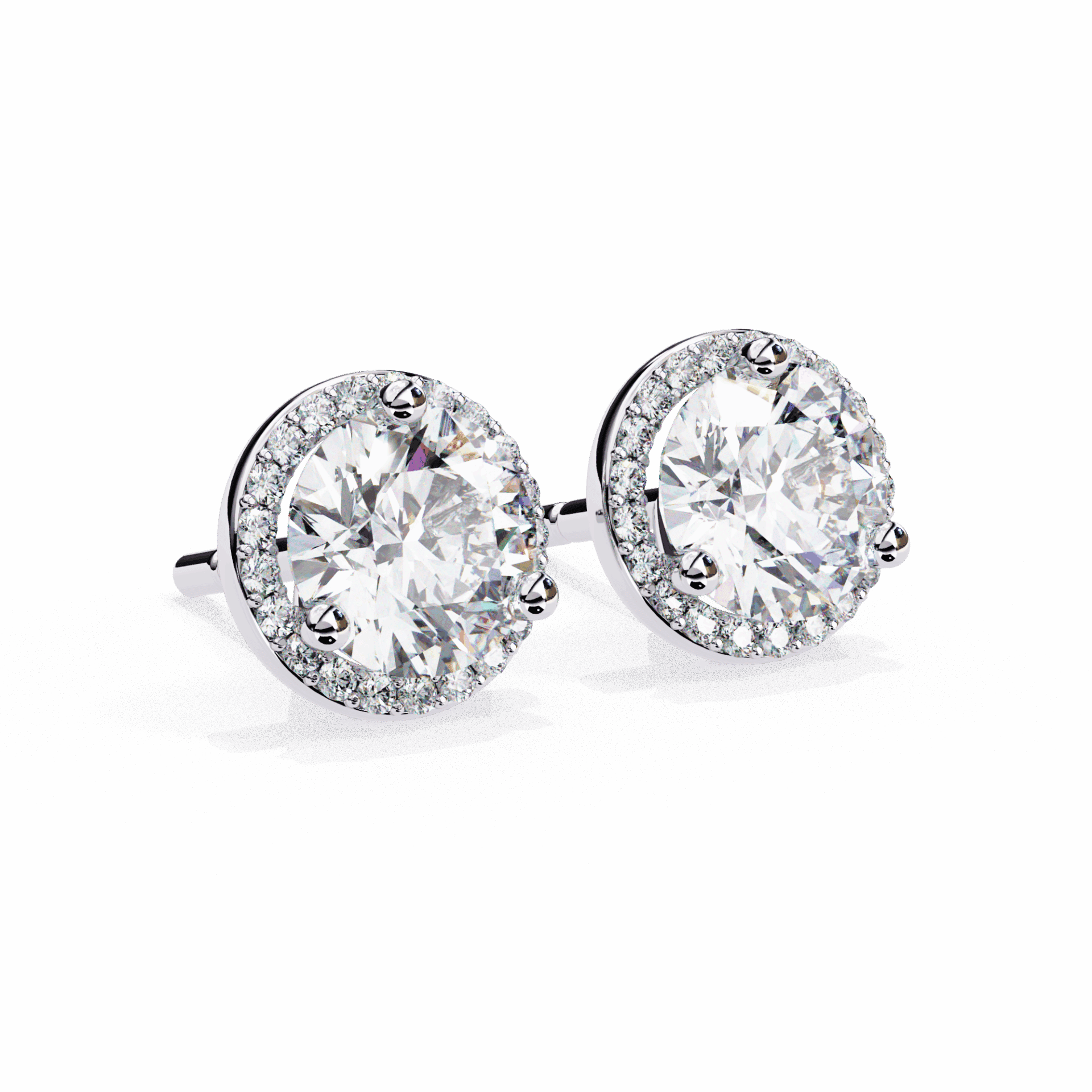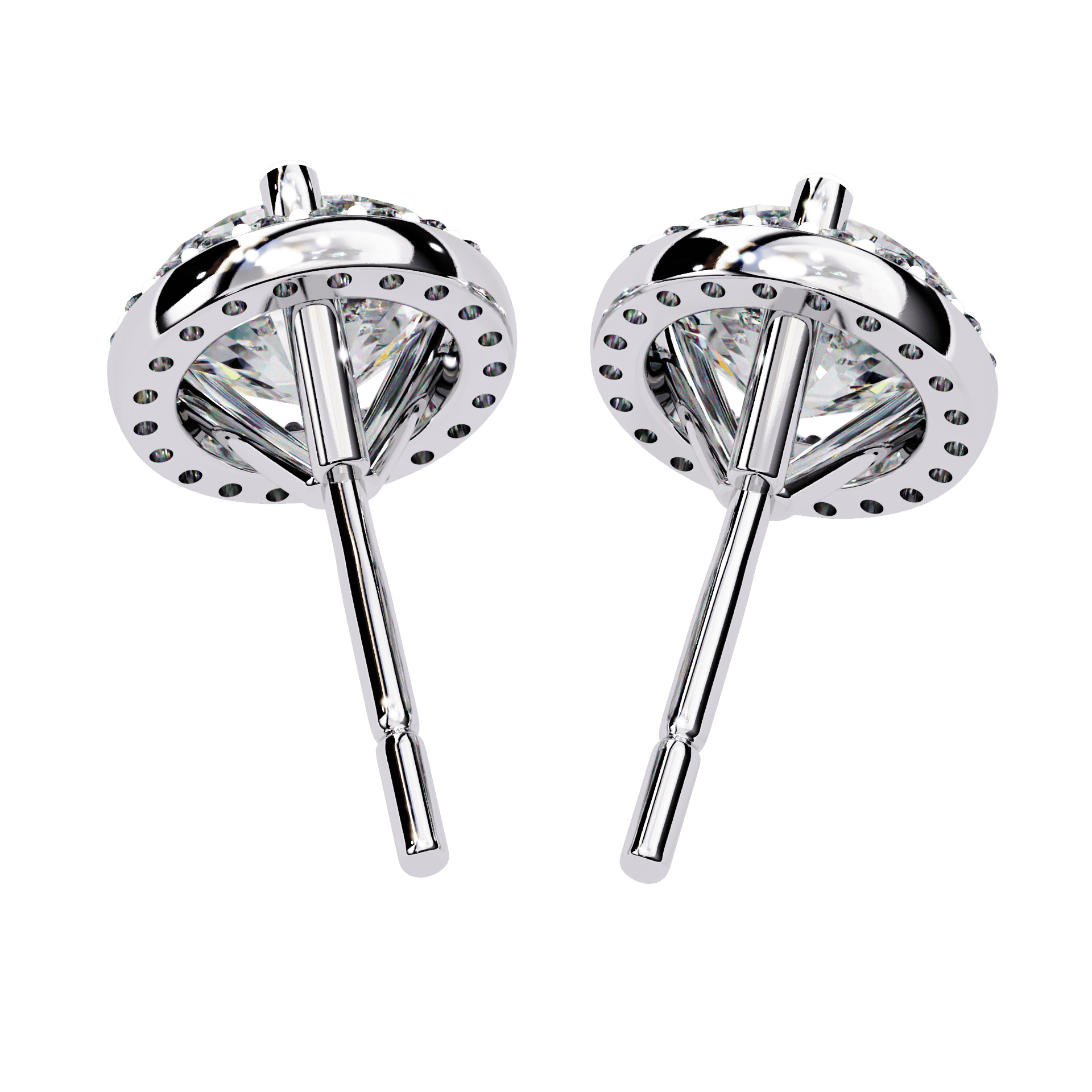 44 round lab-grown diamonds totaling 1.95 carats in a substantial dual design - two rows of diamonds per ear creating serious presence and continuous sparkle.