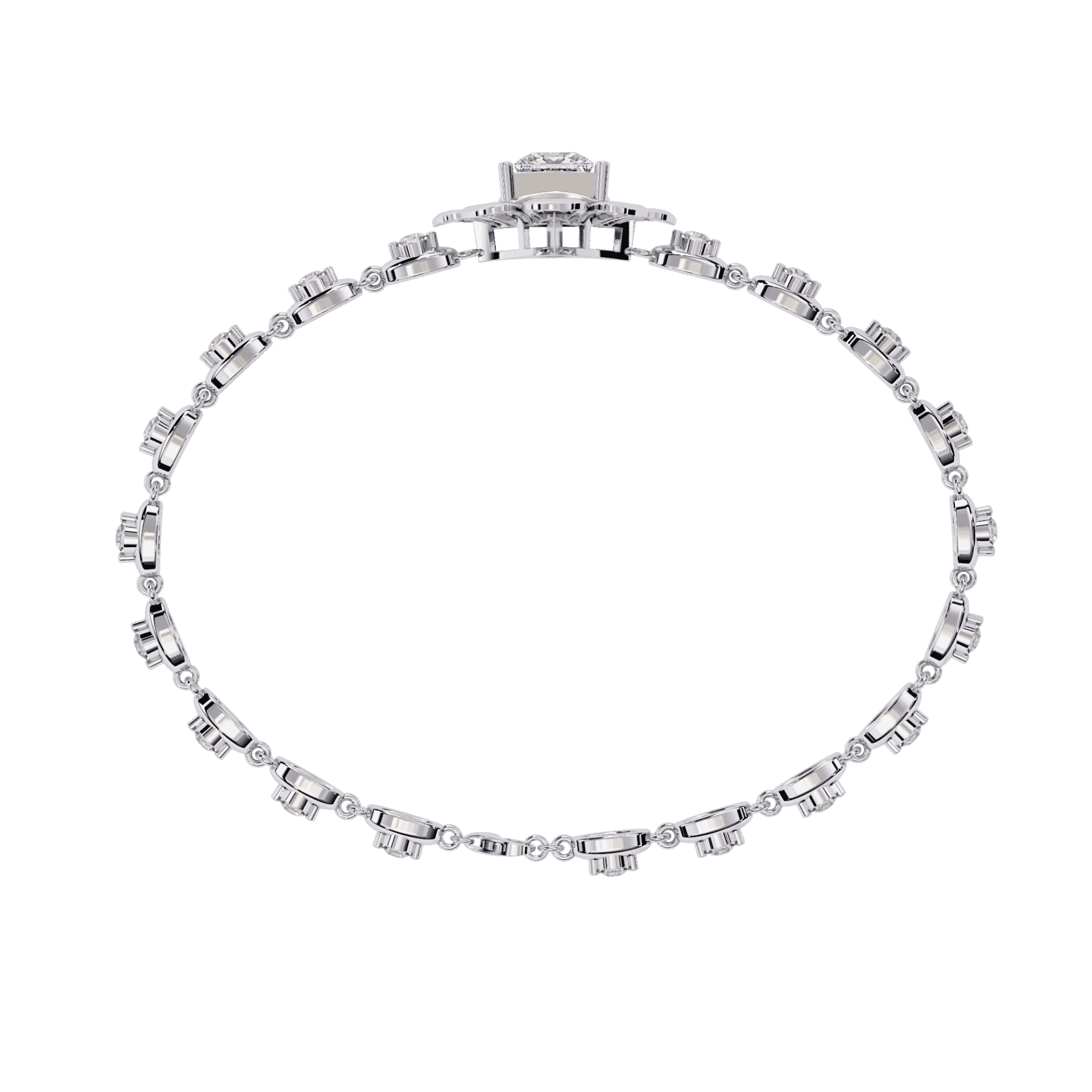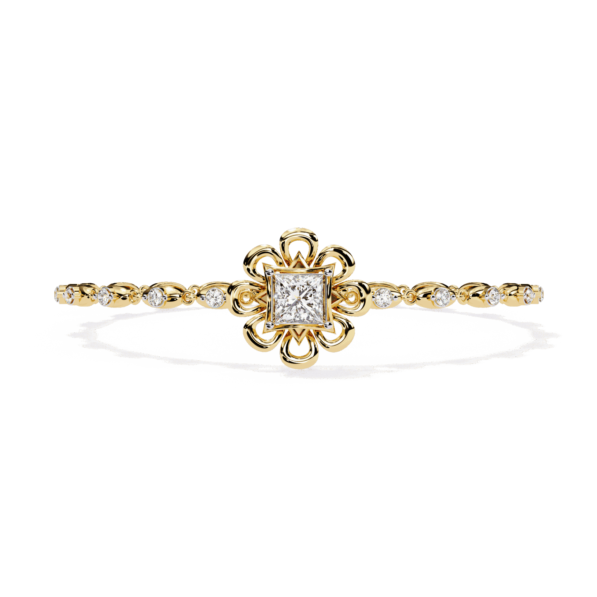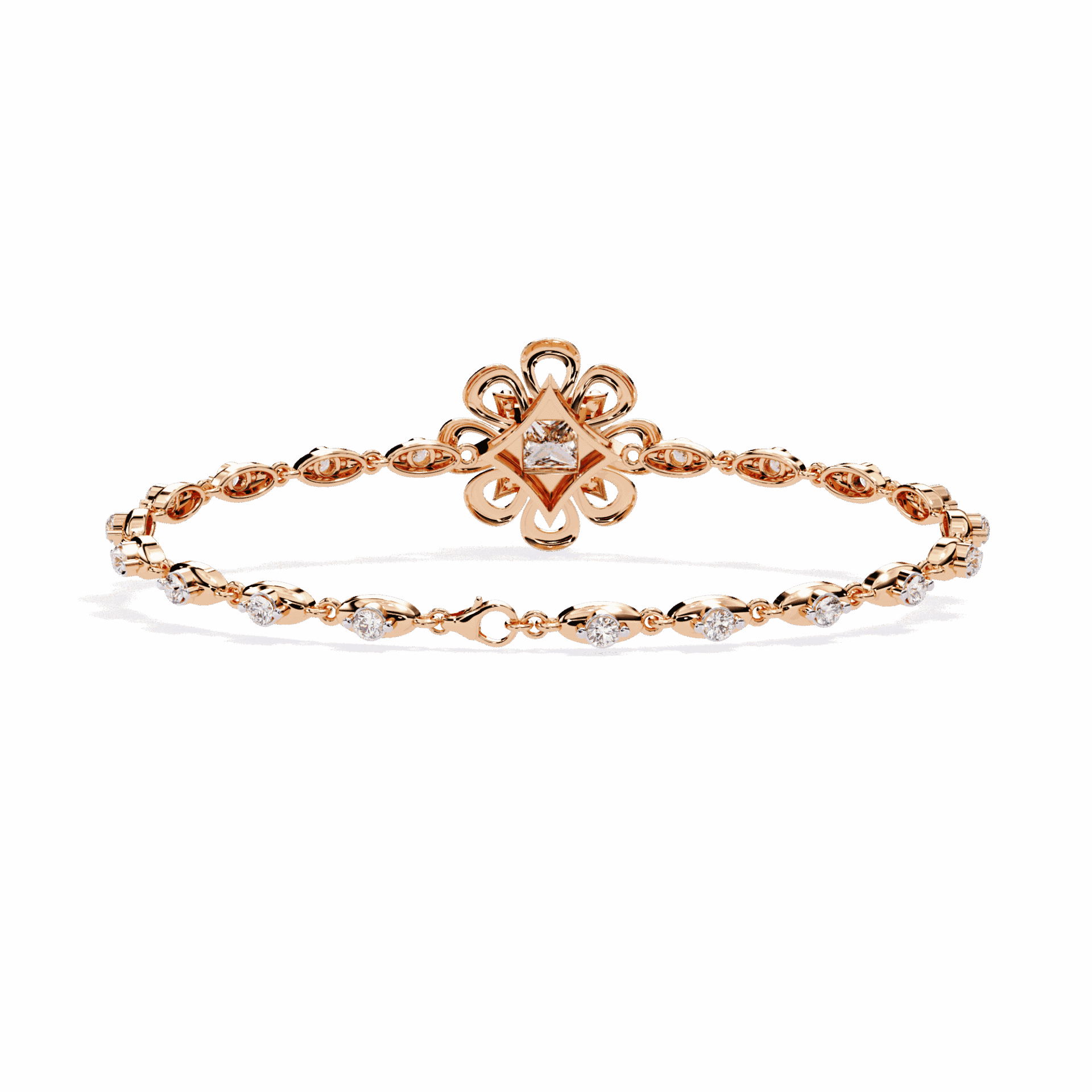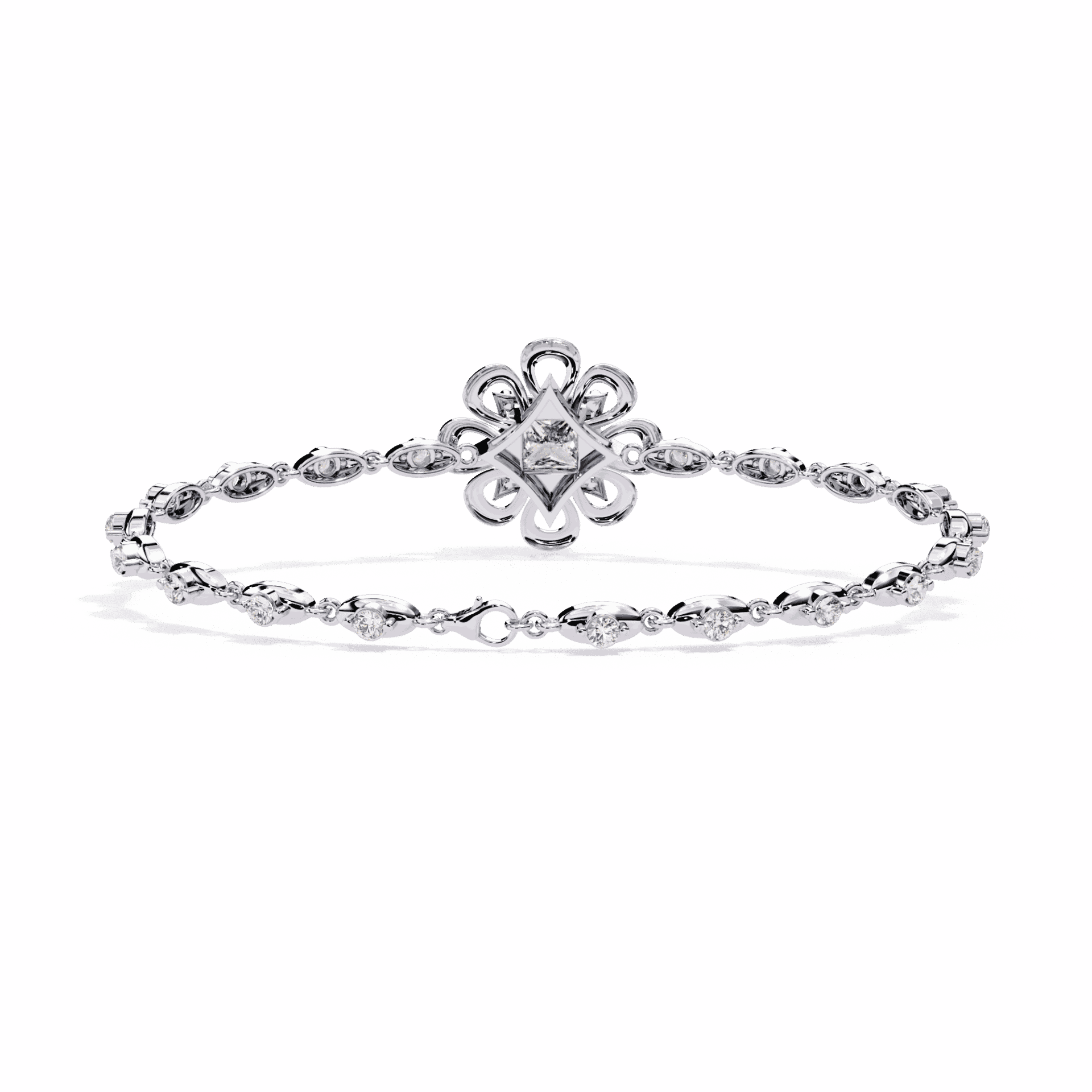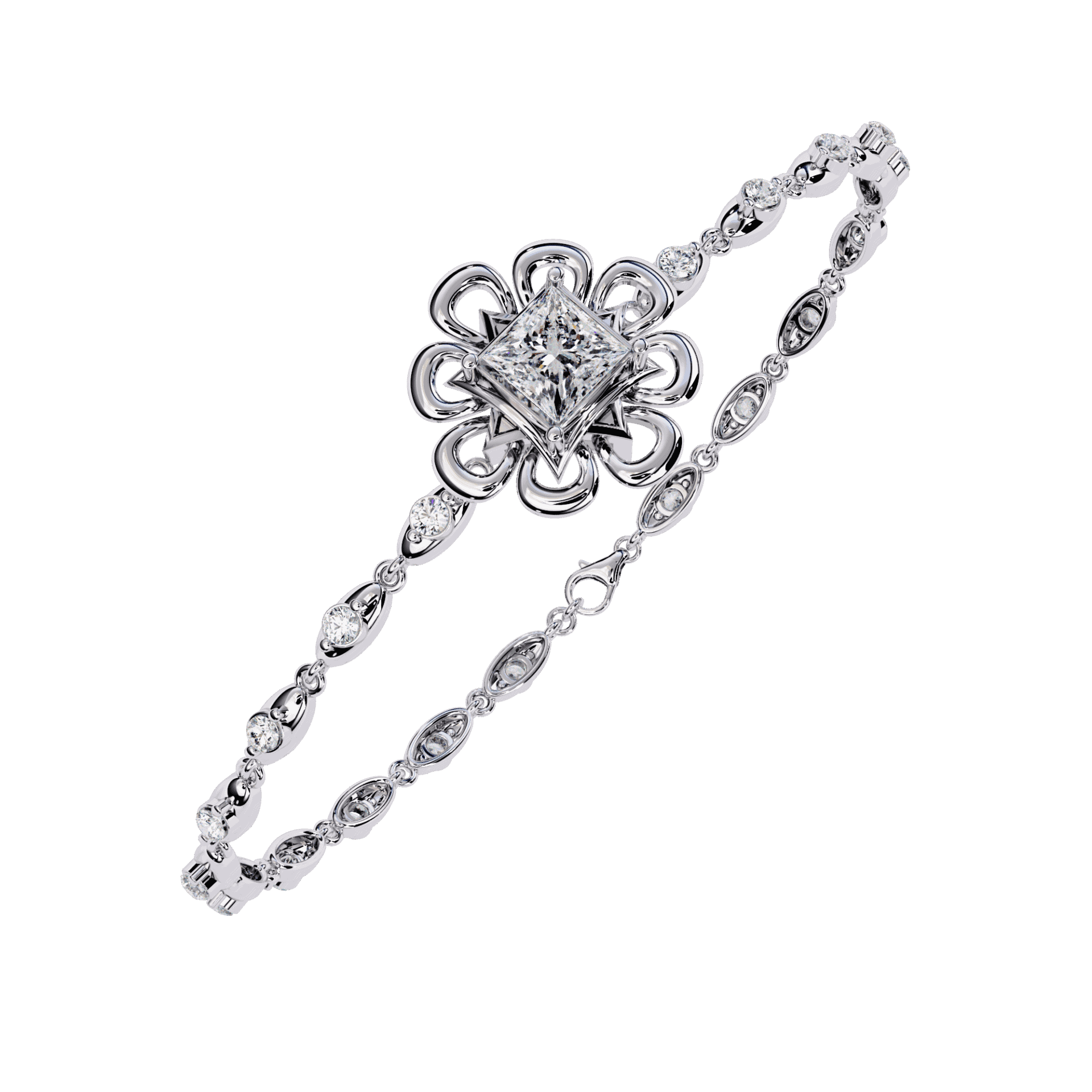 20 lab-grown diamonds - a mix of round and princess cuts - arranged in blooming floral patterns across the bracelet. The design is organic, inspired by nature but executed with precision.