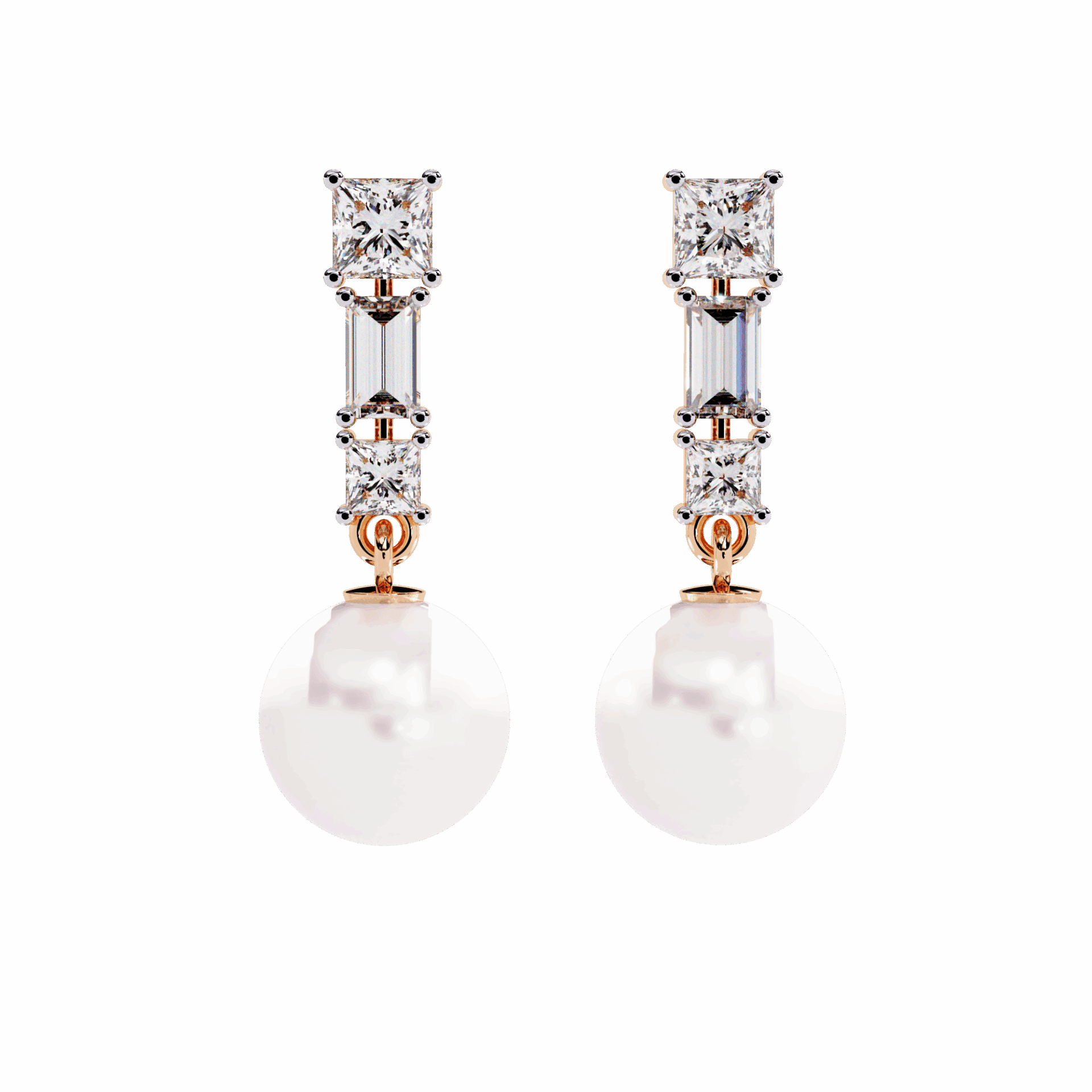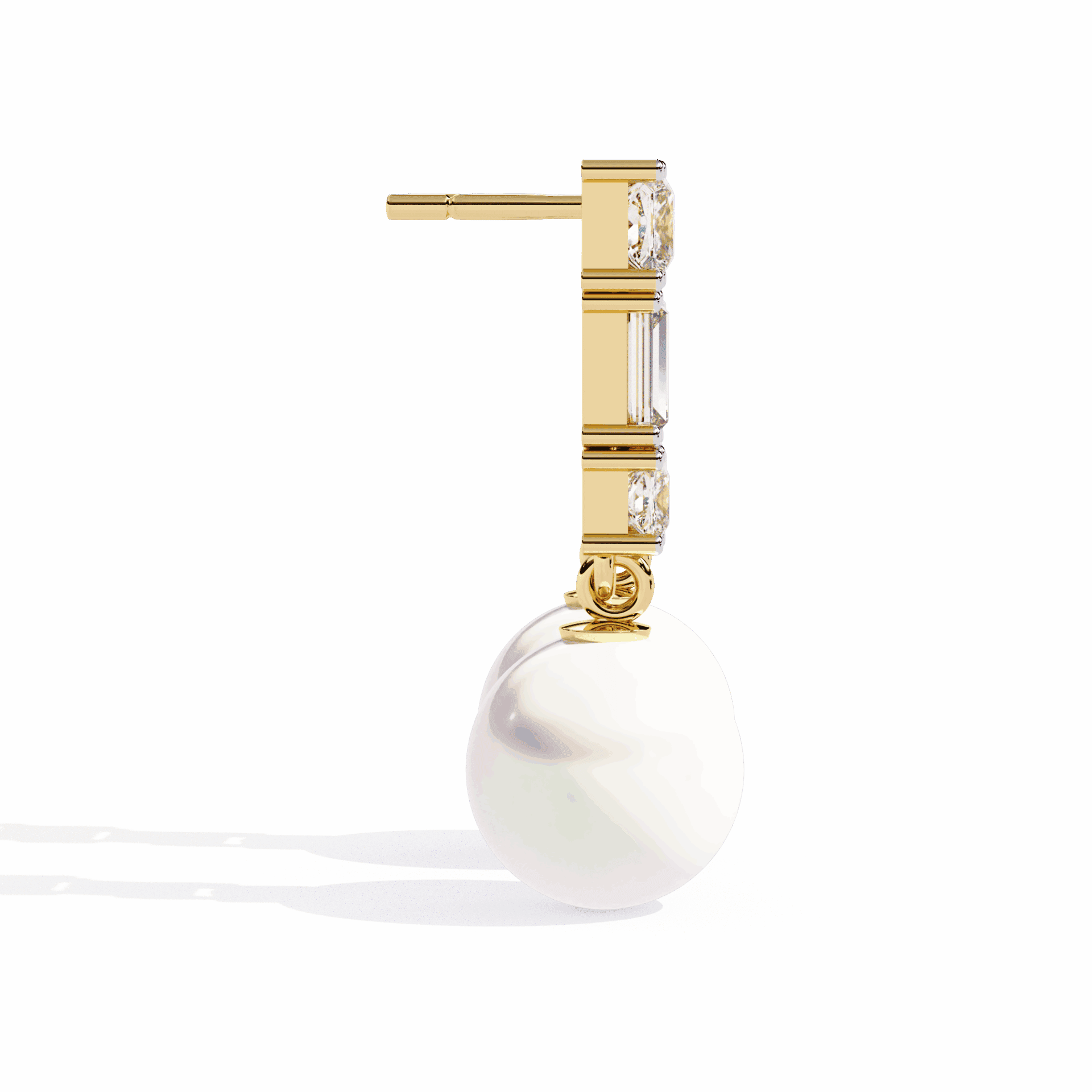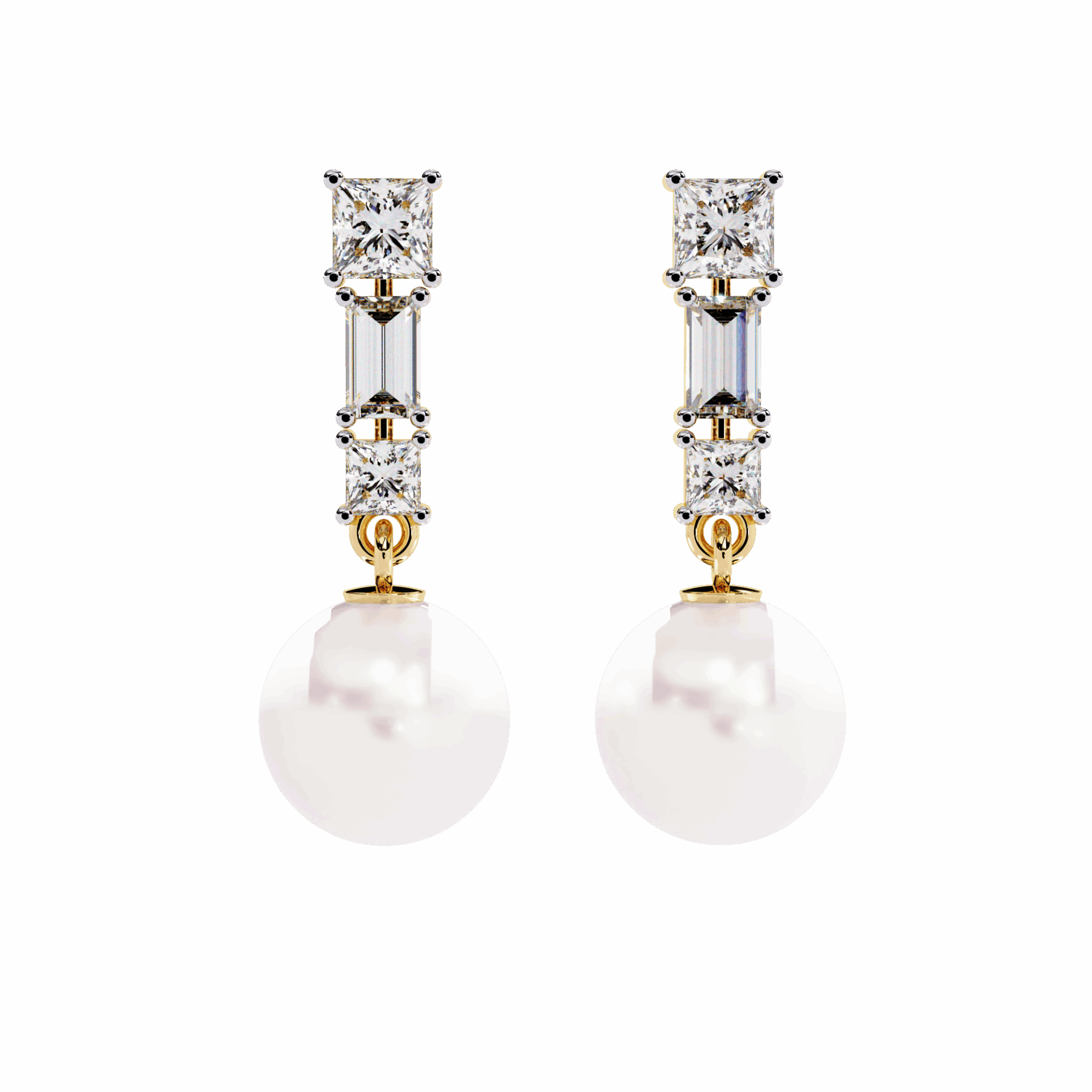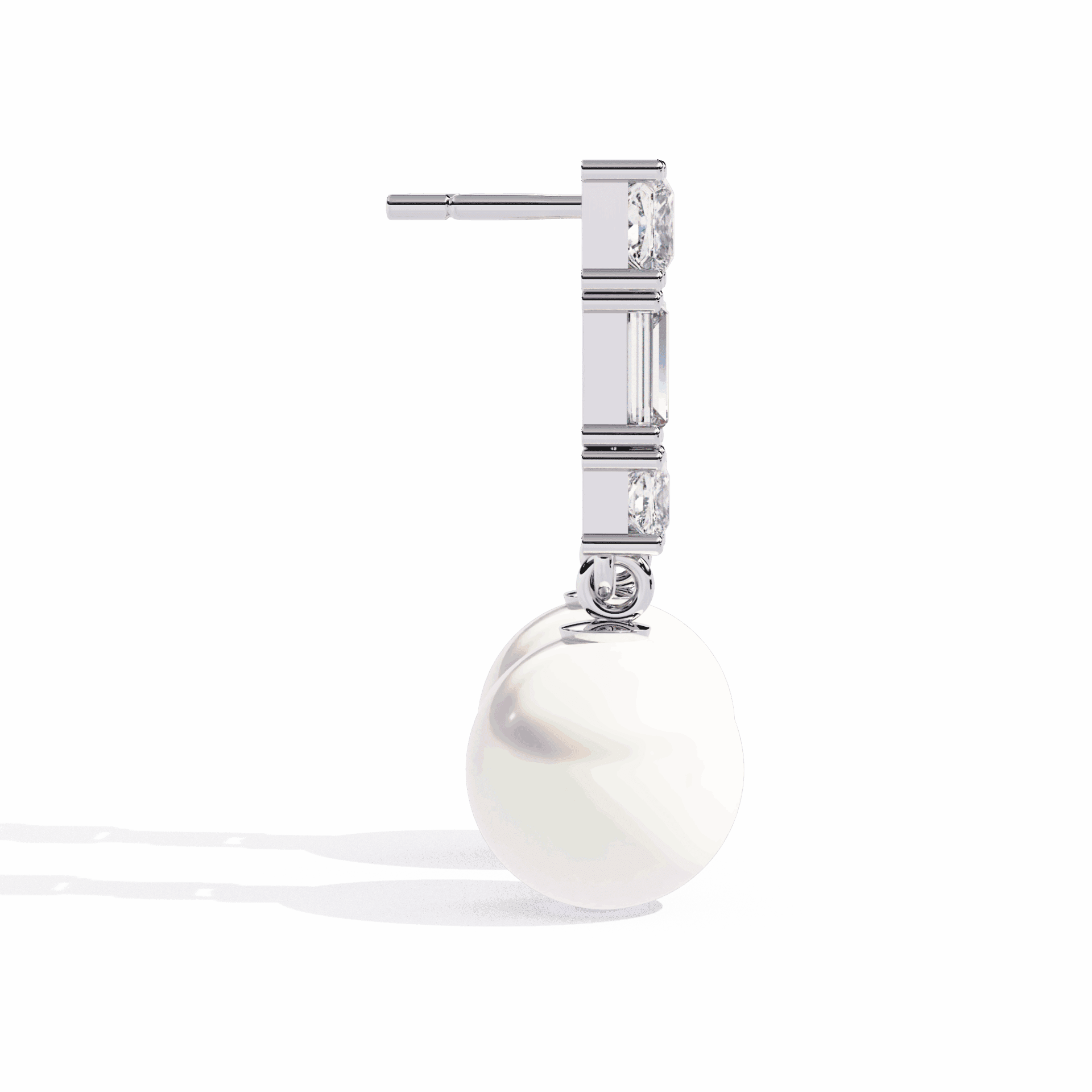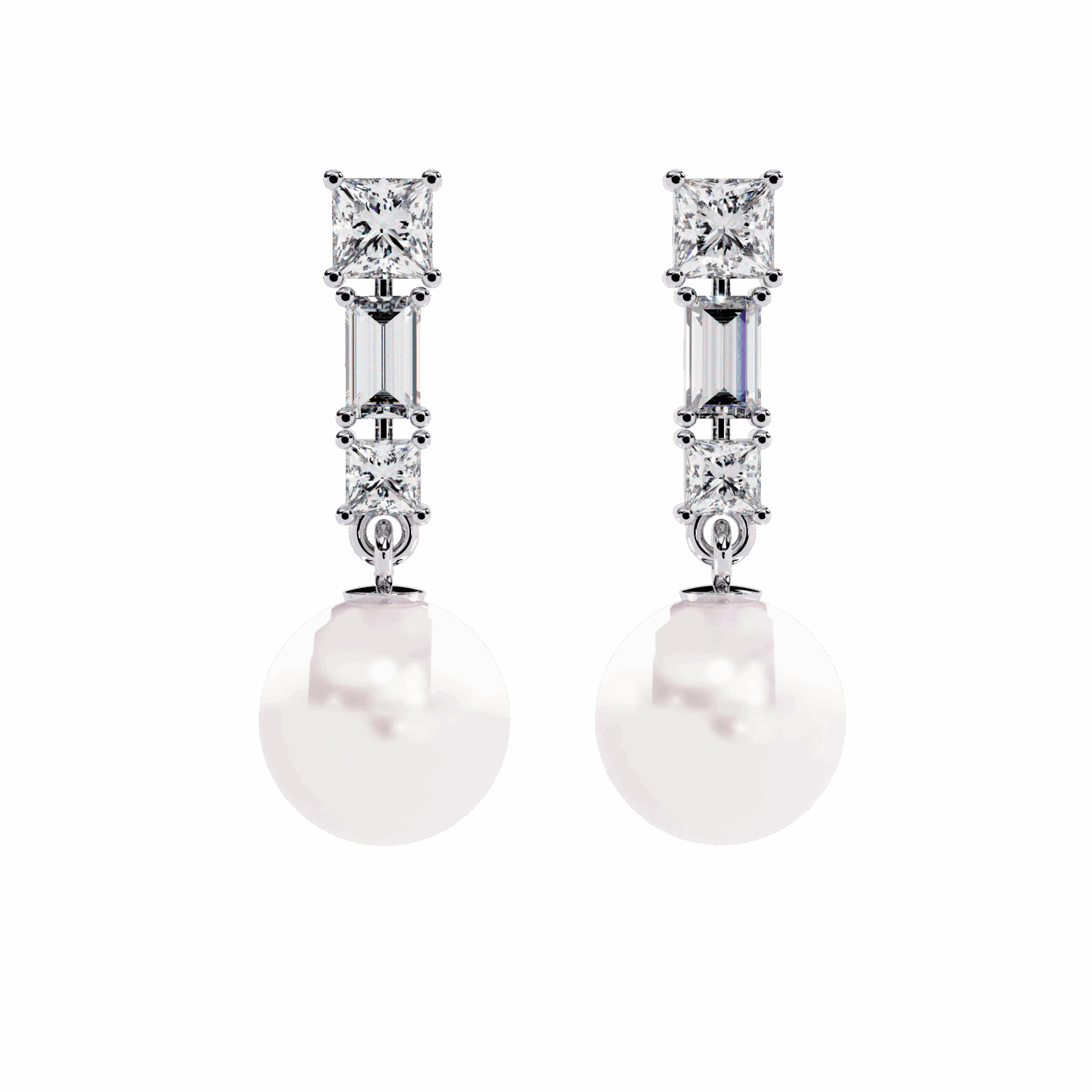 6 lab-grown diamonds – princess and baguette cuts – totaling 2.07 carats in geometric drop settings. Angular precision meets linear elegance in earrings that make a statement.