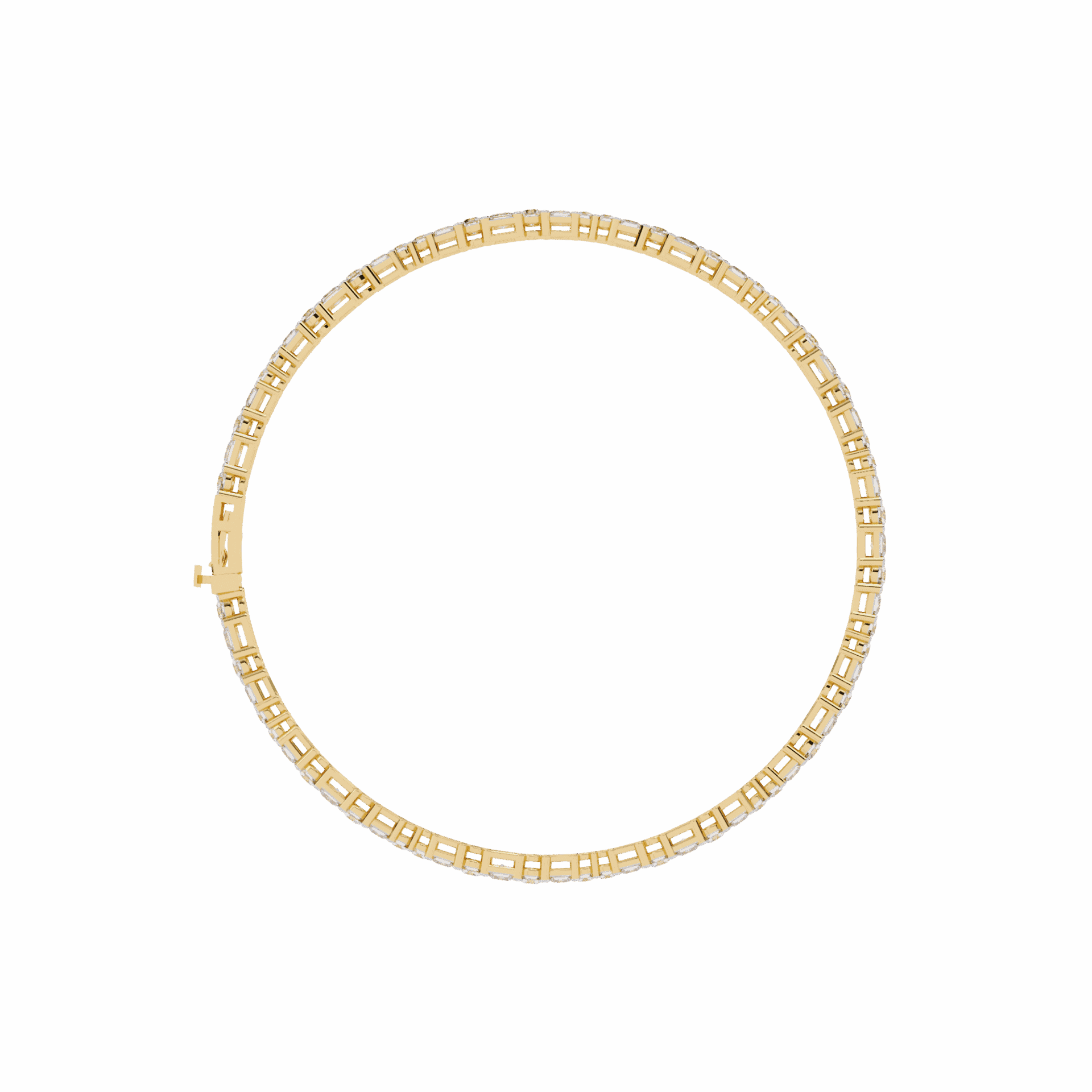 33 princess-cut lab-grown diamonds set in a continuous line around the wrist. The square shape creates clean edges, sharp angles, a different kind of brilliance than round cuts offer.
