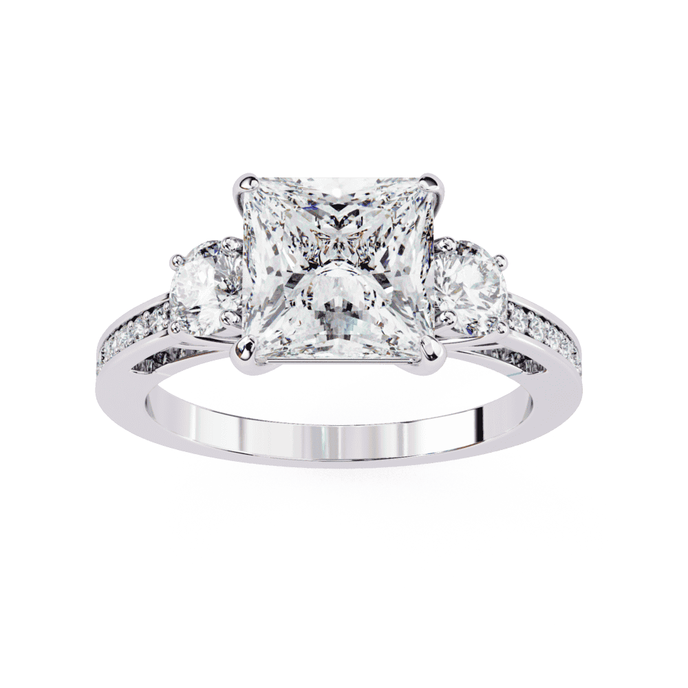 3.25 Carat Princess Cut Solitaire in Three Stone Setting