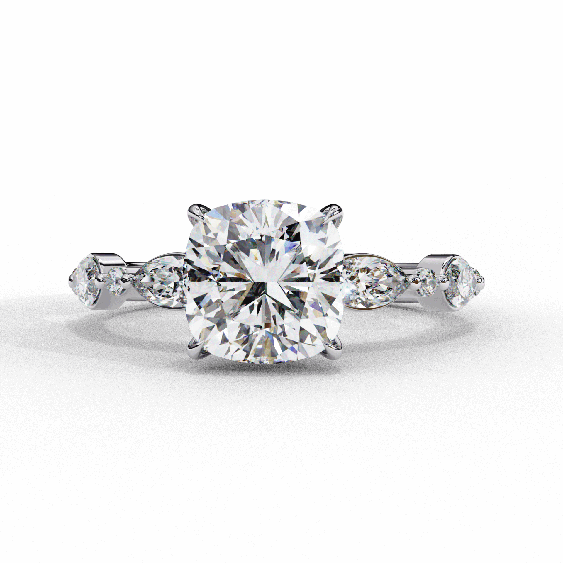 A cushion-cut lab-grown diamond with 17 diamonds totaling 3.55 carats in the Endless Love setting. Vintage romantic glow at statement scale.