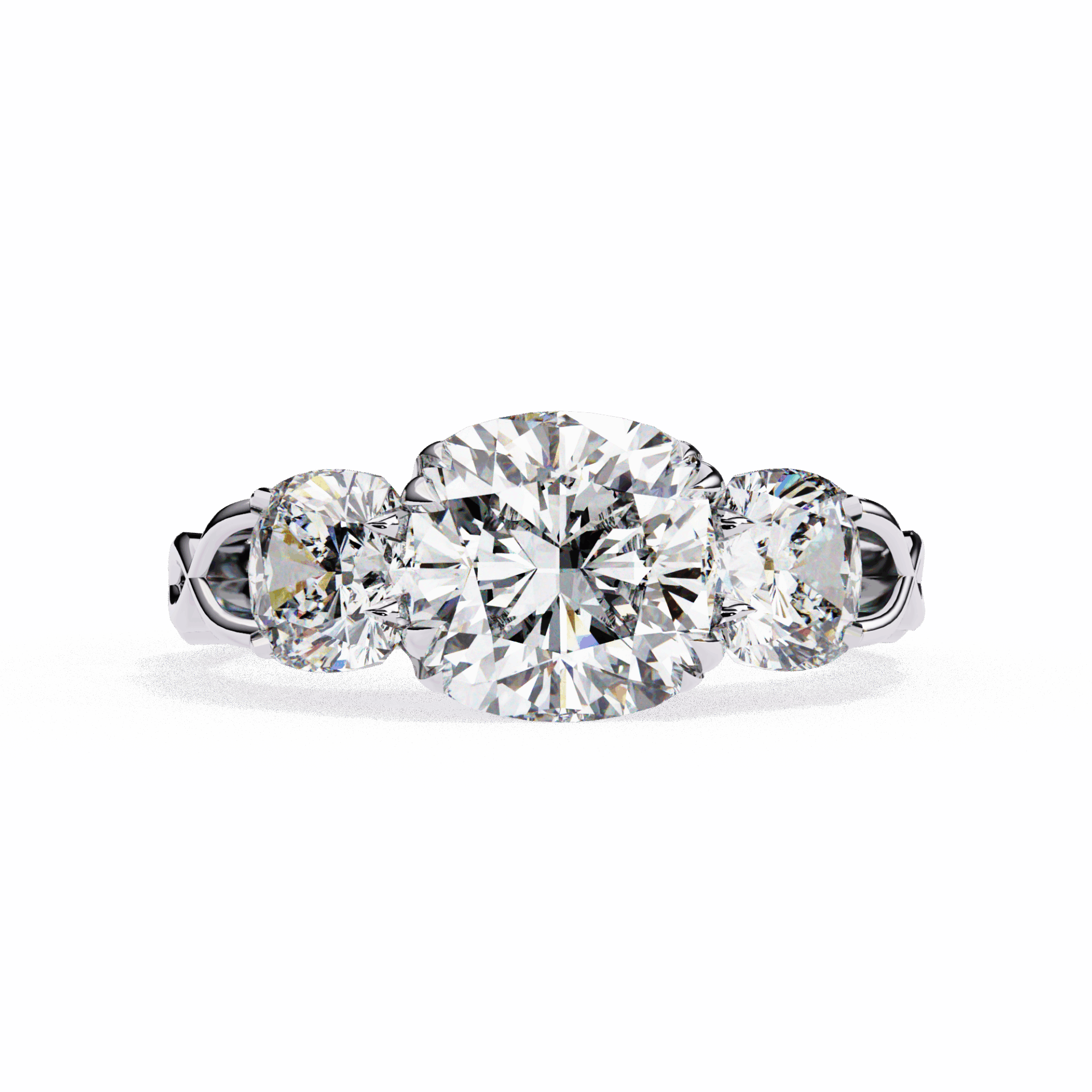 Three stones. Cushion grandeur.