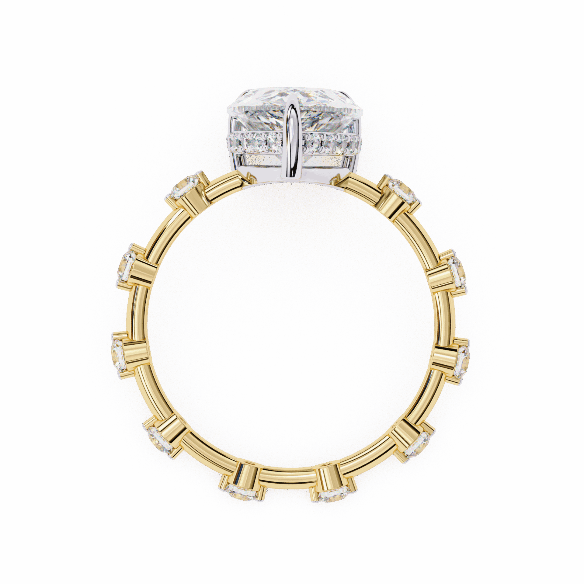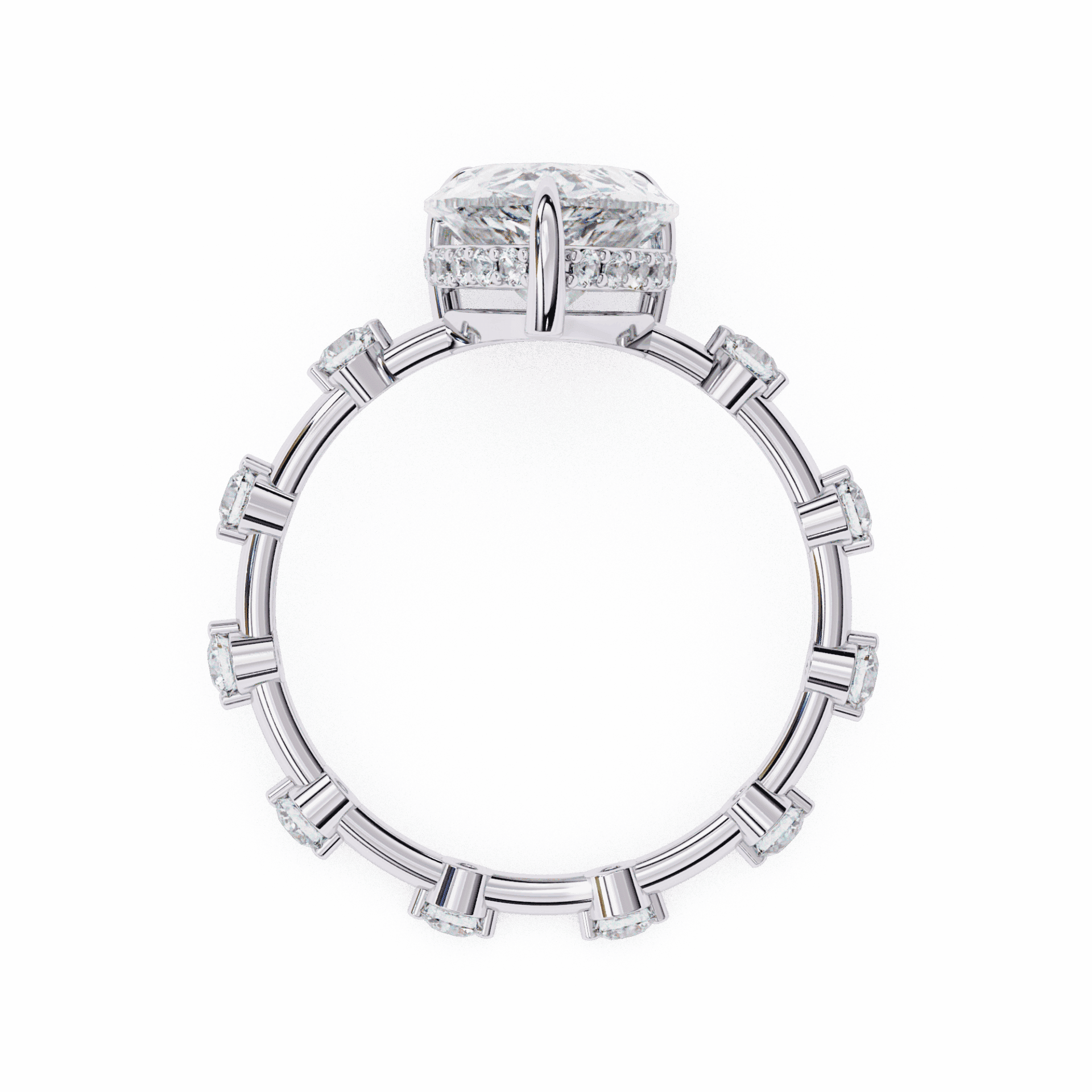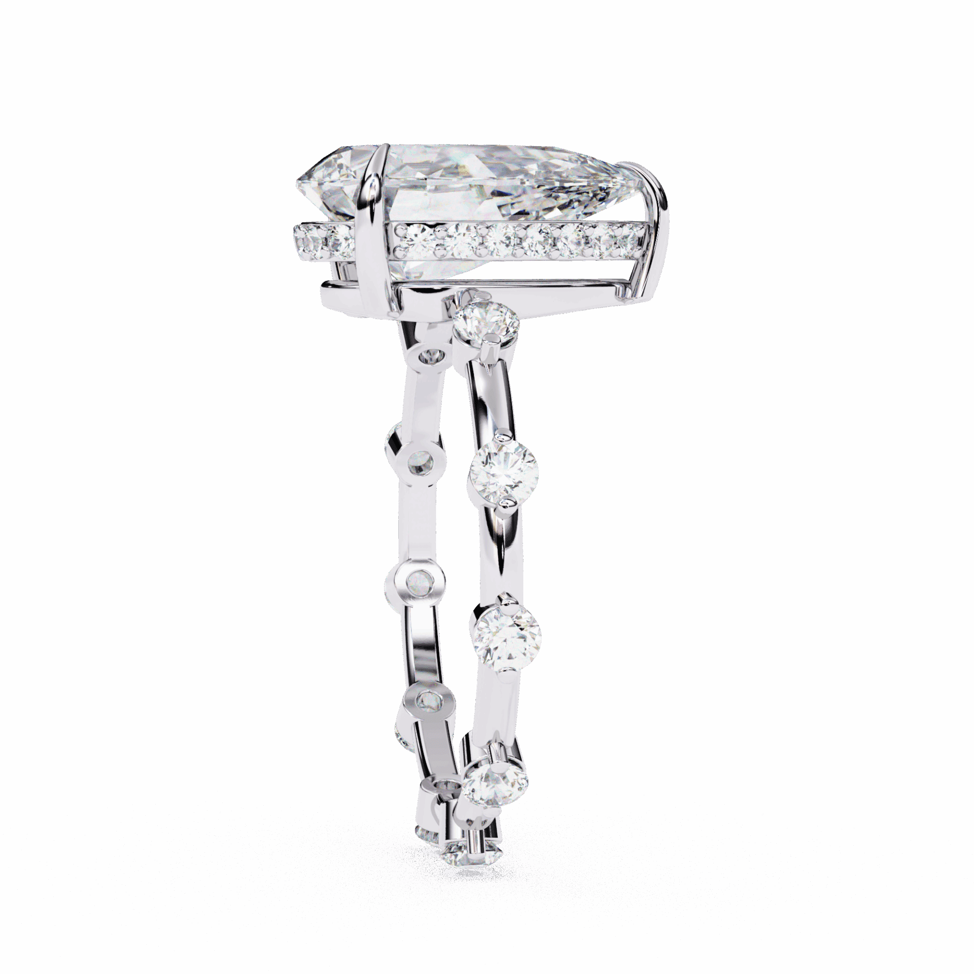 A pear-cut lab-grown diamond with 30 side stone accent diamonds totaling 3.51 carats. Teardrop drama enhanced by sparkling accents.