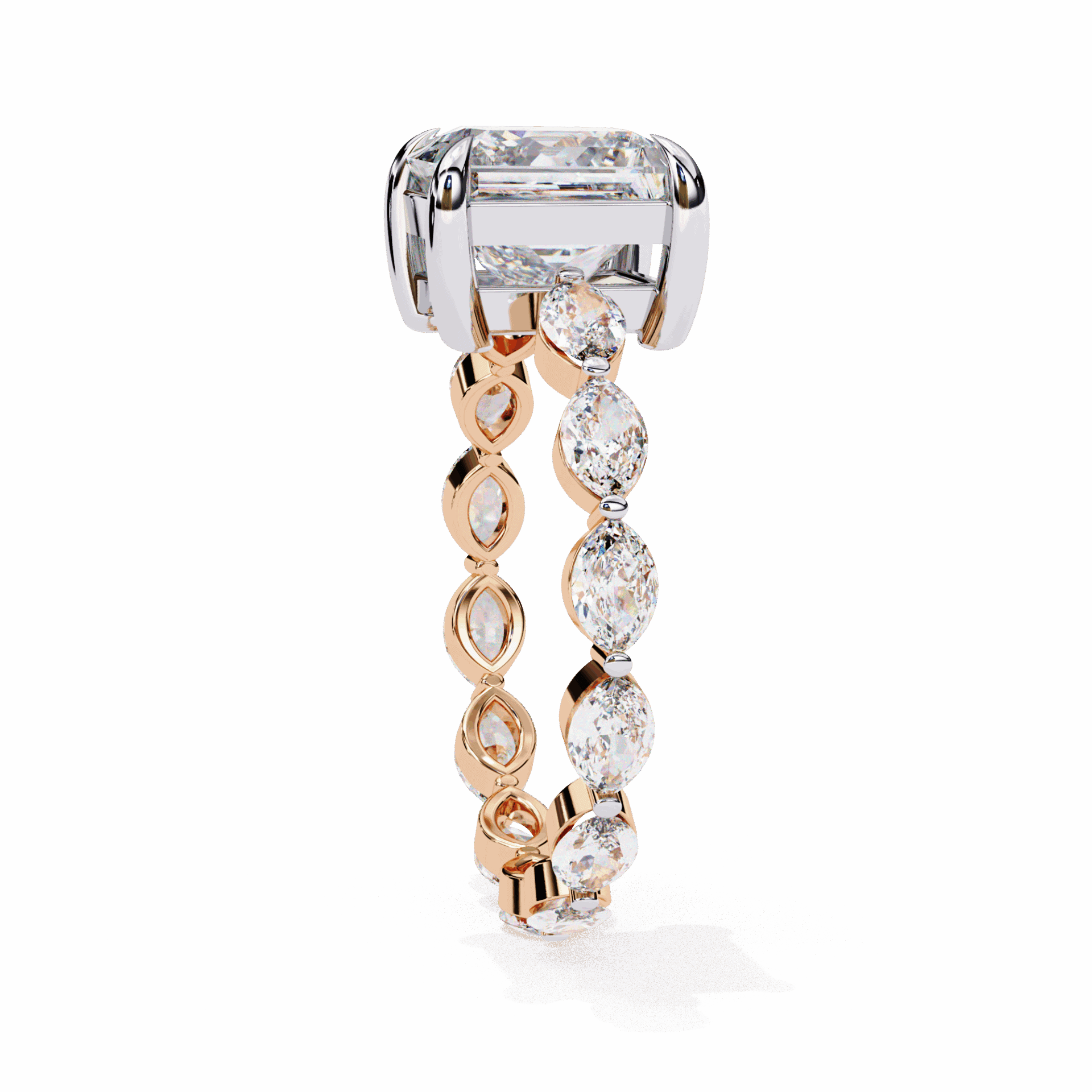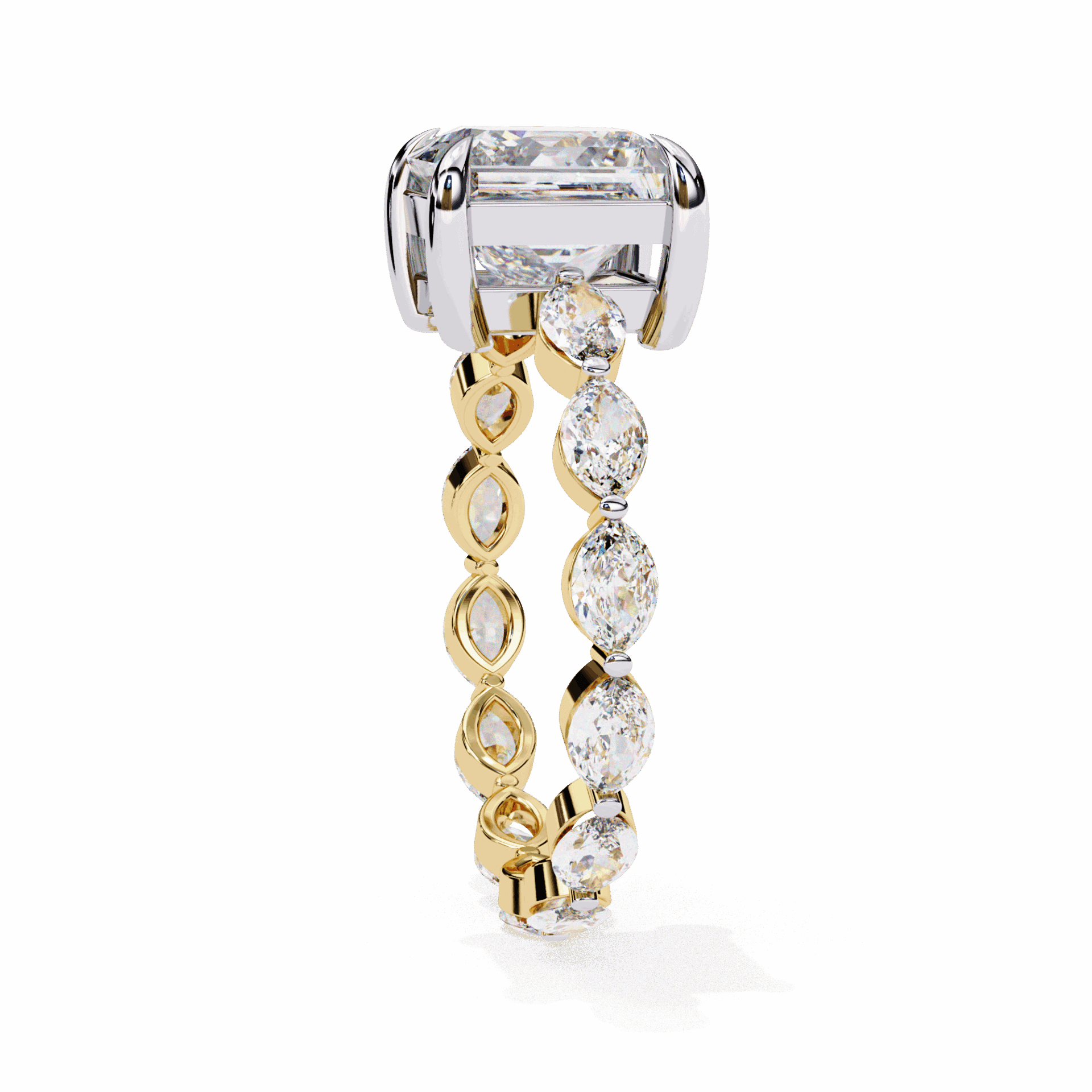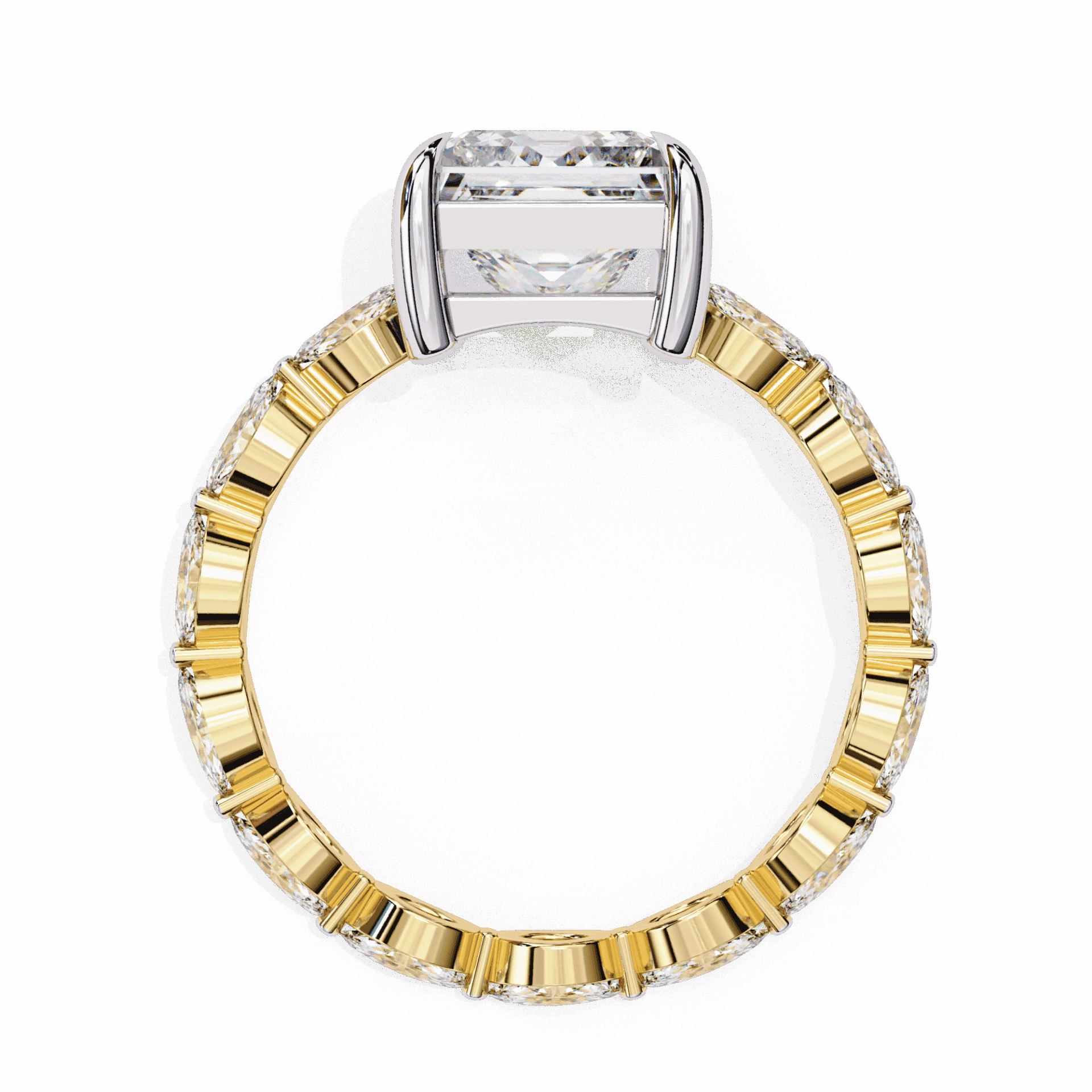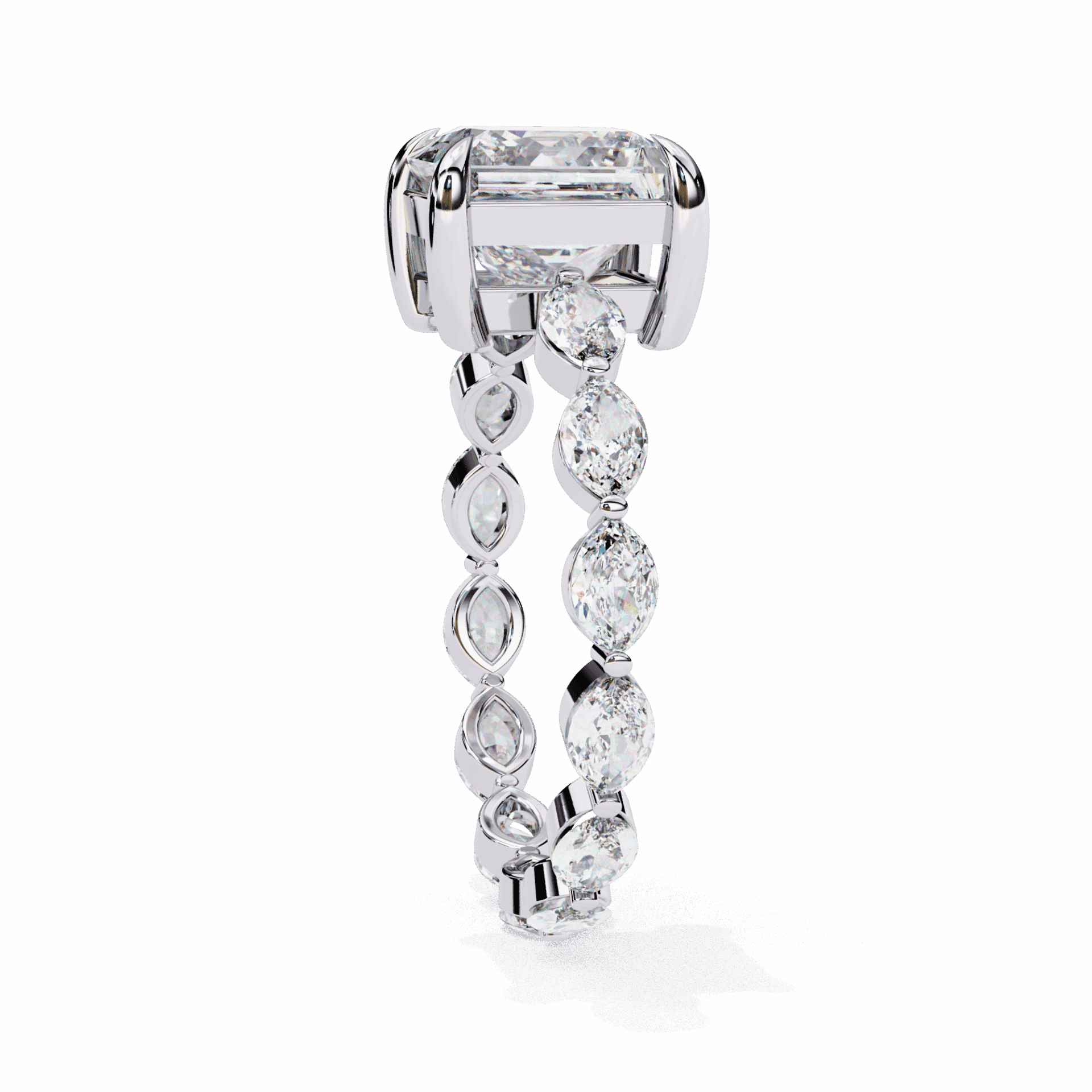A princess-cut lab-grown diamond with 14 accent diamonds totaling 3.49 carats. Angular brilliance in the Infinity setting.