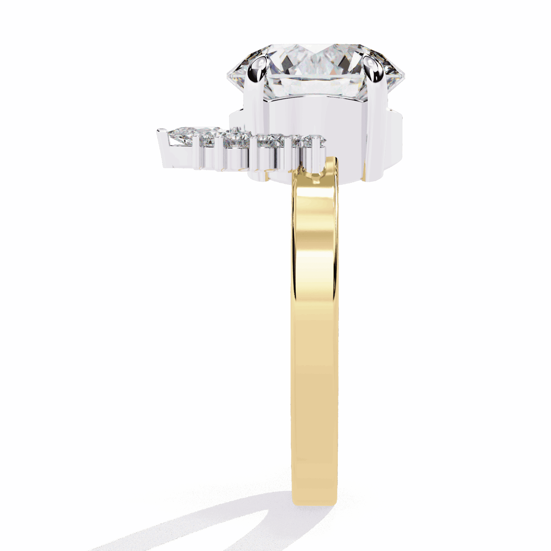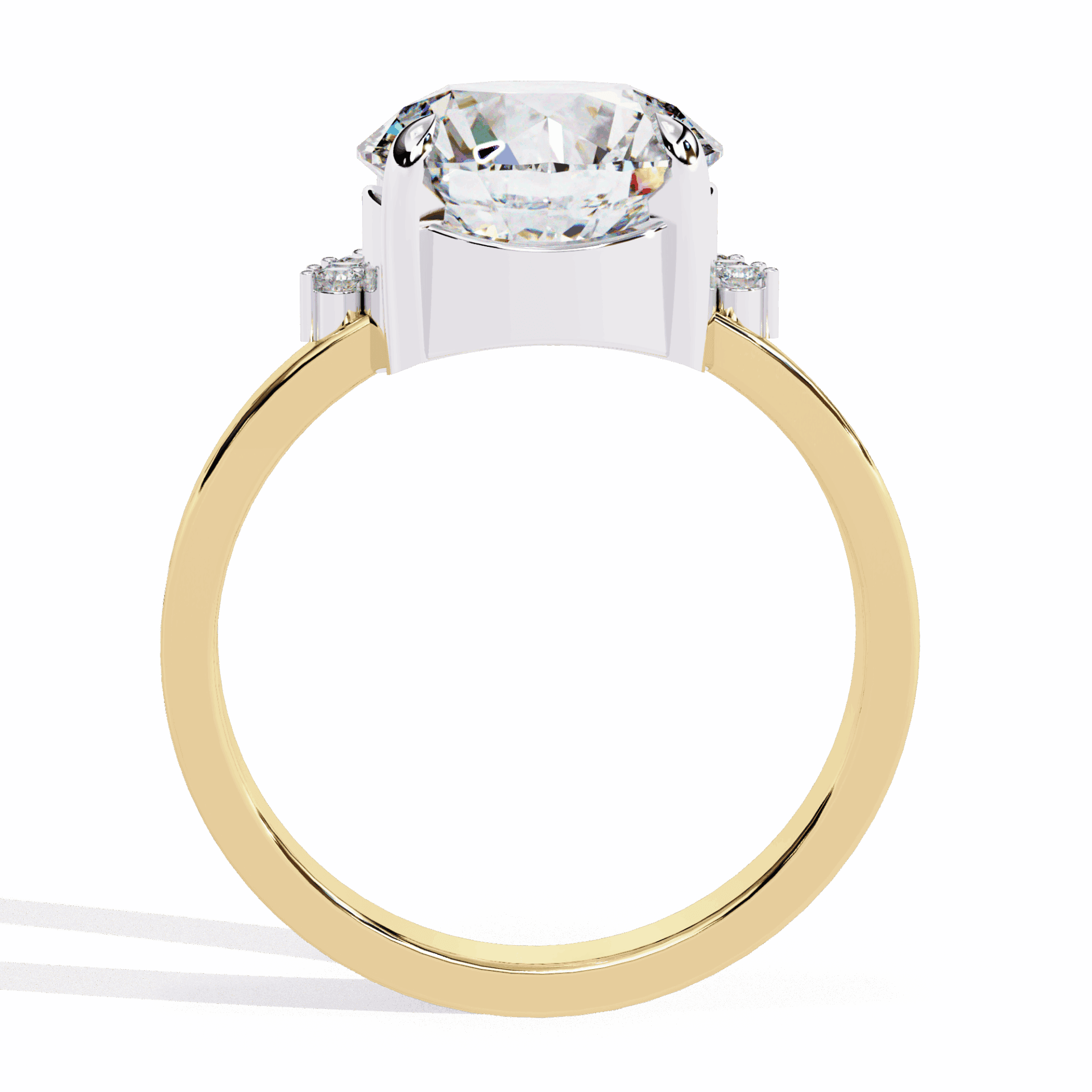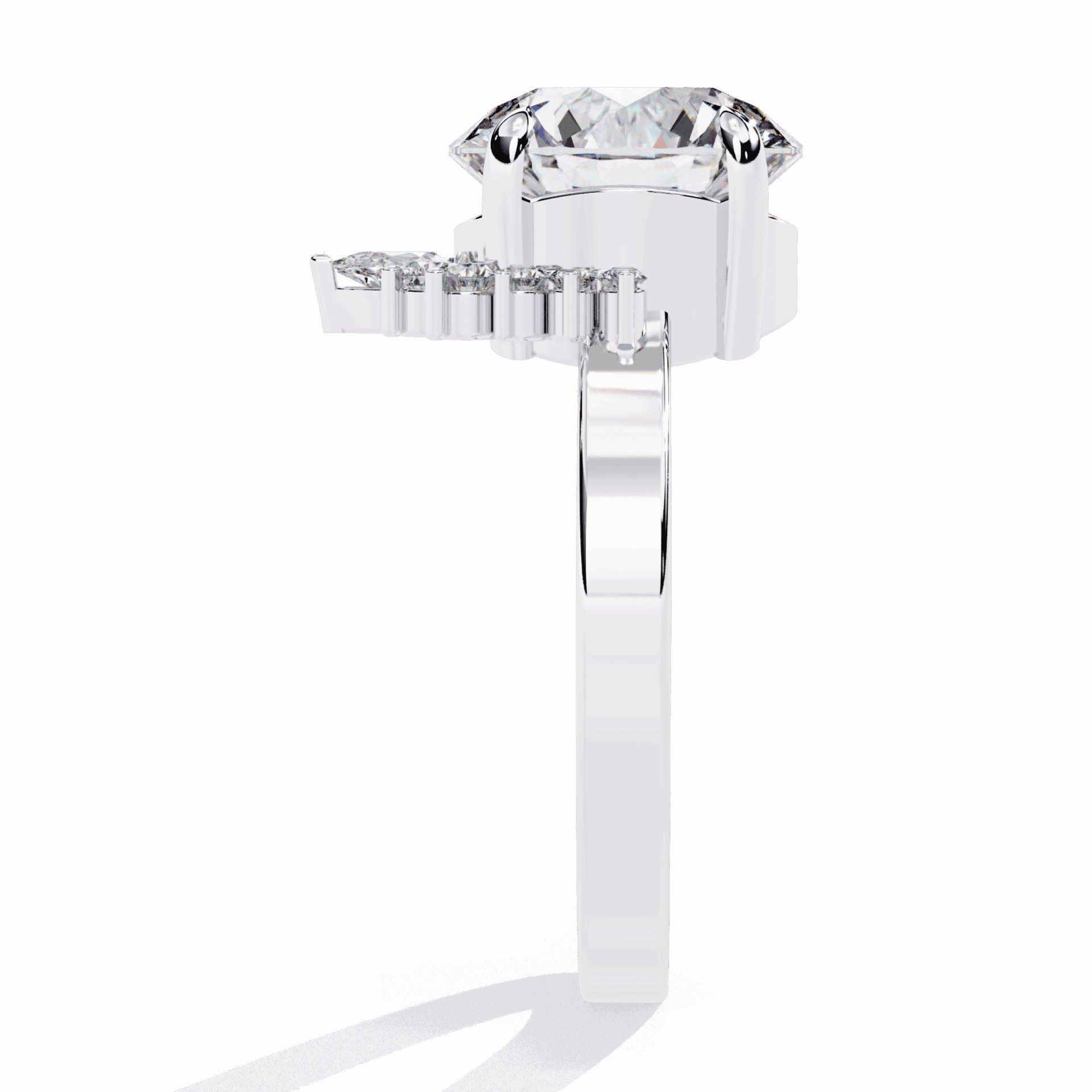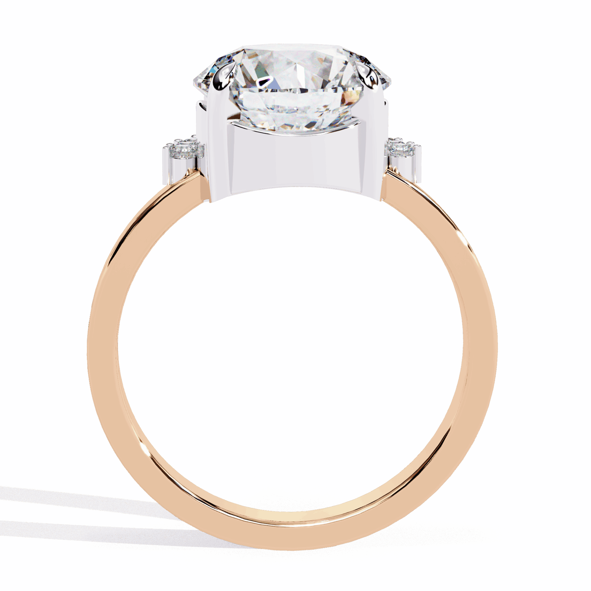 One round center with accent stones. Refined sparkle at statement scale.