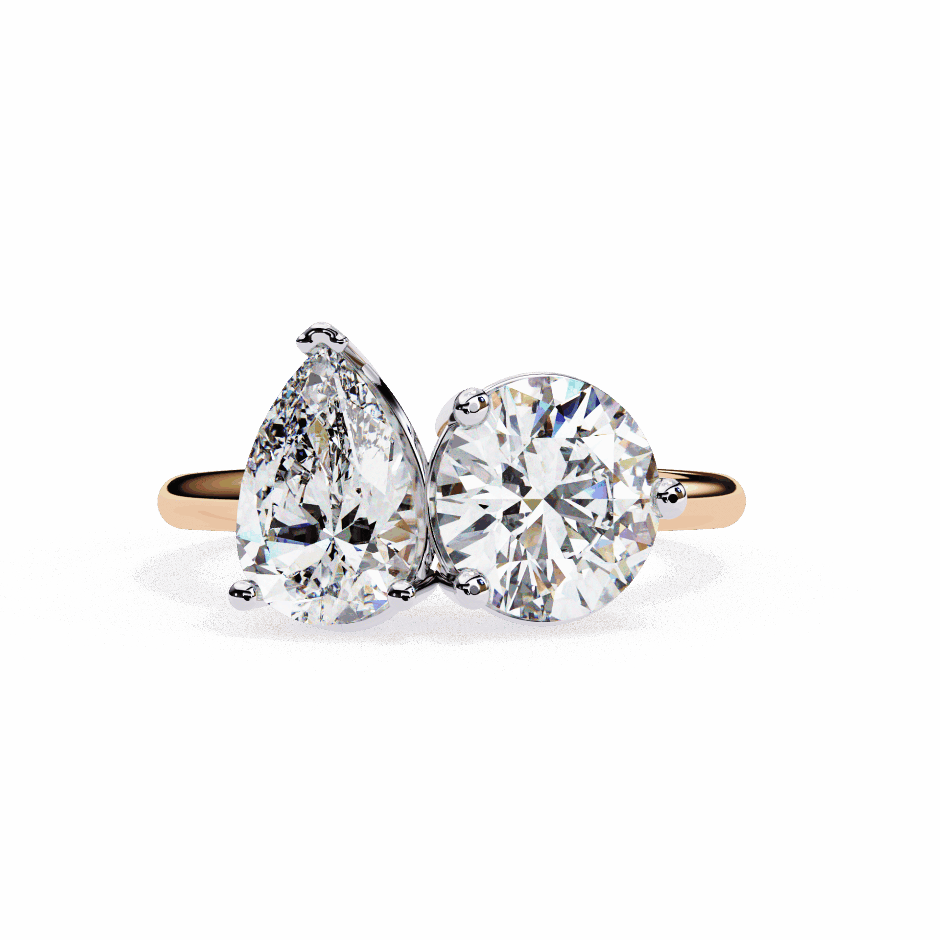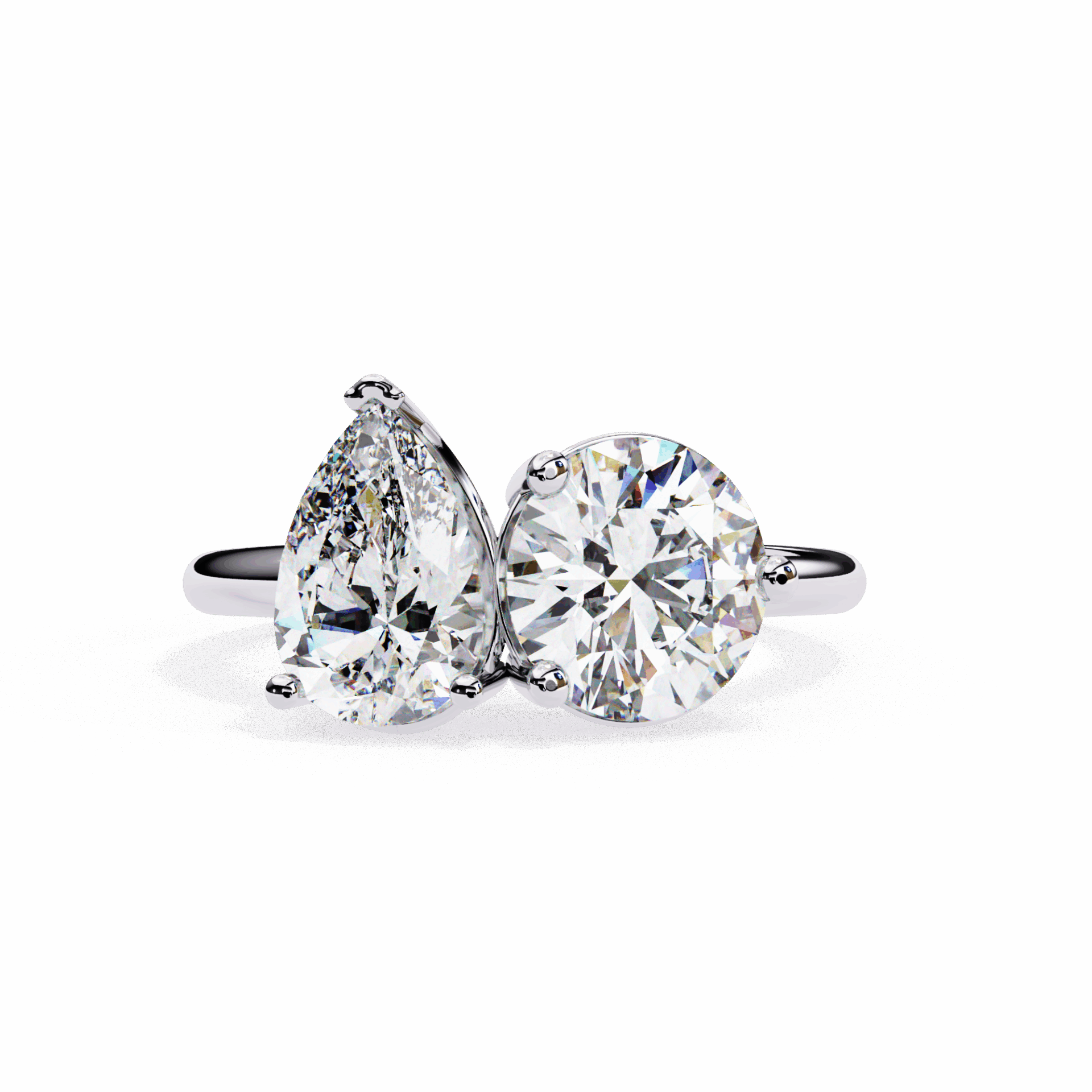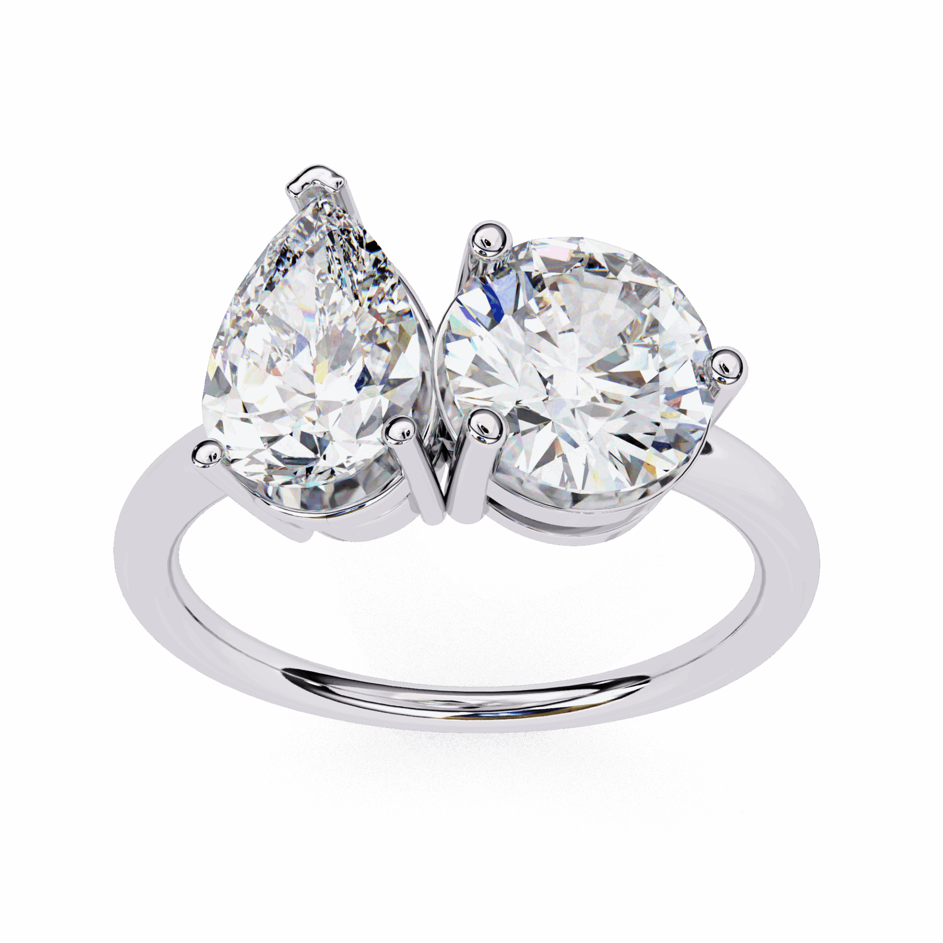Two stones – pear and round – in the romantic Toi et Moi setting. Direction meets brilliance.