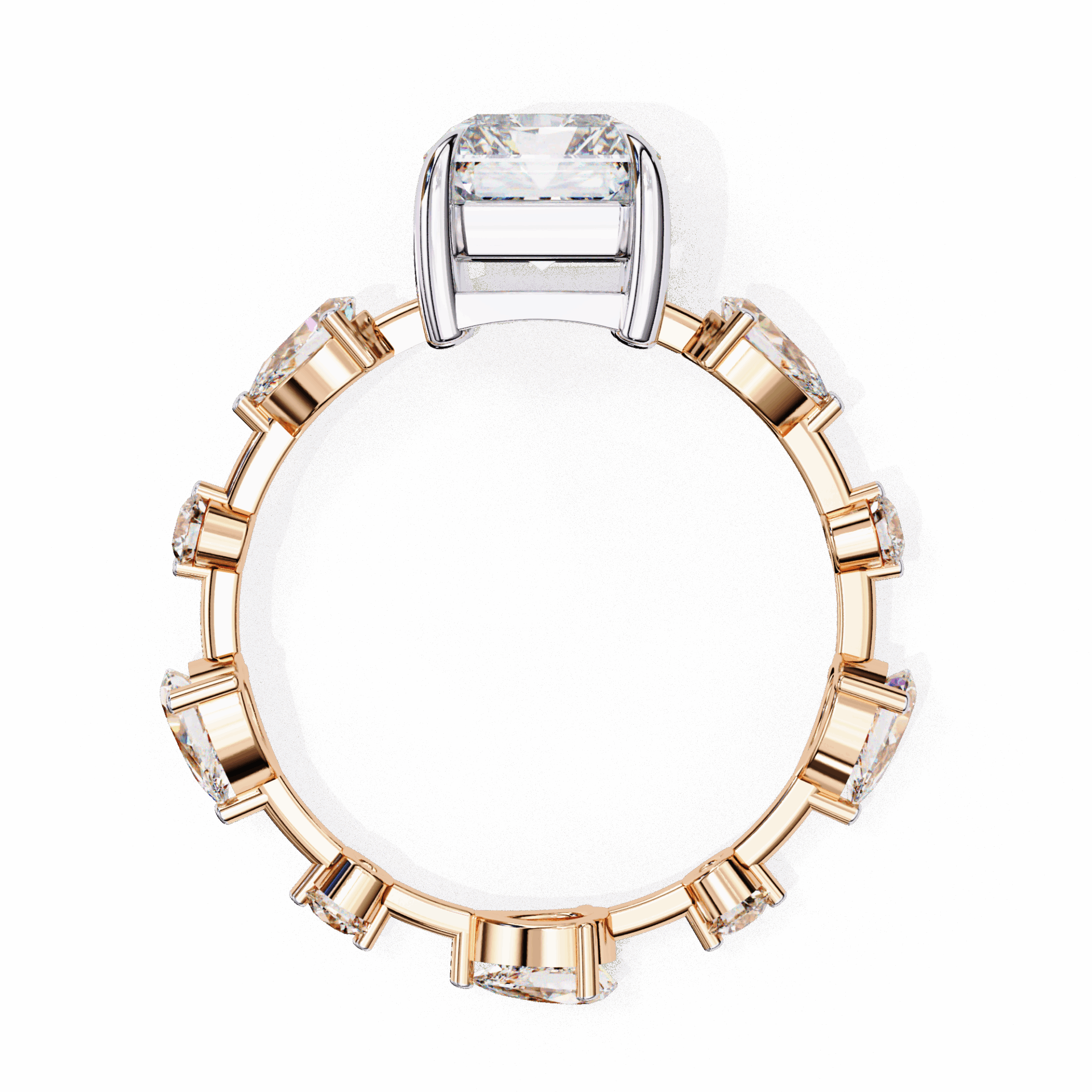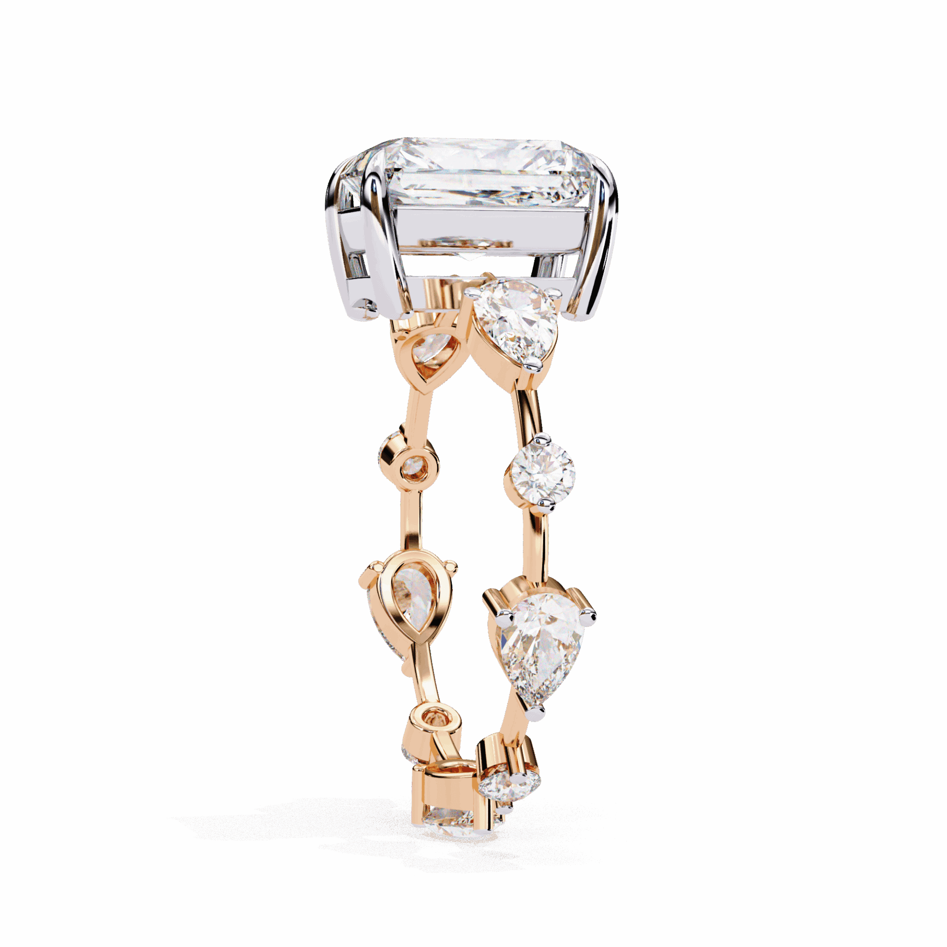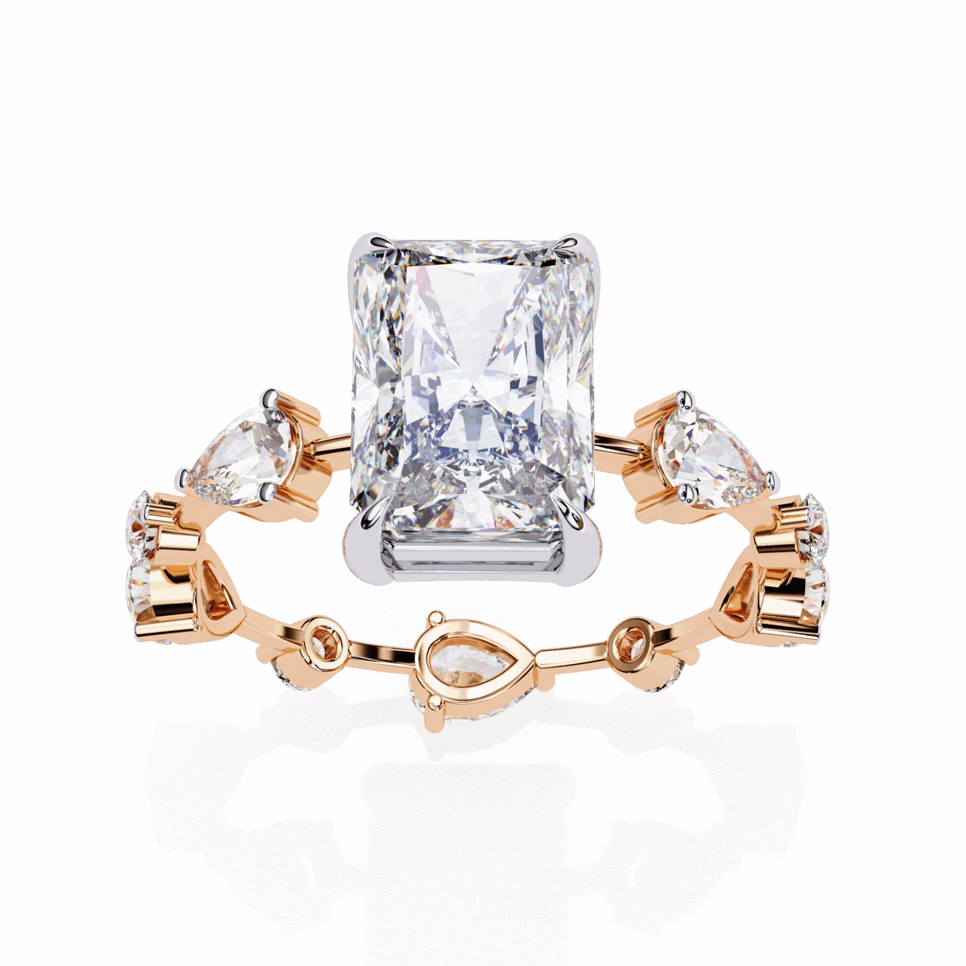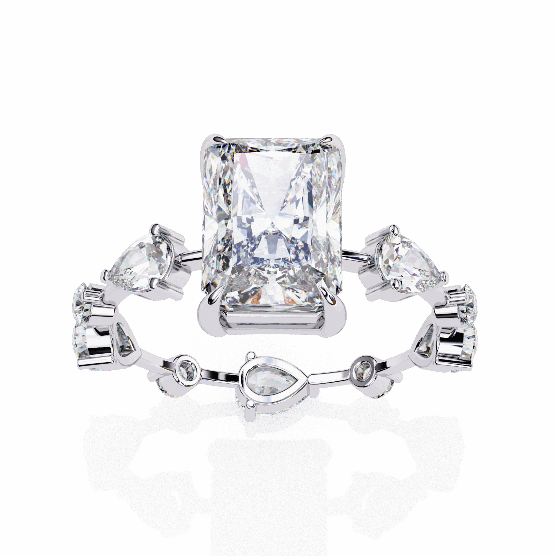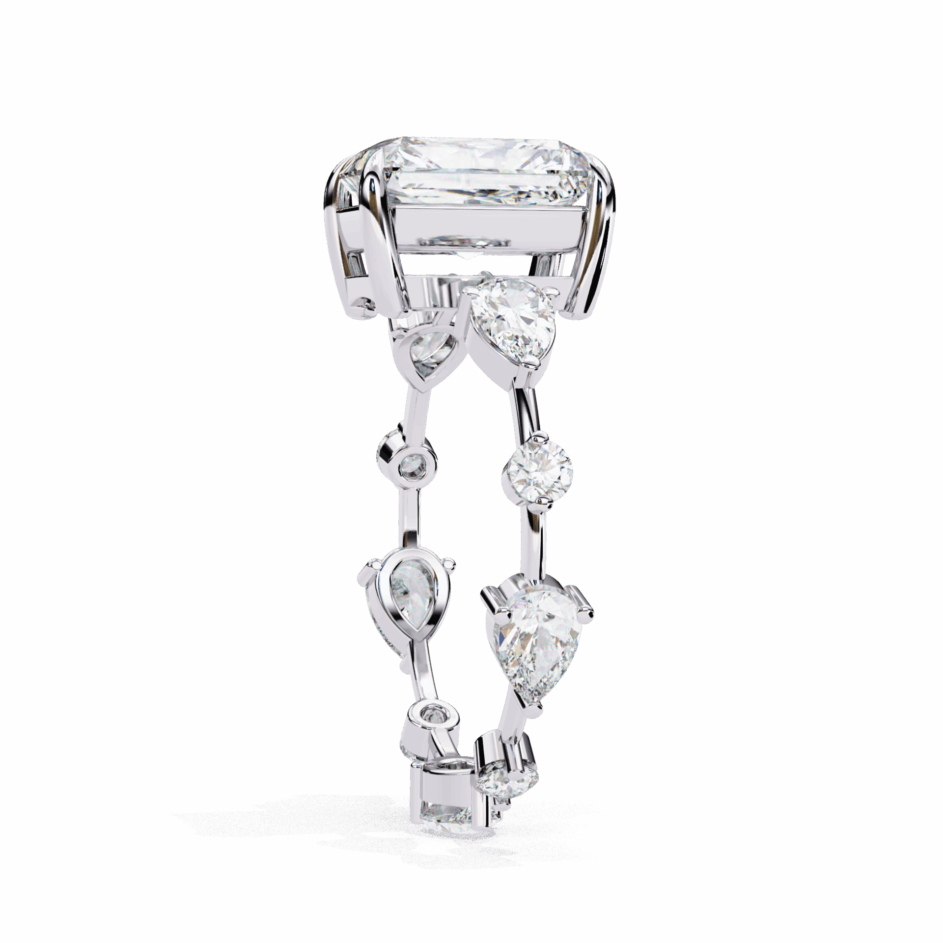 A radiant-cut lab-grown diamond with 10 accent diamonds totaling 3.72 carats. Nearly 4 carats of geometric fire for everyday statement.