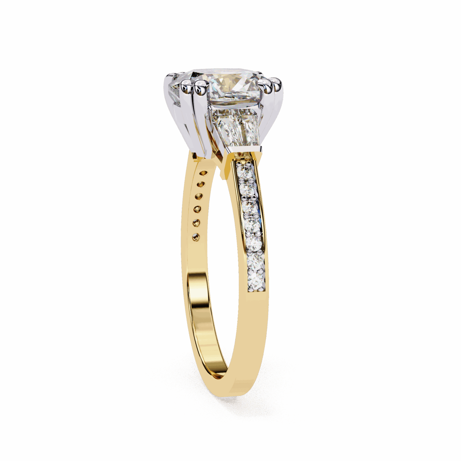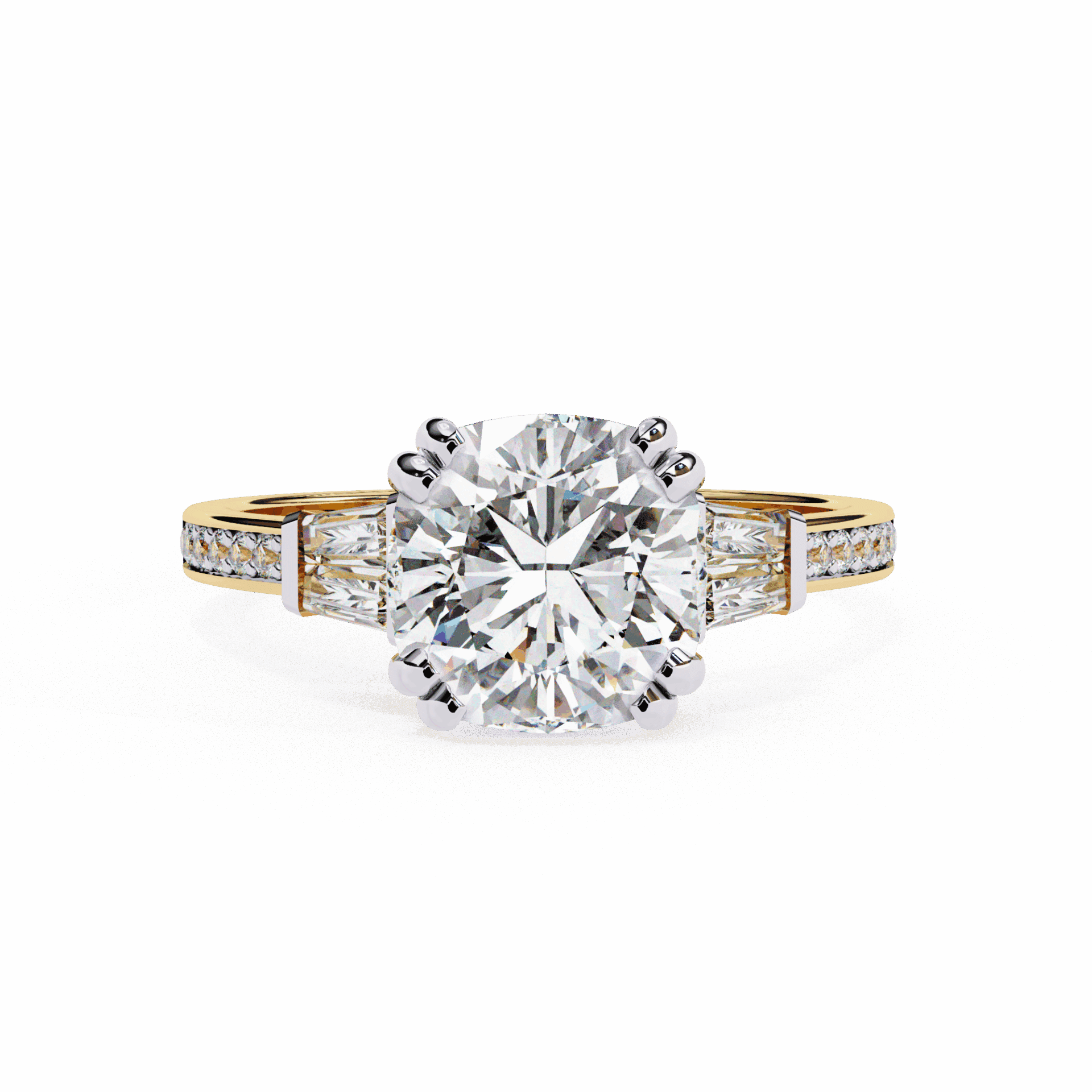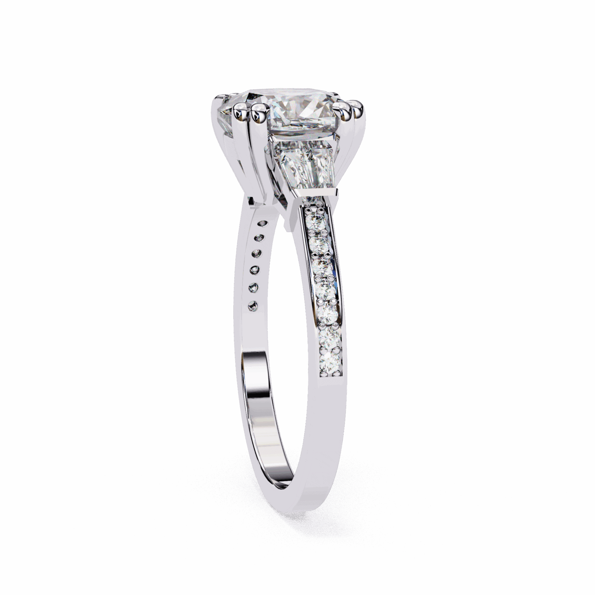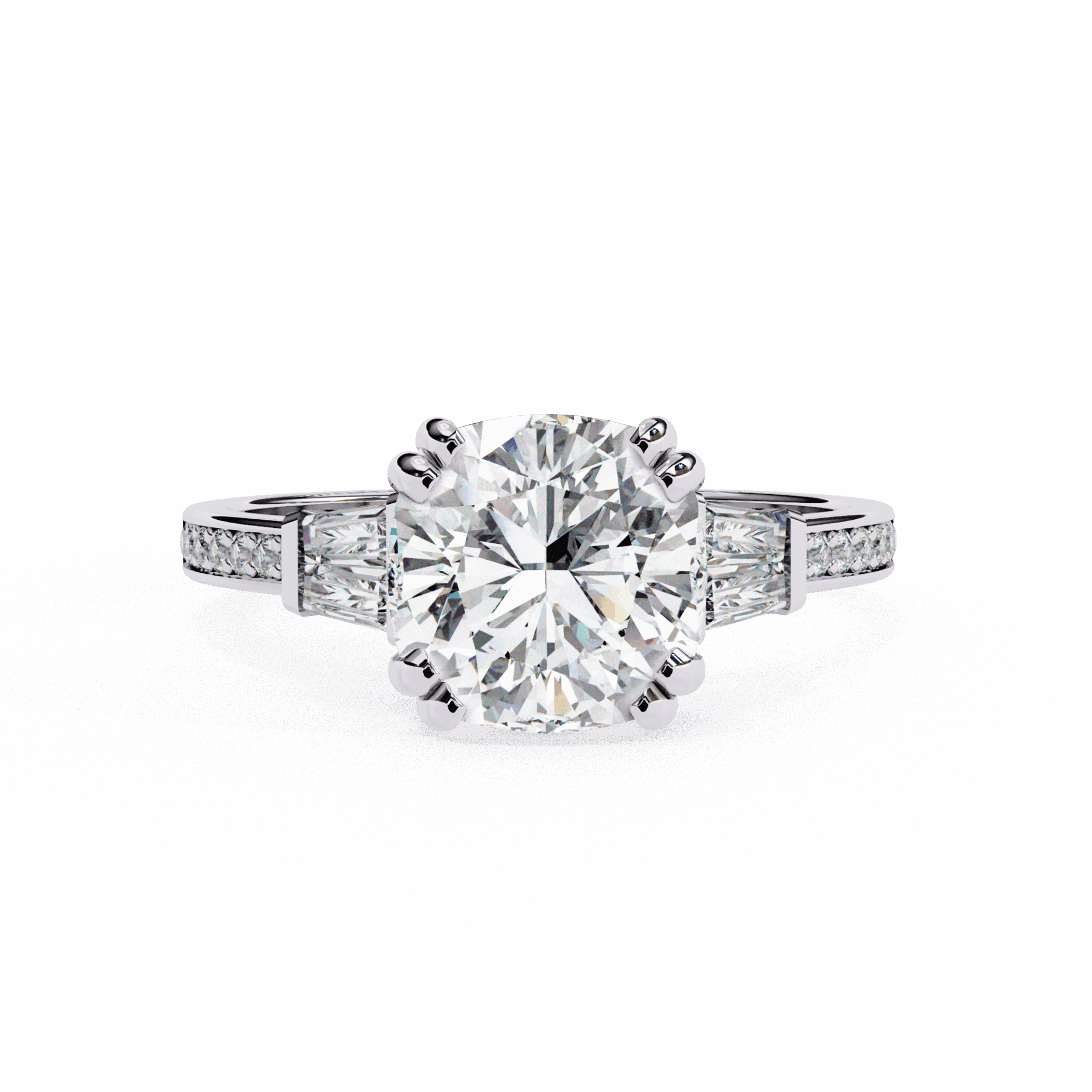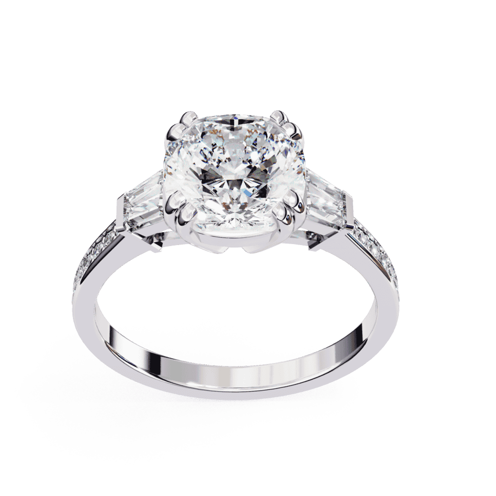 3.75 Carat Cushion and Baguette Cut Solitaire Edit Ring