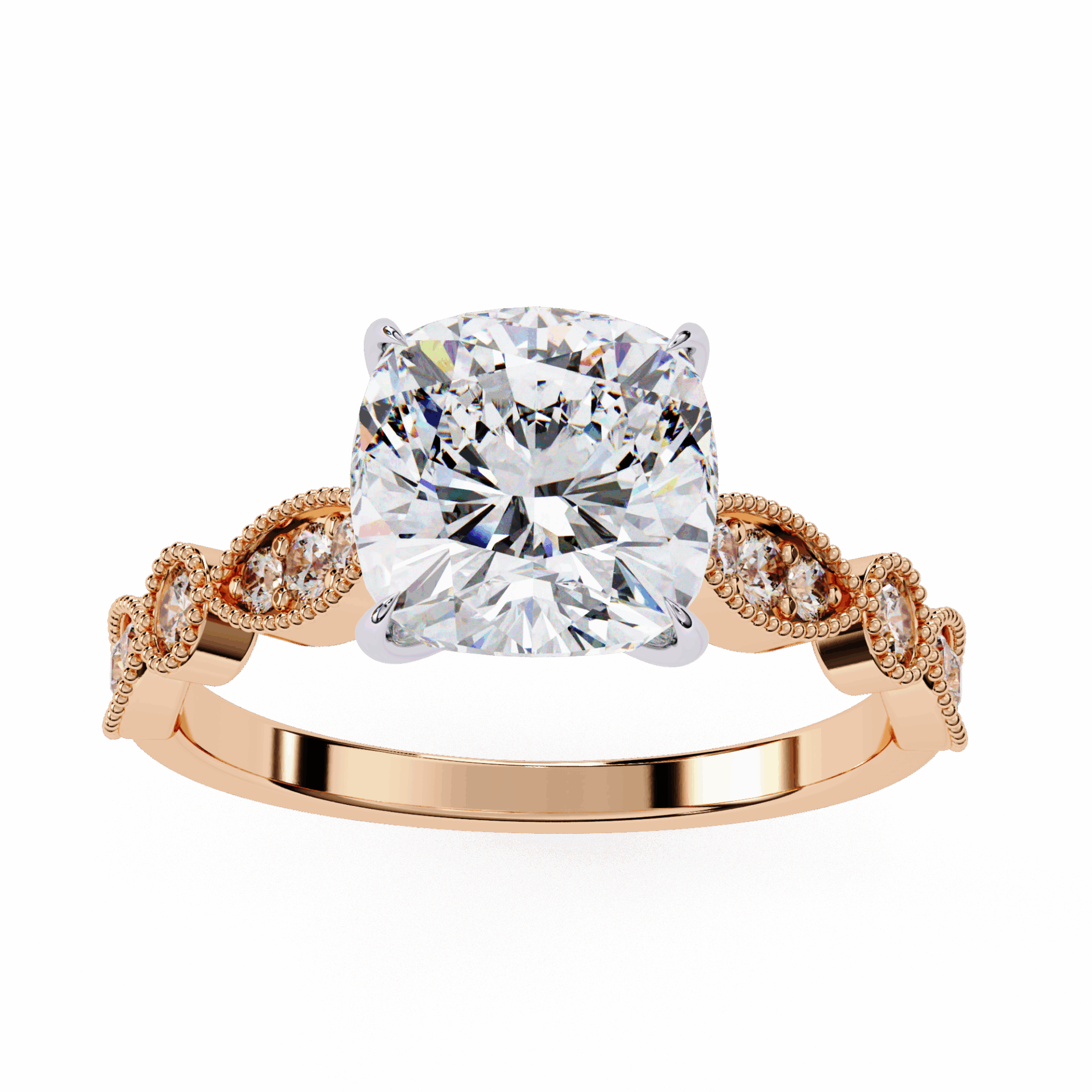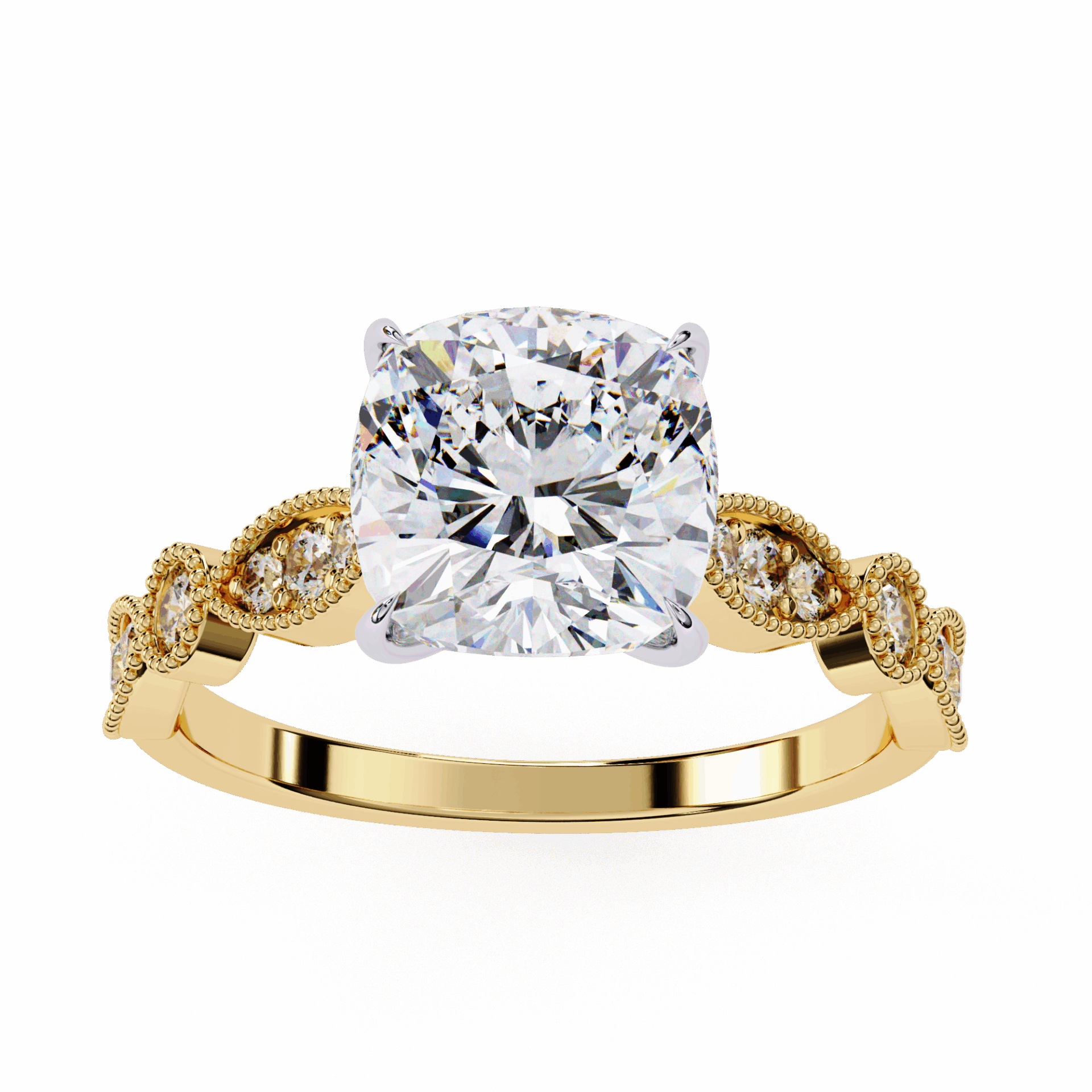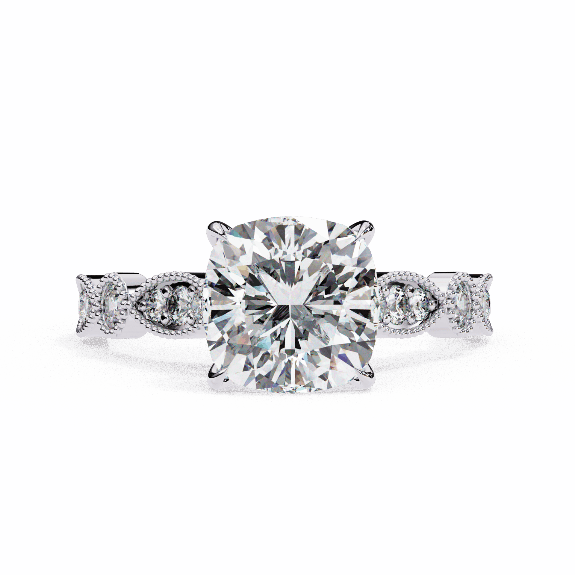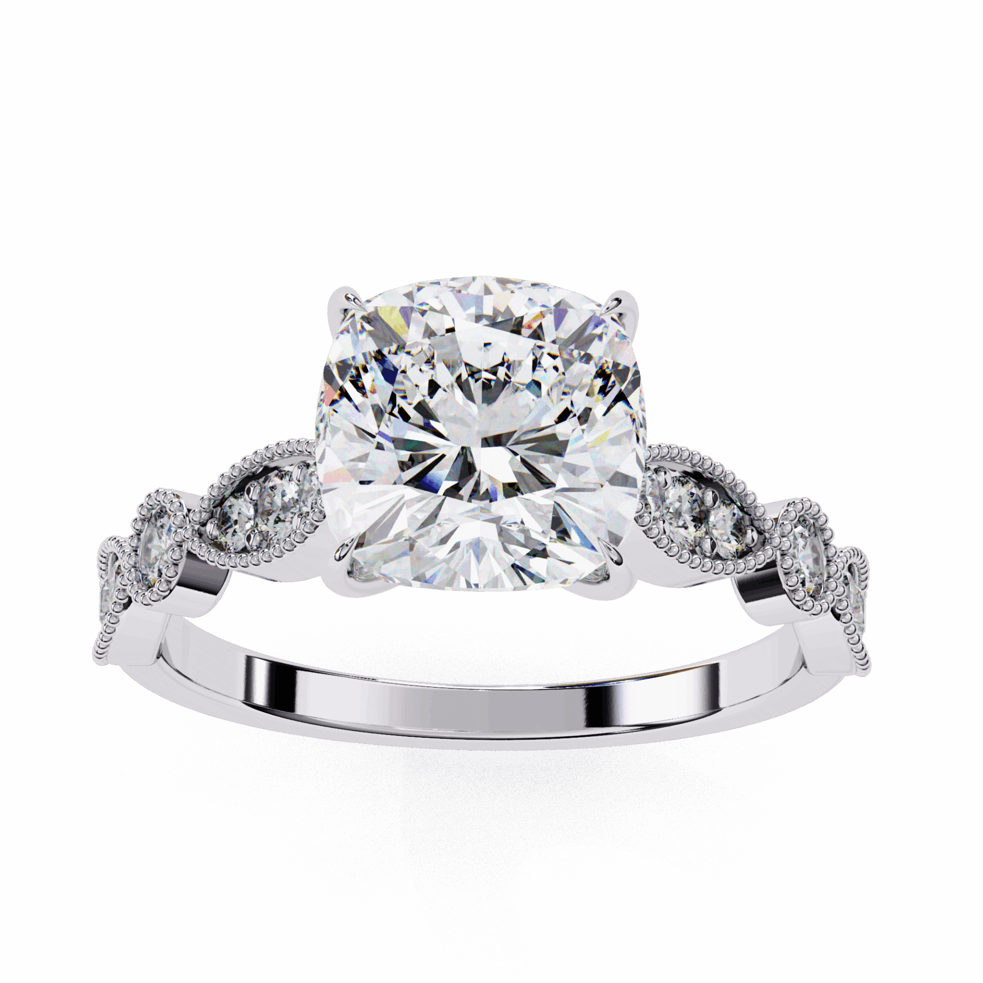 A cushion-cut lab-grown diamond with 15 accent diamonds totaling 2.89 carats. The One for cushion-cut lovers.