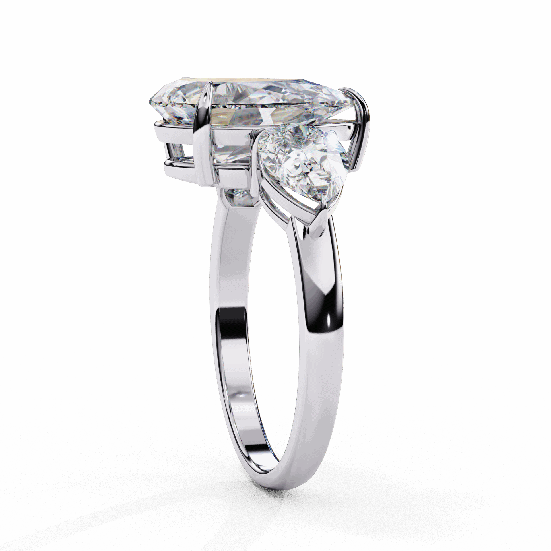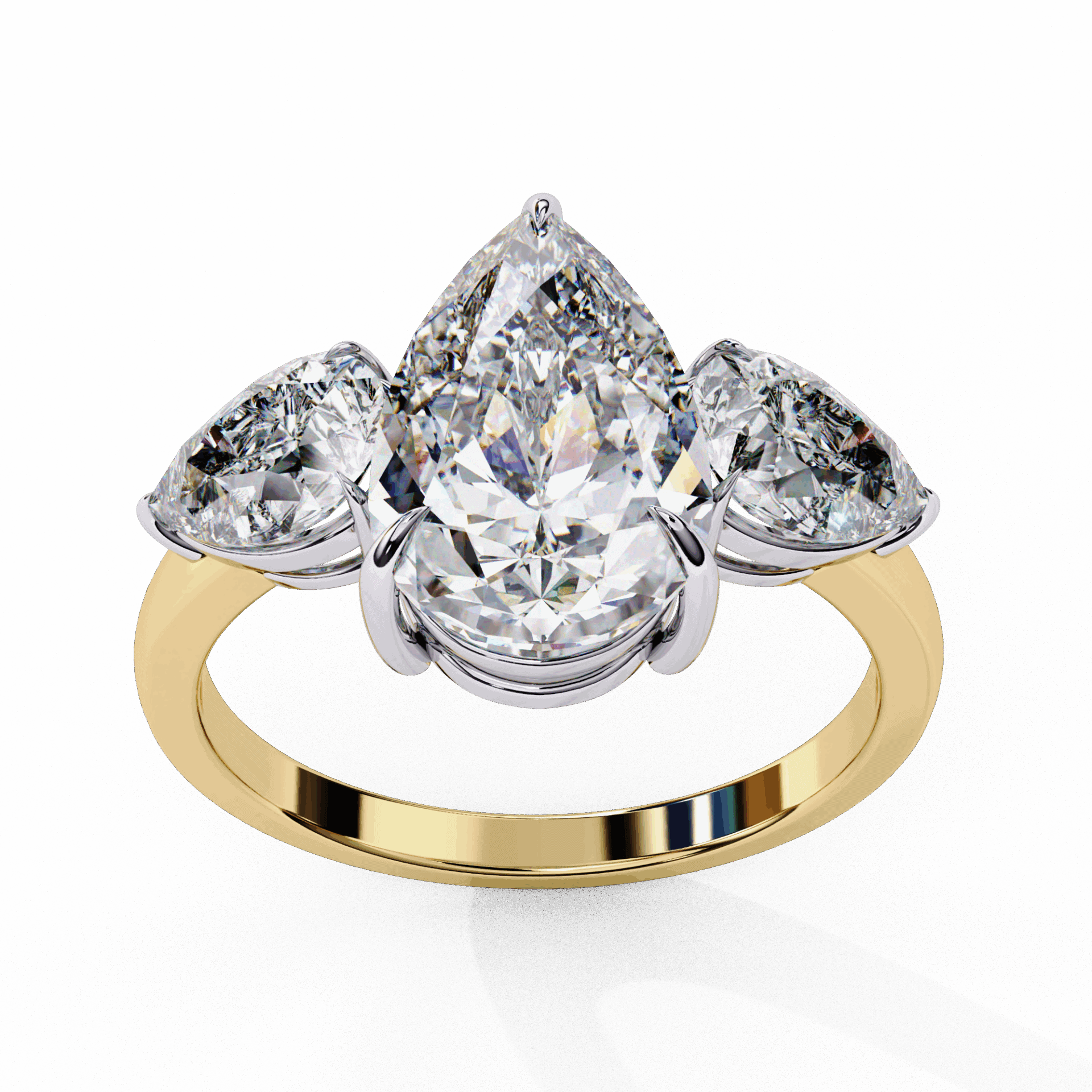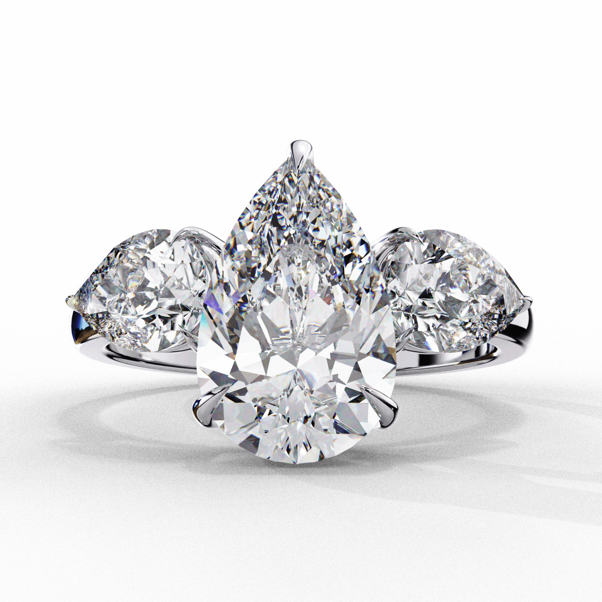 Three stones. Pear center. Maximum drama.
