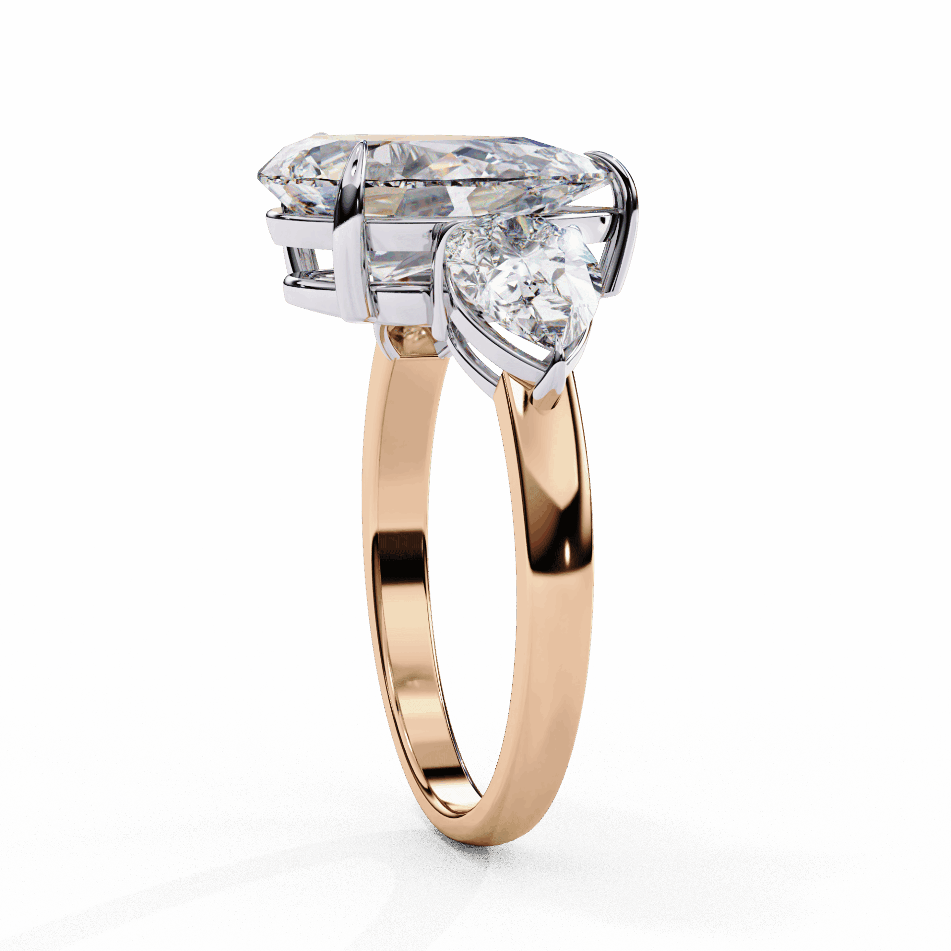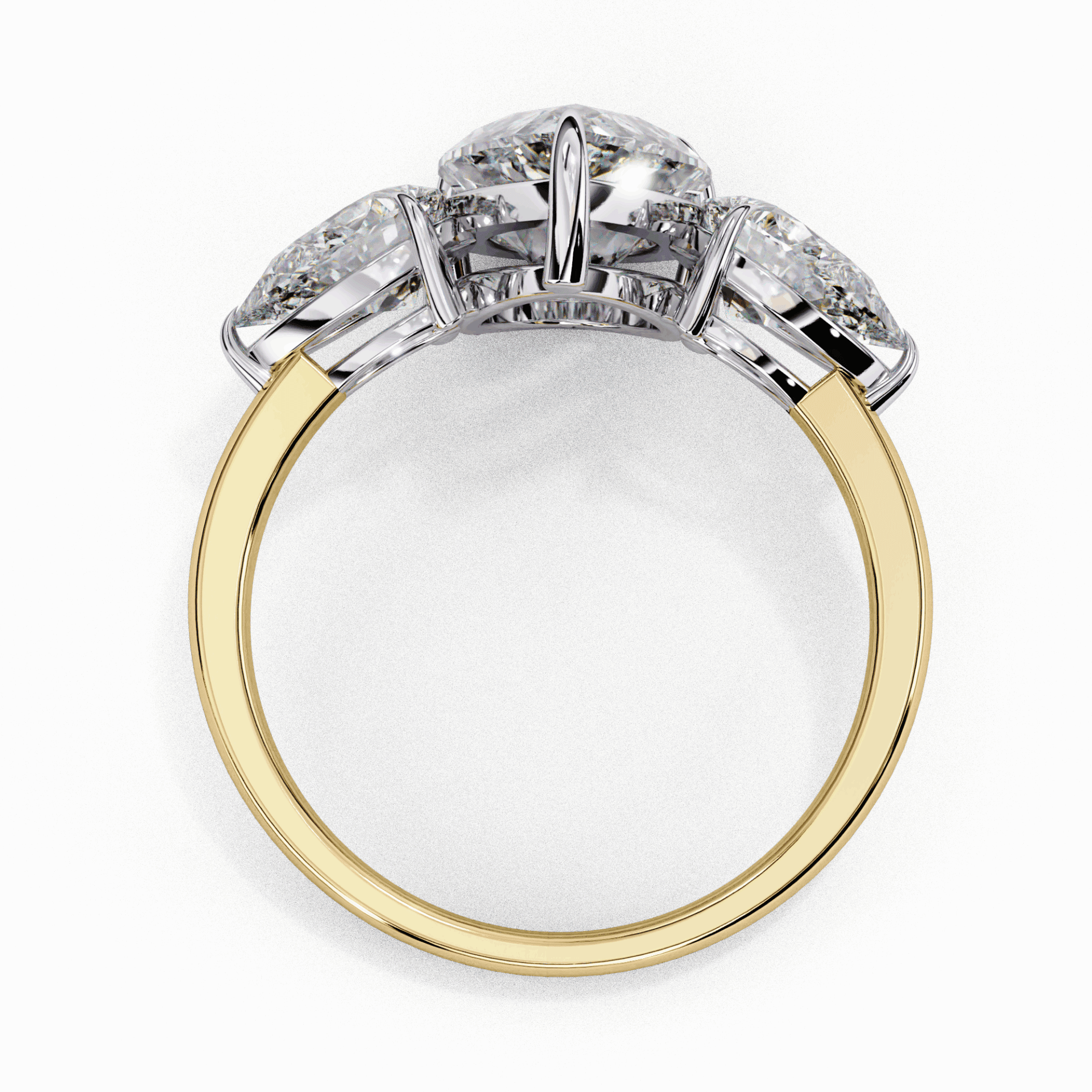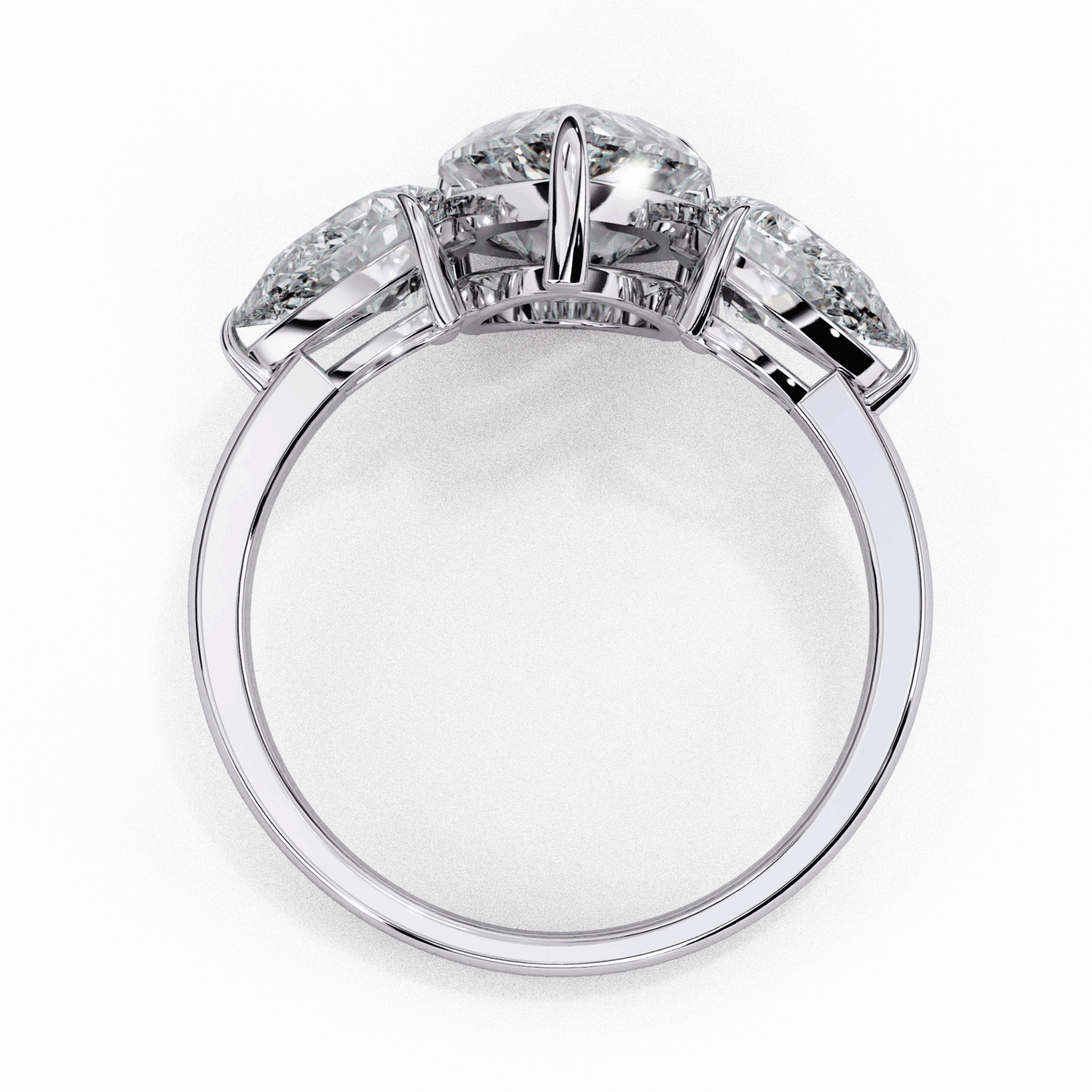 Three stones. Pear center. Maximum drama.