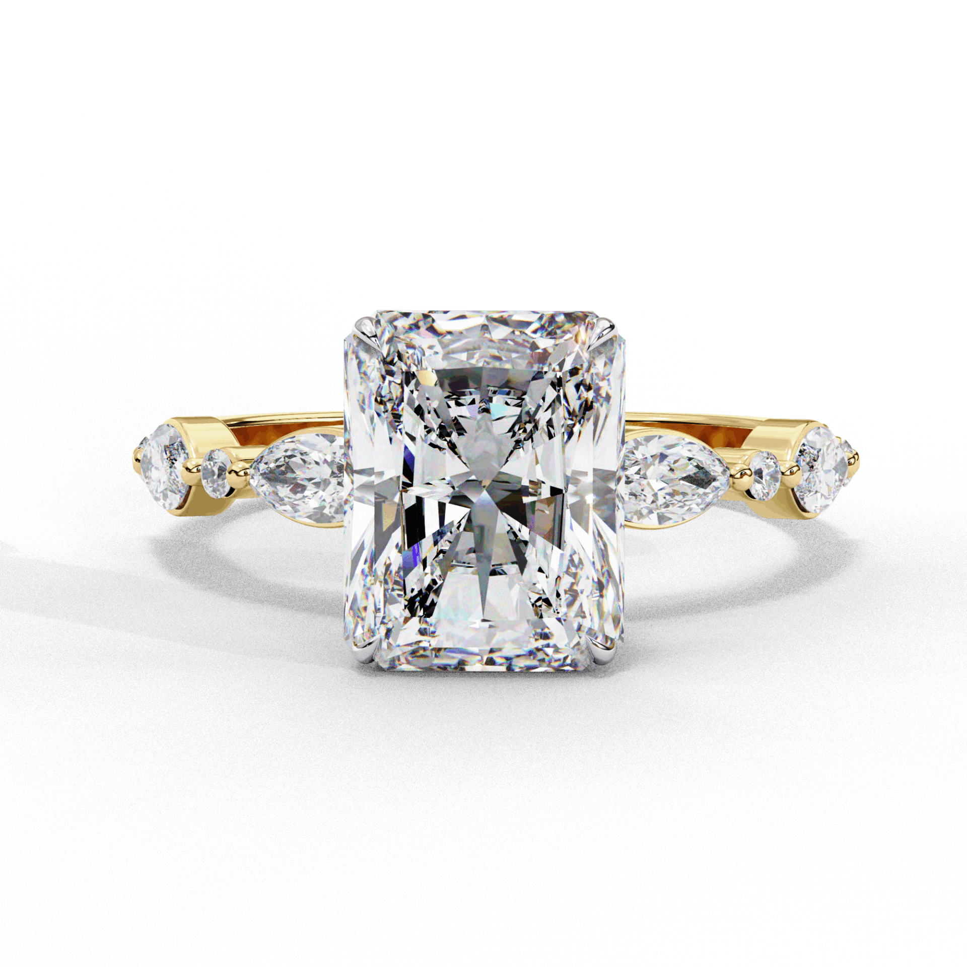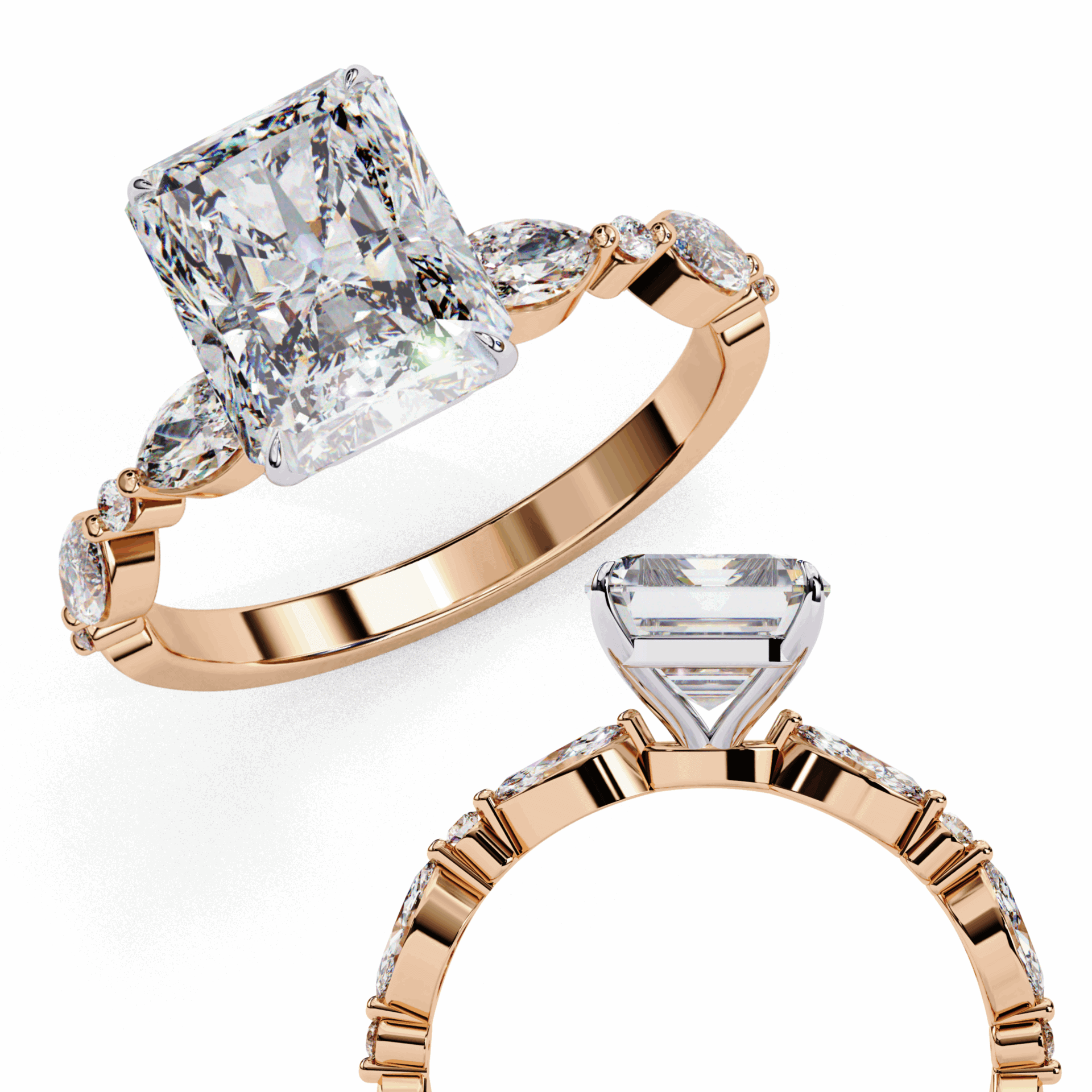 This design can be customized - different radiant size or accent stones. Book a free consultation to discuss.