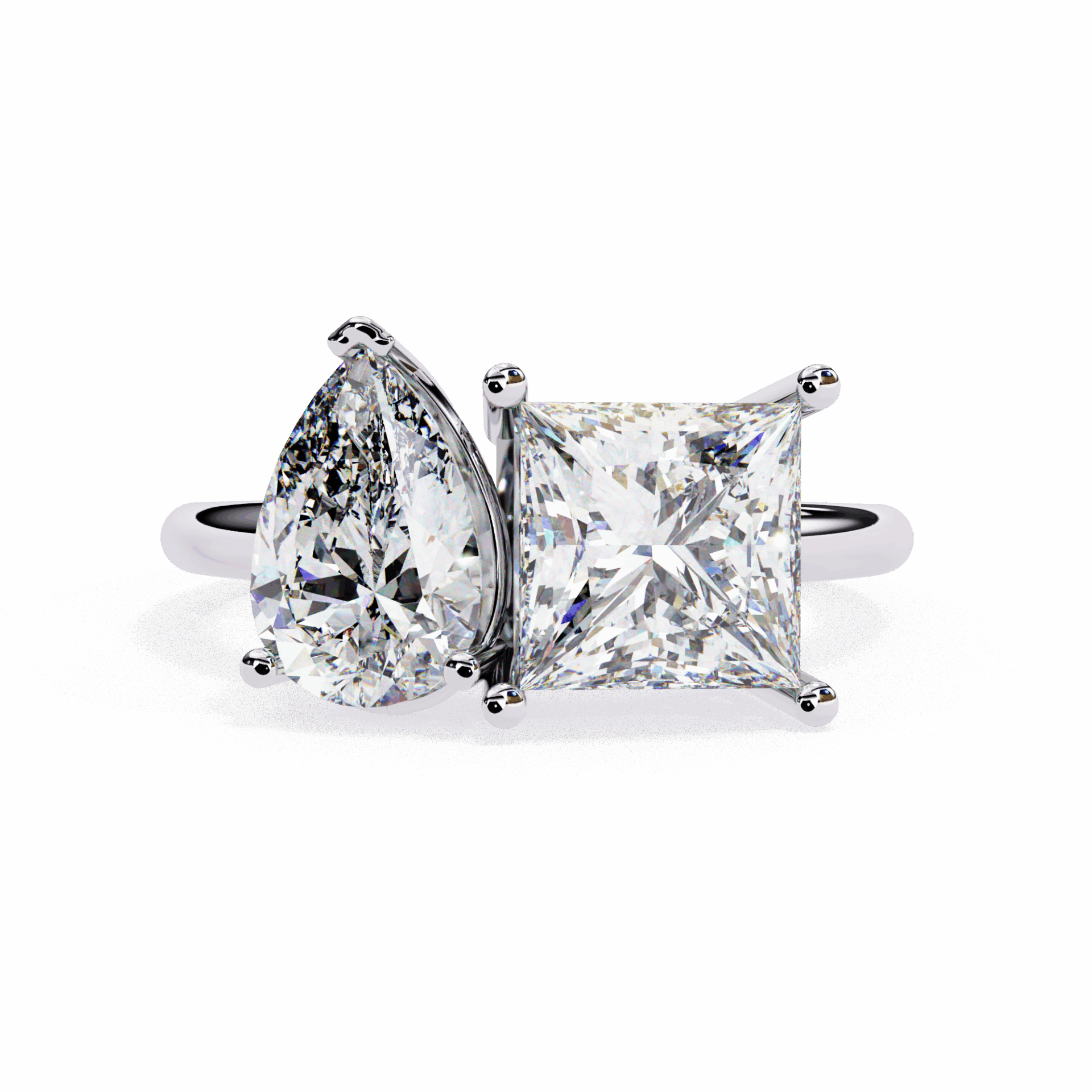 Two stones – pear and princess – in the romantic Toi et Moi setting. Drama meets geometry.