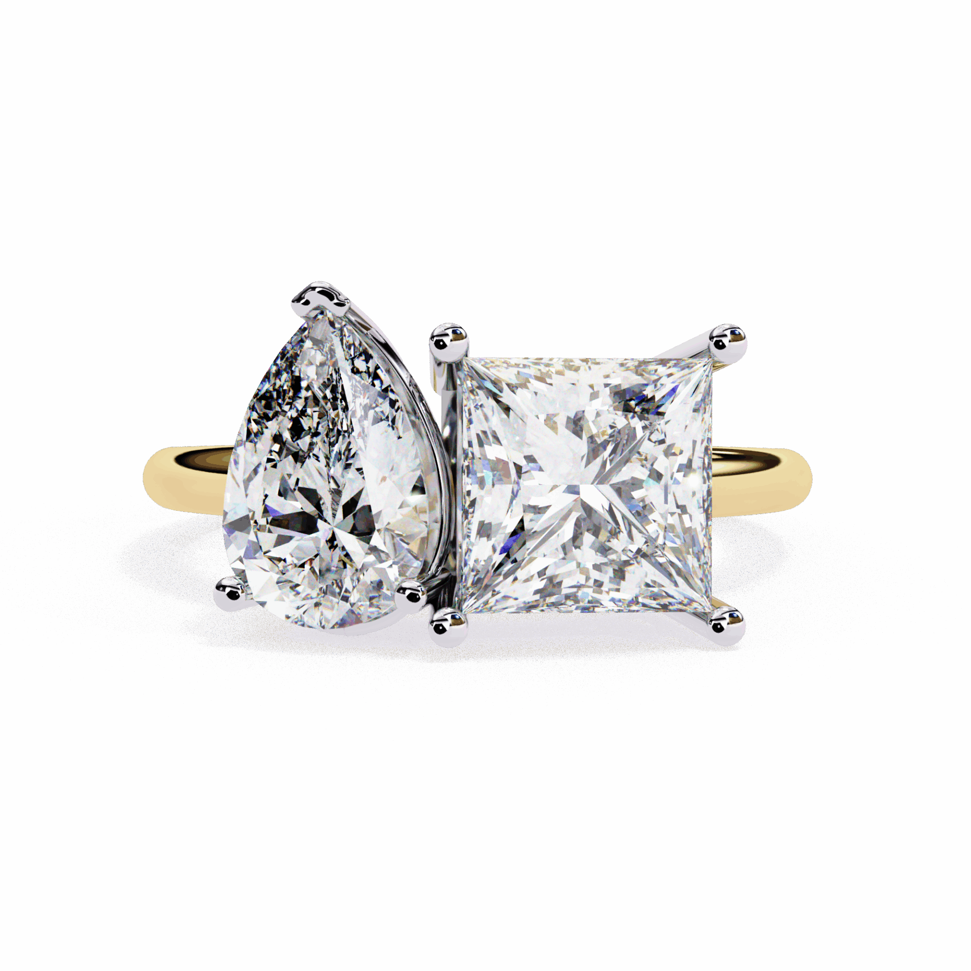 A pear and princess-cut lab-grown diamond totaling 4.3 carats in the romantic Toi et Moi setting. Teardrop drama meets angular precision.