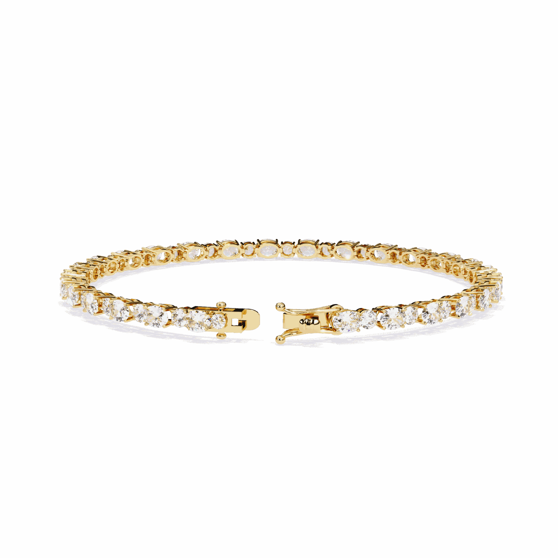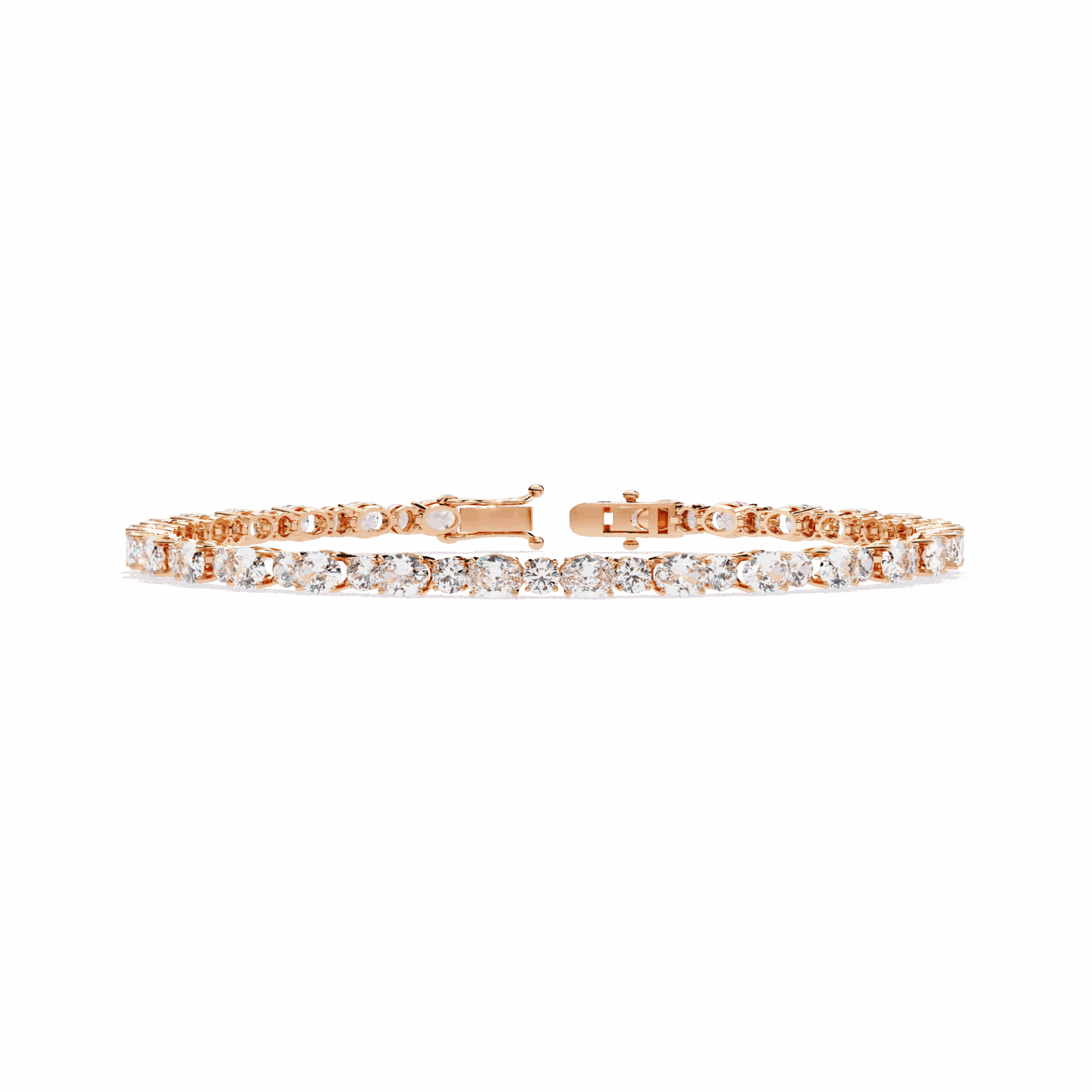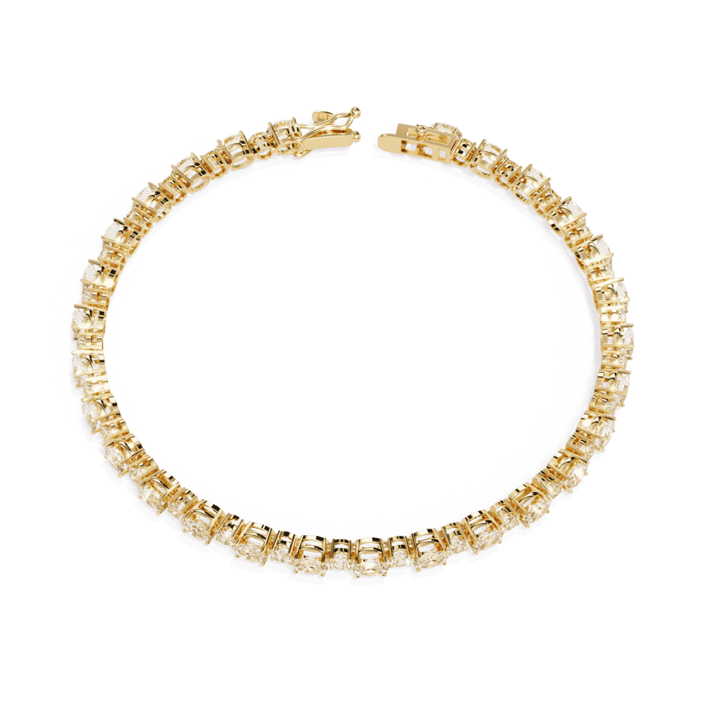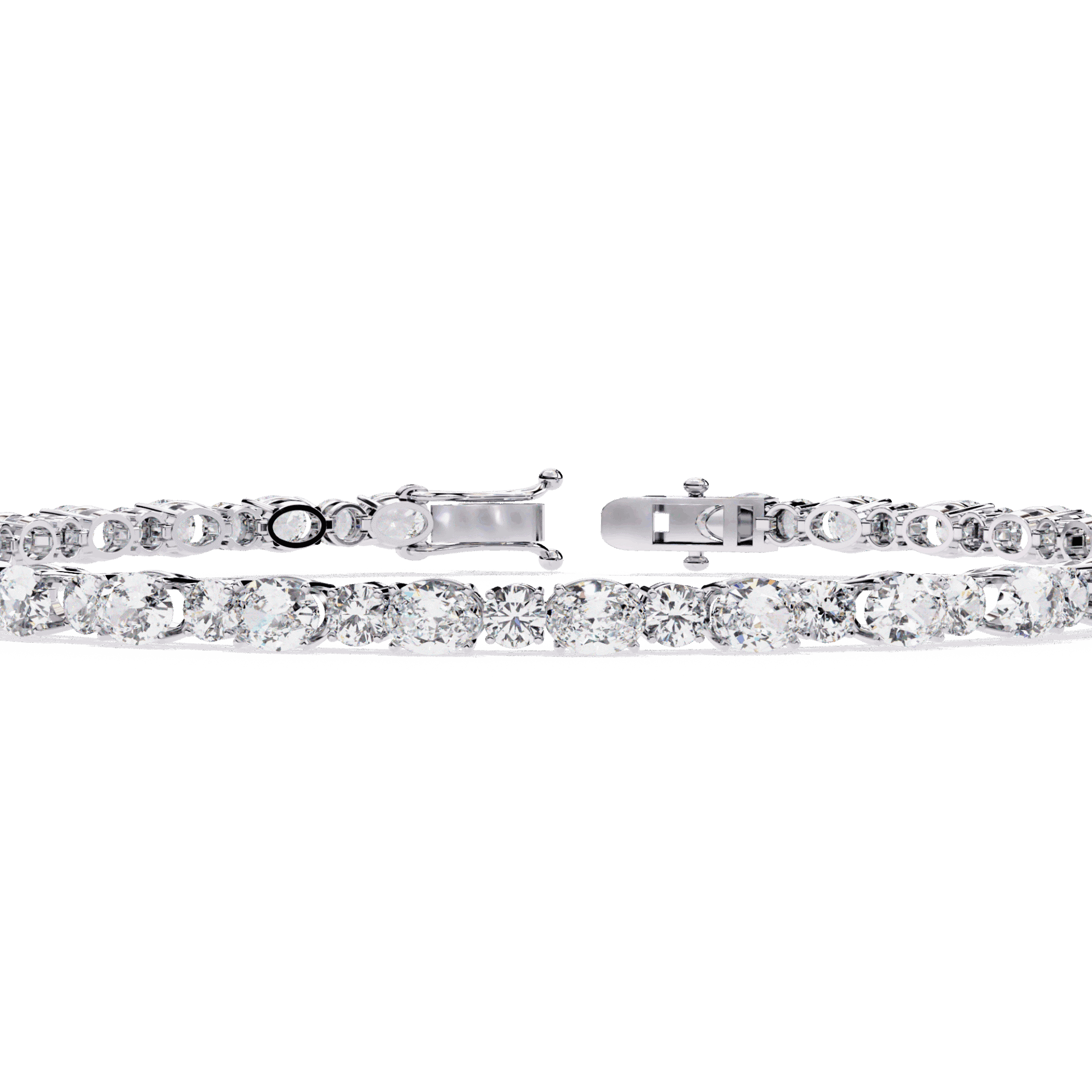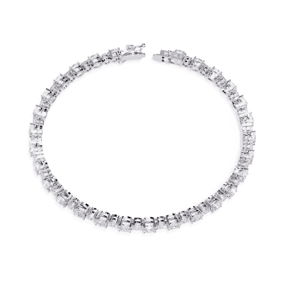 56 lab-grown diamonds - oval cuts and round cuts alternating - creating a tennis bracelet with built-in rhythm. The ovals bring elegance, the rounds bring brilliance. Neither dominates. Both shine.