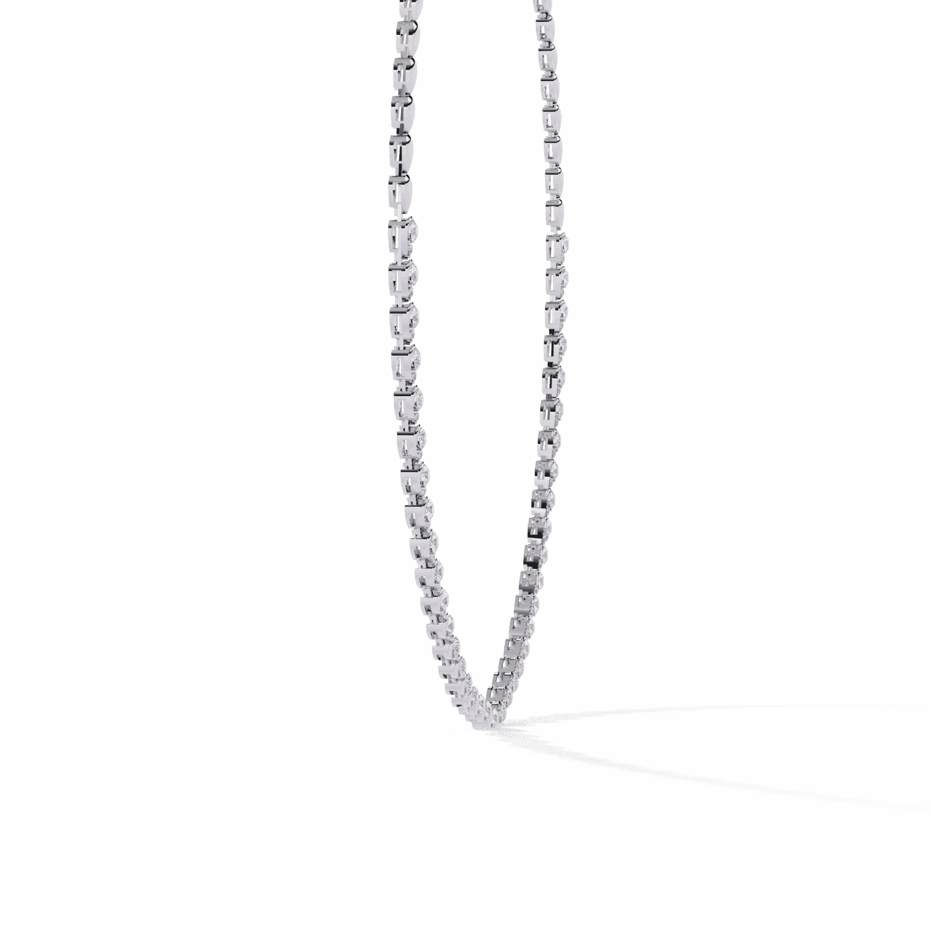 76 round lab-grown diamonds in a sophisticated collar design – named for the fashion capital because this necklace has that energy. Bold, refined, effortlessly stylish.